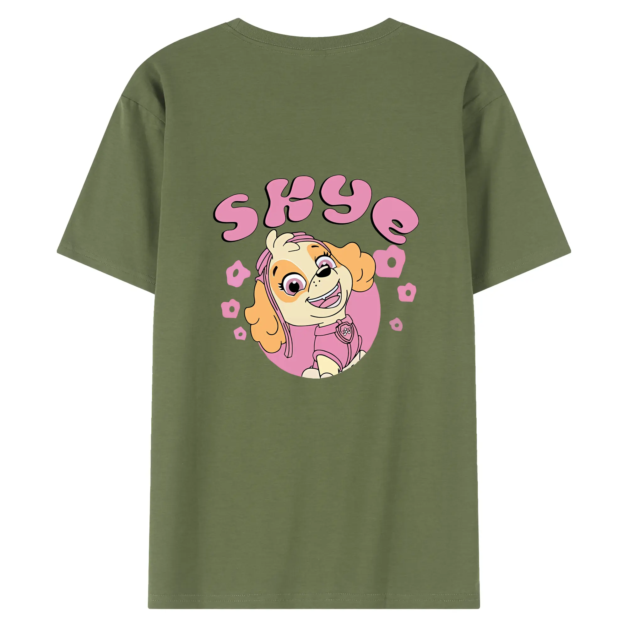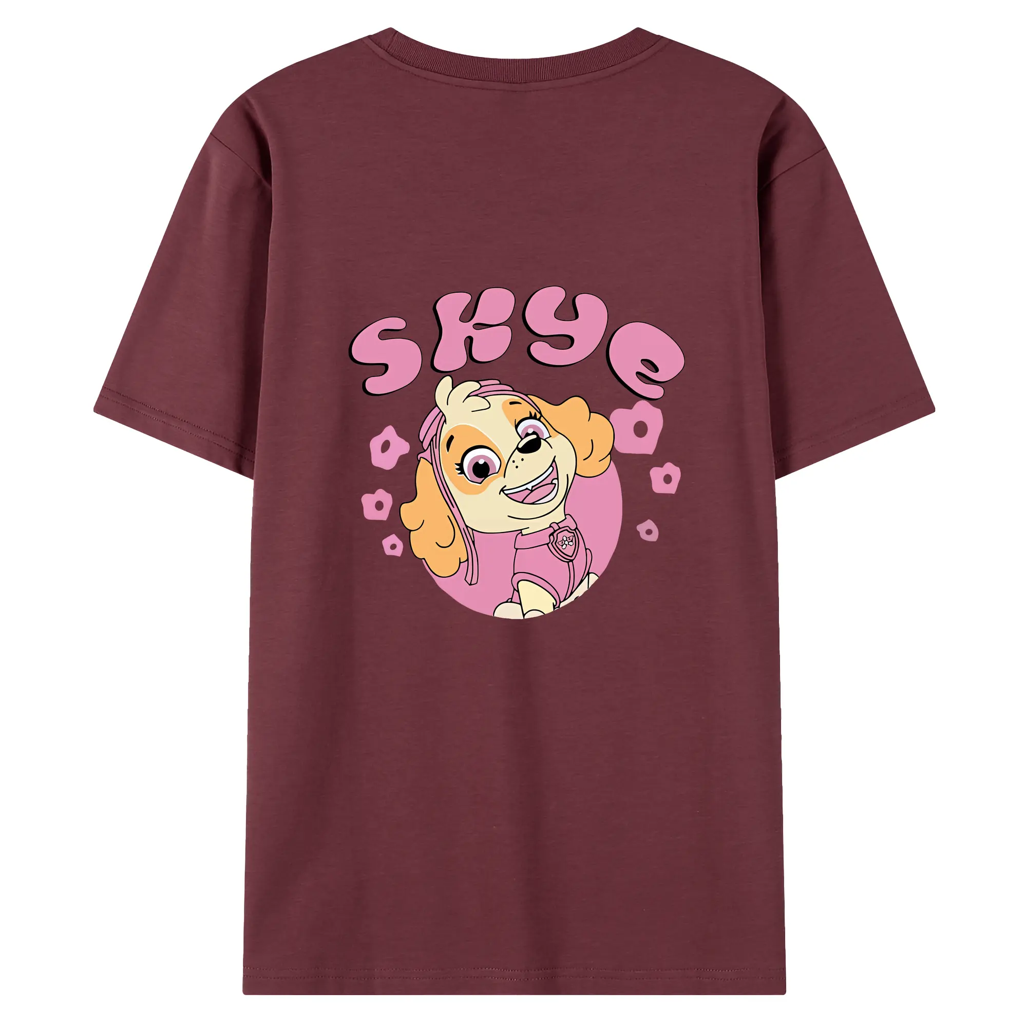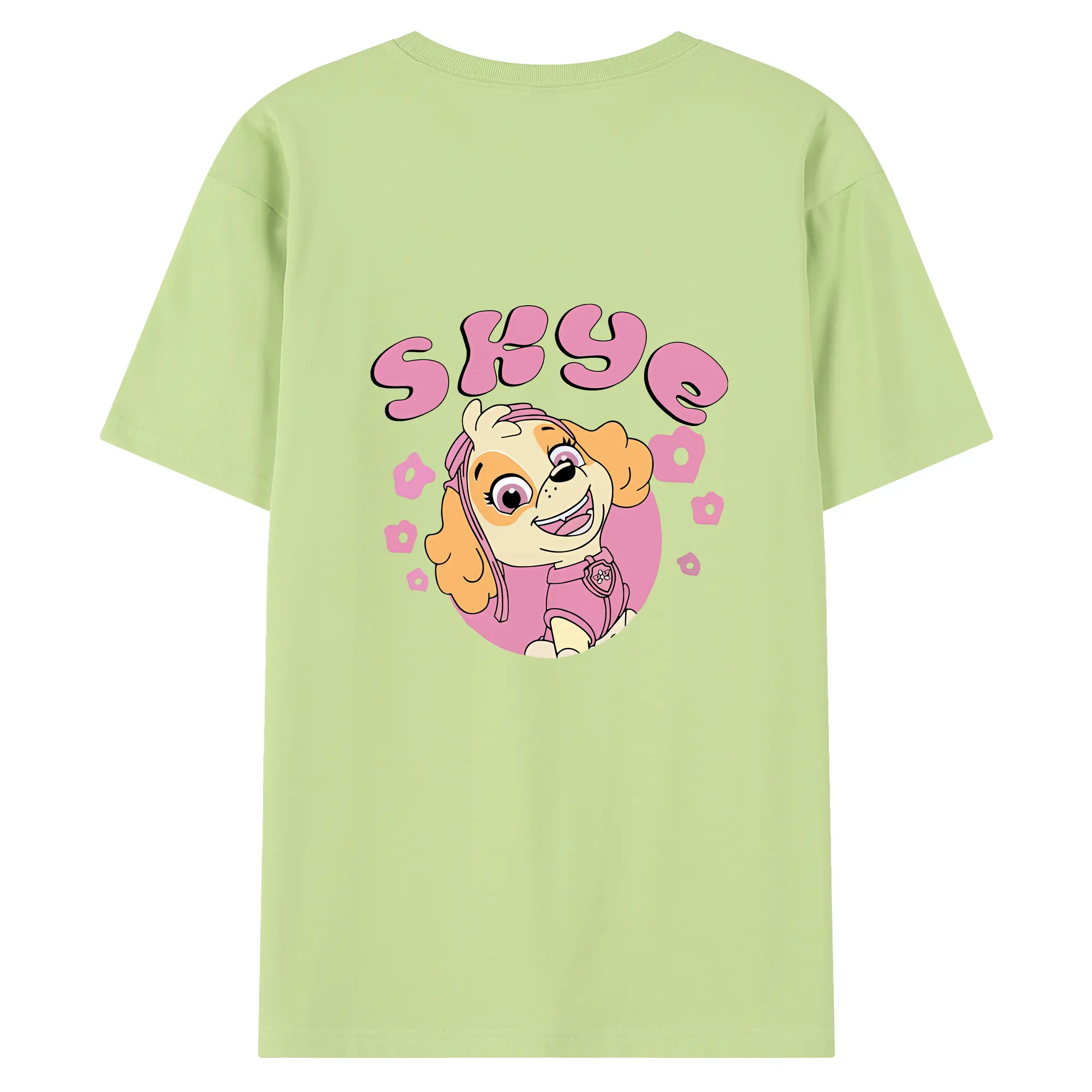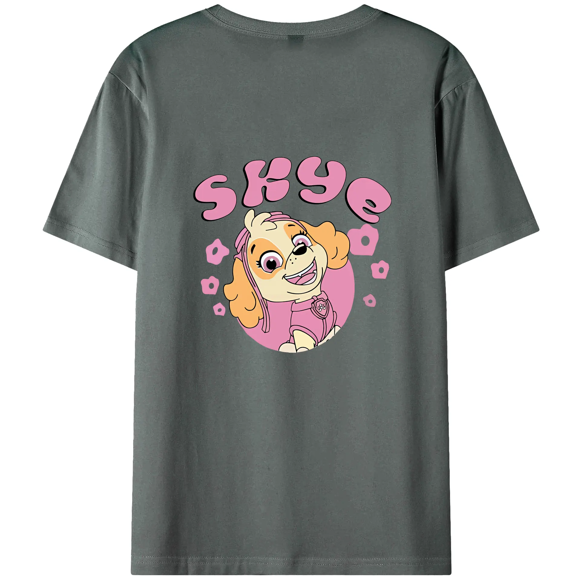パウ・パトロール グッズ,スカイ - 綿100% ヴィンテージ風 半袖Tシャツ ・ 背面プリント ・ 柔らか肌触り ・ 通気性 快適 ・ スポーツ カジュアル 外出用