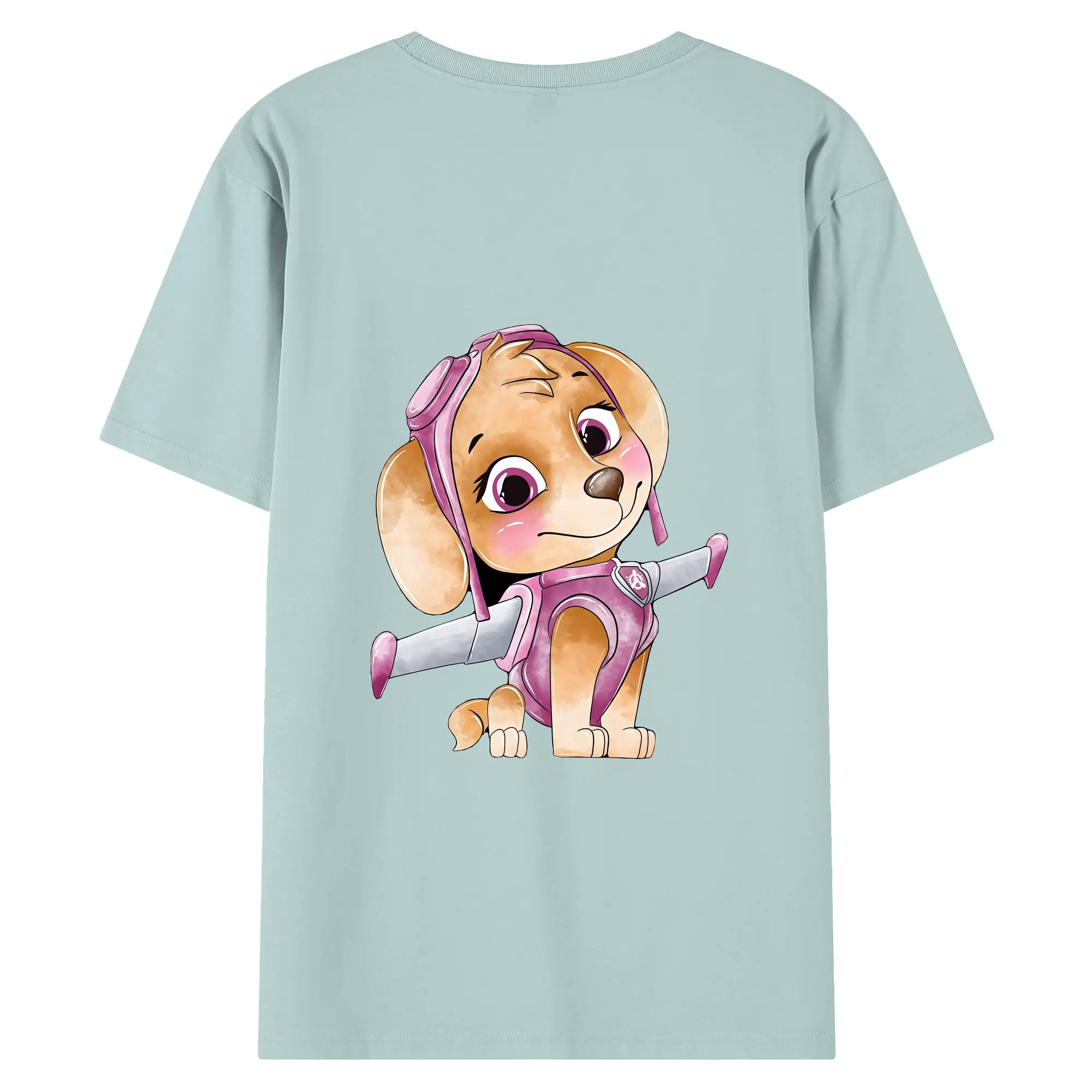 パウ・パトロール グッズ,スカイ - 綿100% ヴィンテージ風 半袖Tシャツ ・ 背面プリント ・ 柔らか肌触り ・ 通気性 快適 ・ スポーツ カジュアル 外出用