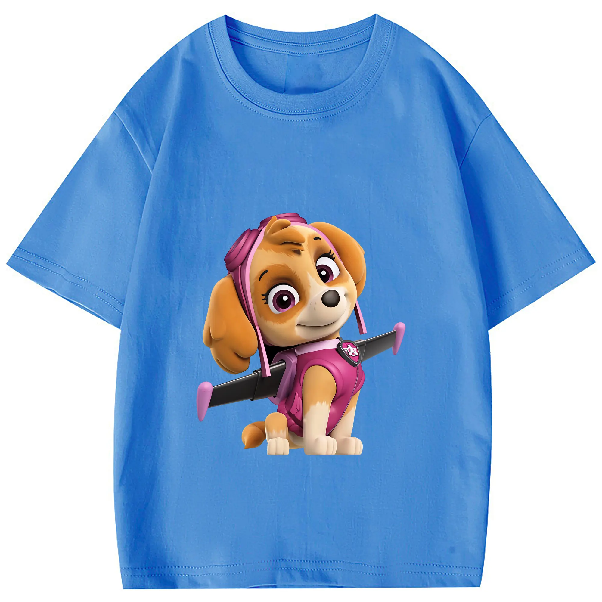 パウ・パトロール グッズ,スカイ - 綿100% 半袖Tシャツ ・ フロントプリント ・ 快適 通気性 ・ 日常使い 散歩 スポーツ用