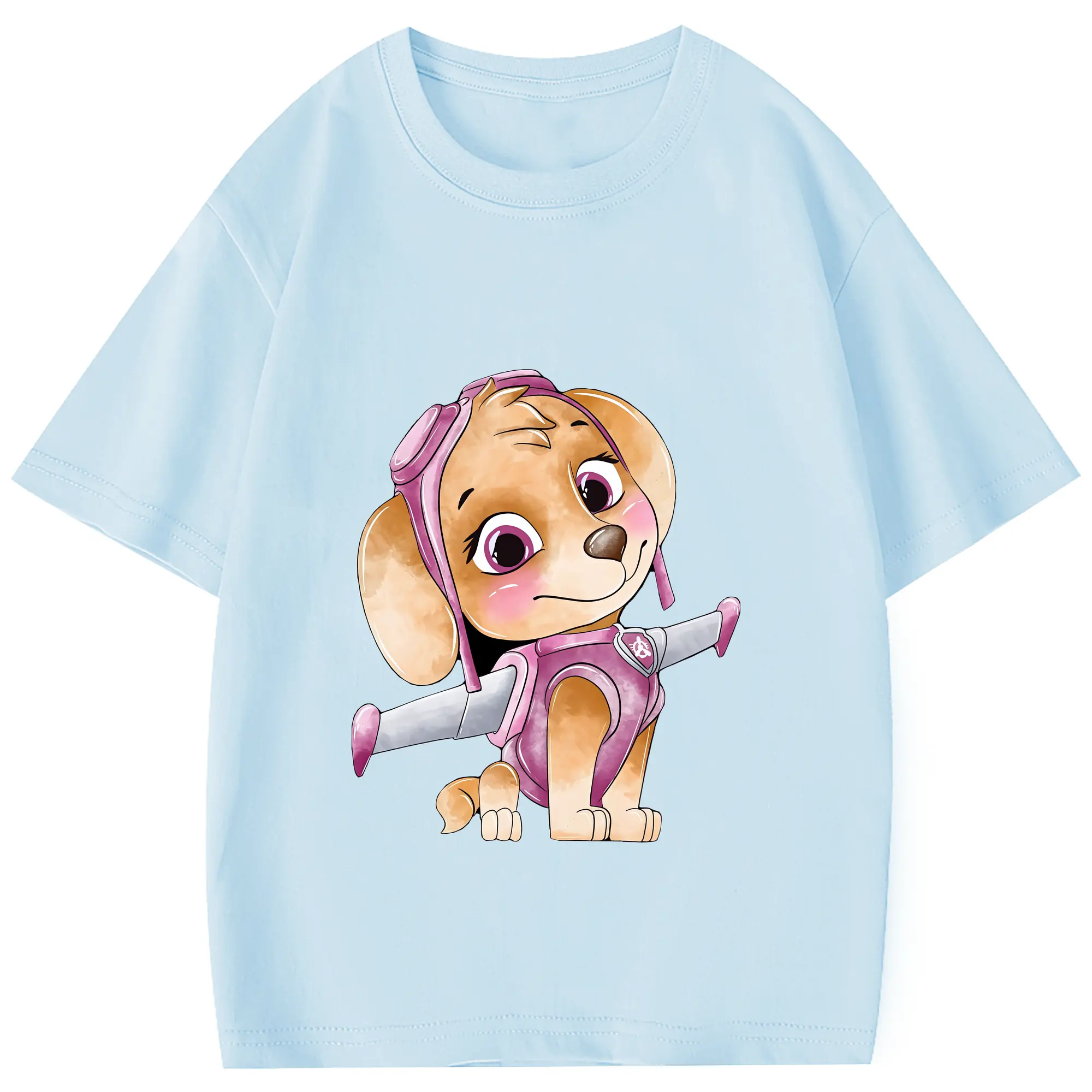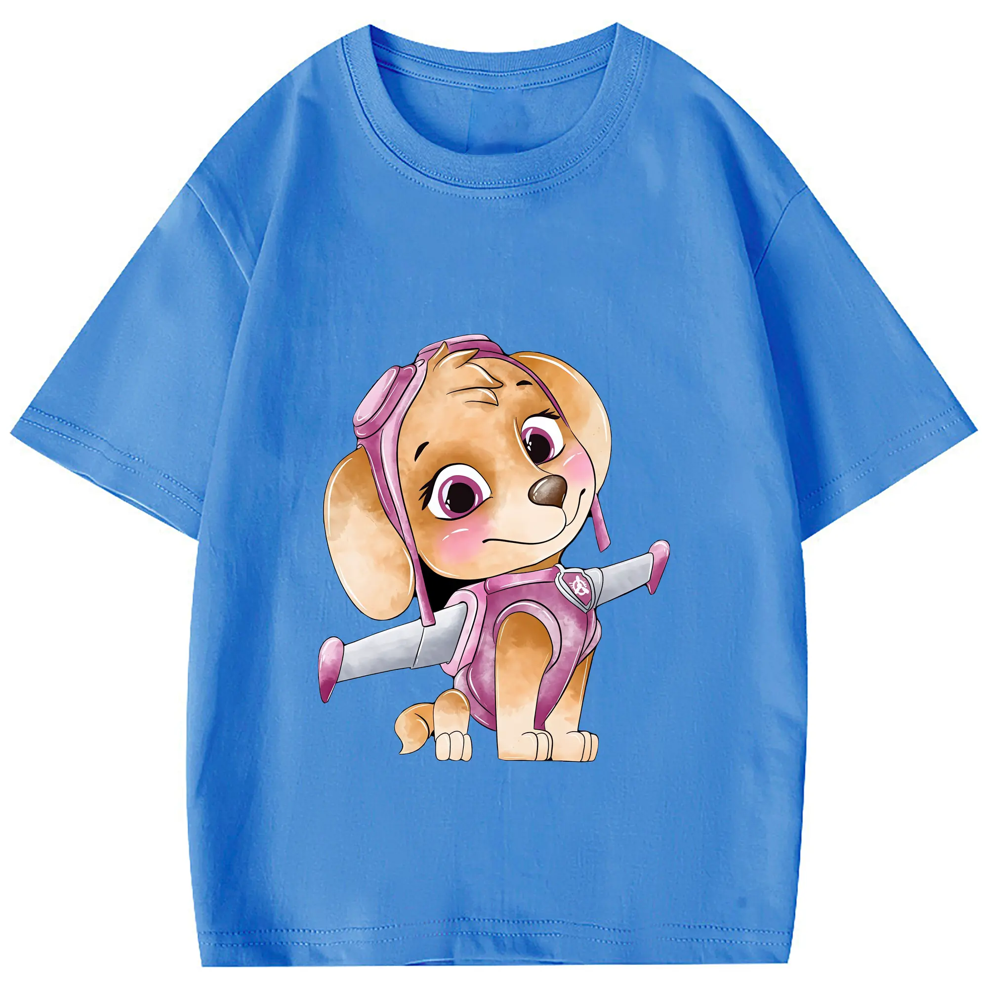 パウ・パトロール グッズ,スカイ - 綿100% 半袖Tシャツ ・ フロントプリント ・ 快適 通気性 ・ 日常使い 散歩 スポーツ用