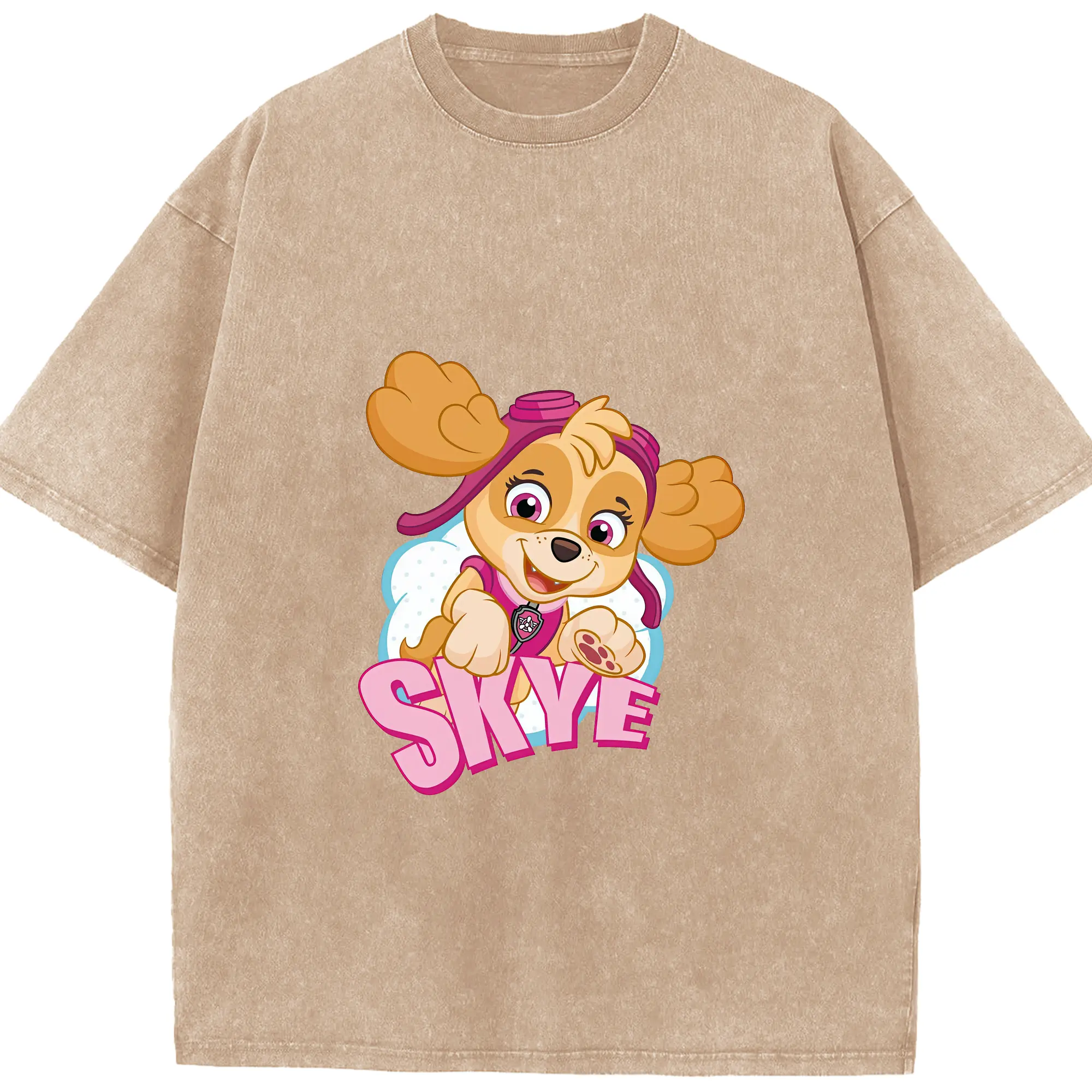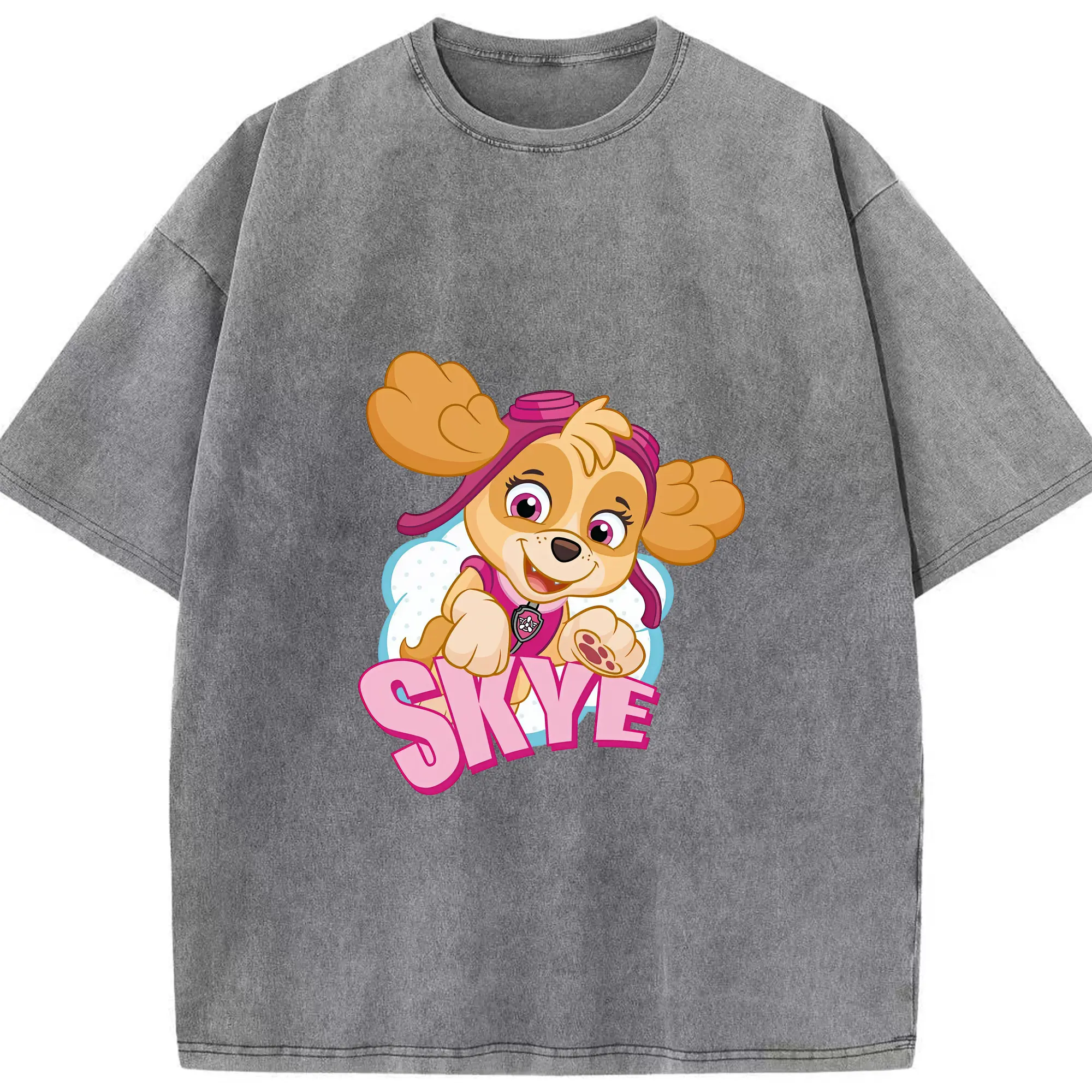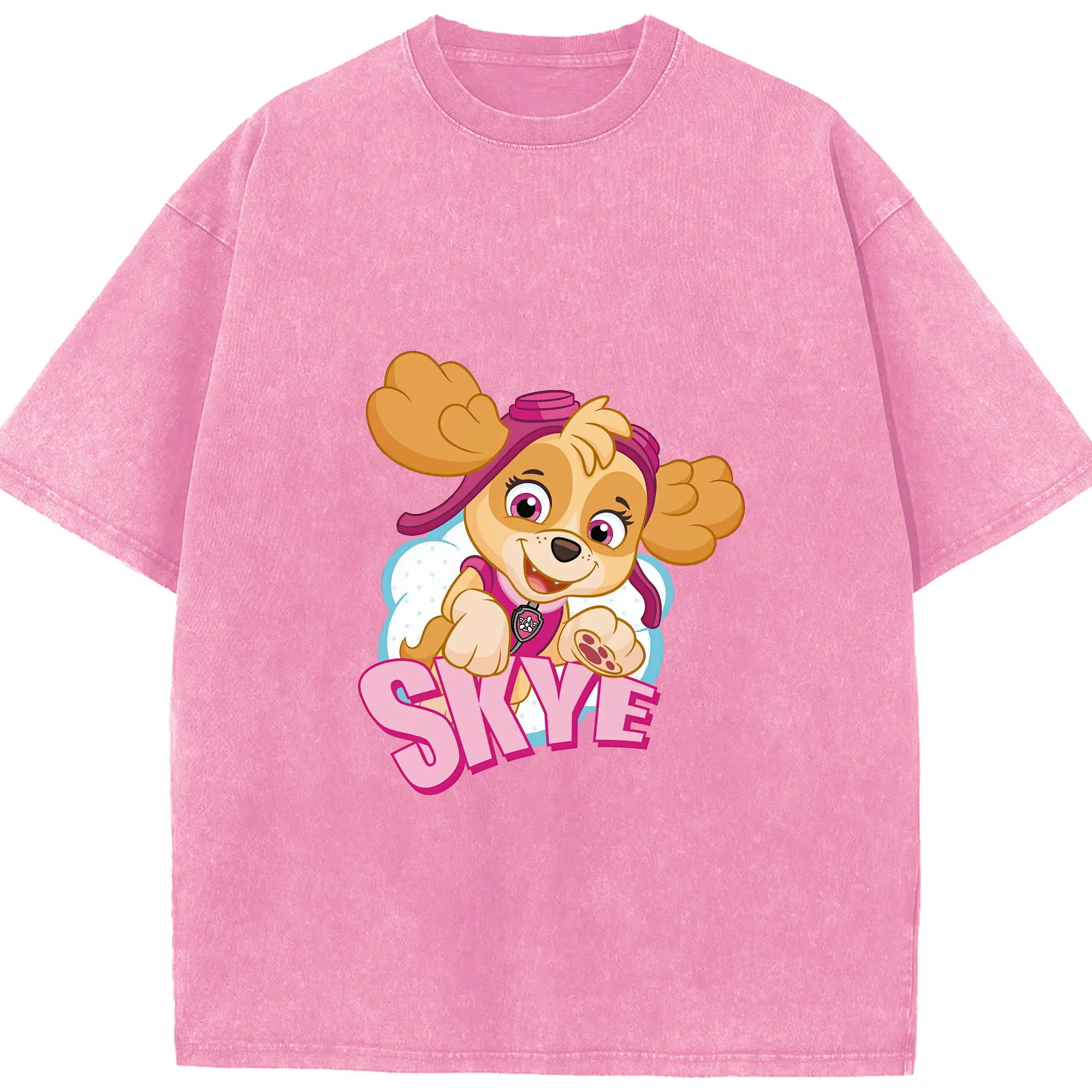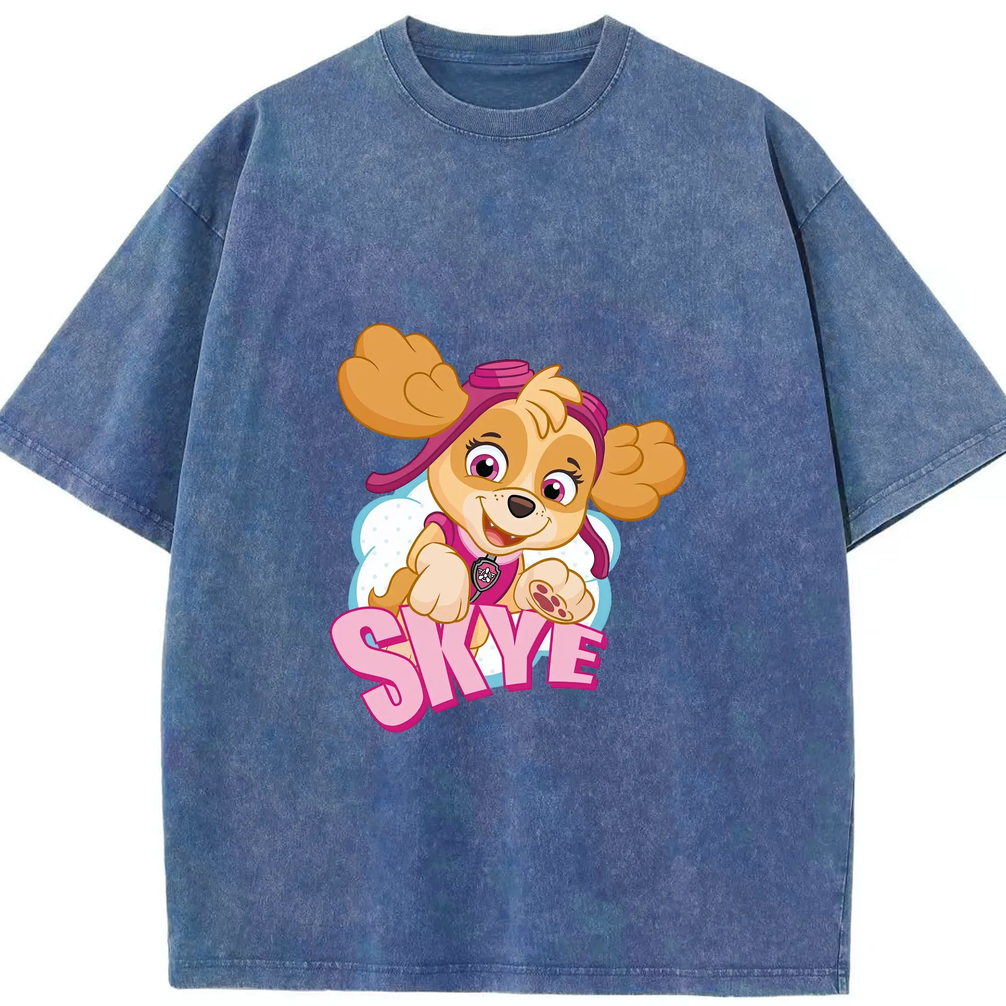 パウ・パトロール グッズ,スカイ - 綿100% ヴィンテージ風 半袖Tシャツ ・ 背面プリント ・ 柔らか肌触り ・ 通気性 快適 ・ スポーツ カジュアル 外出用