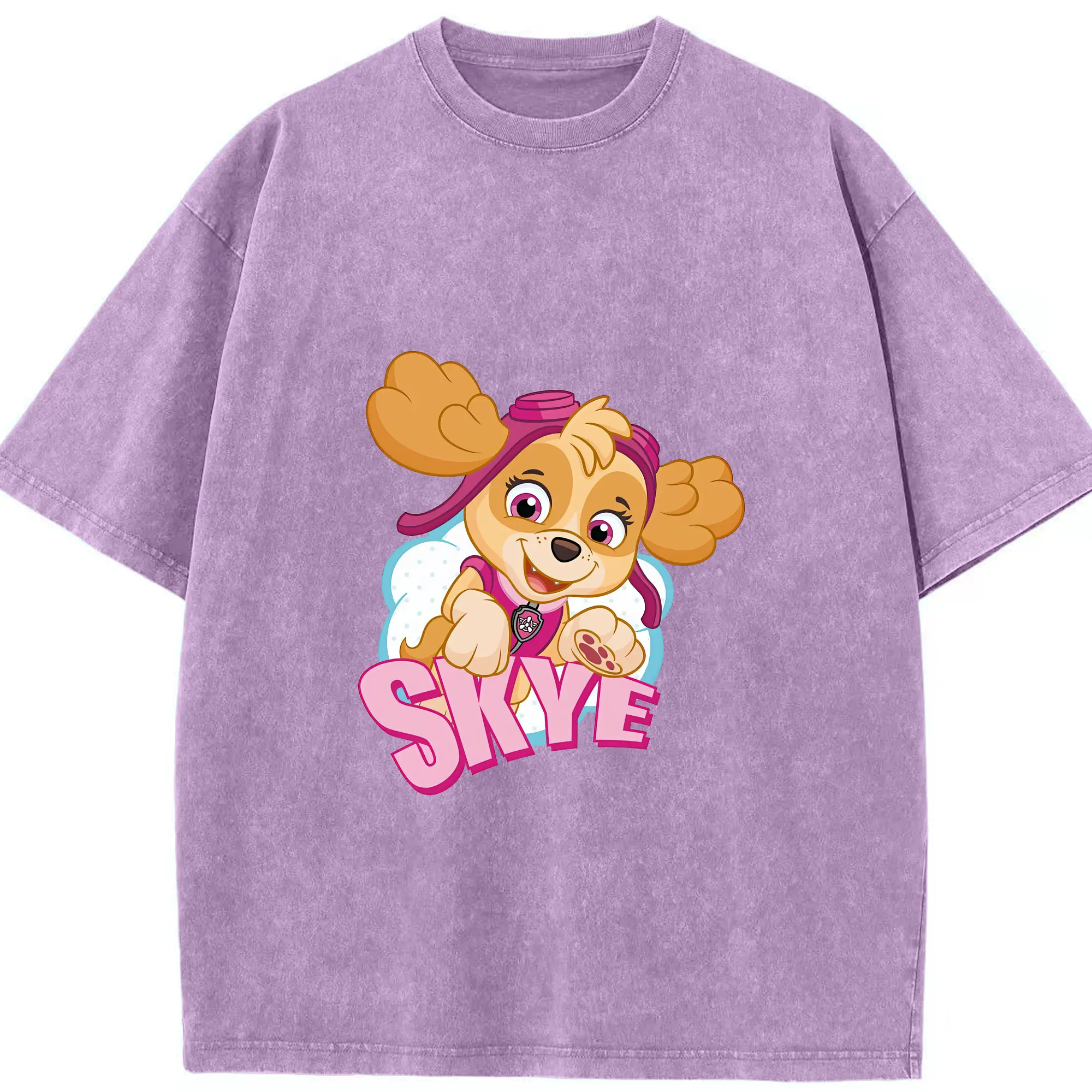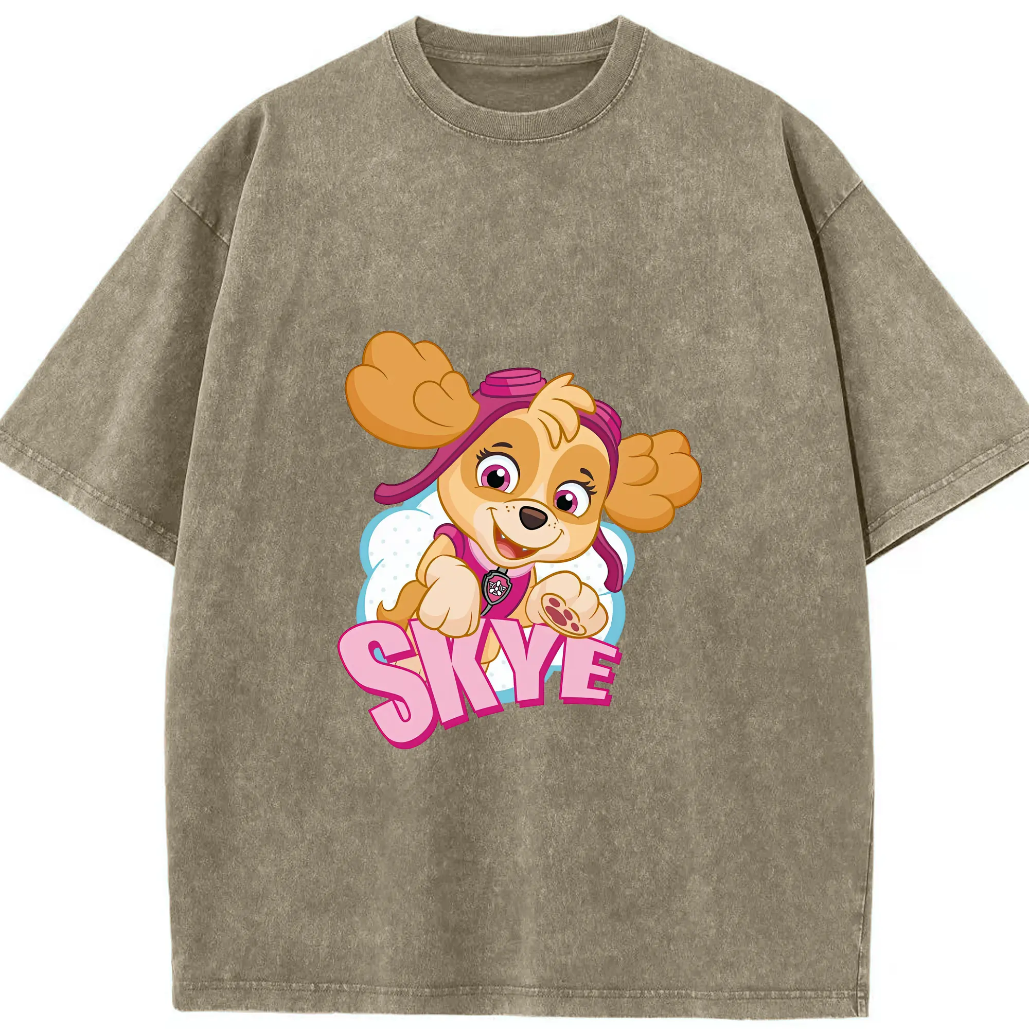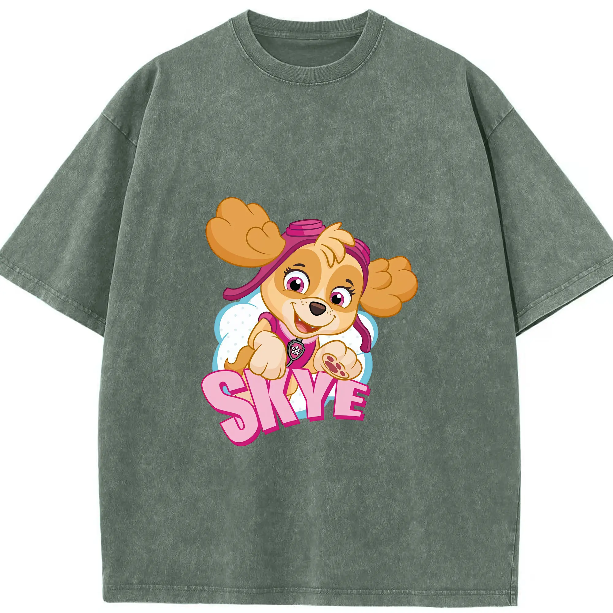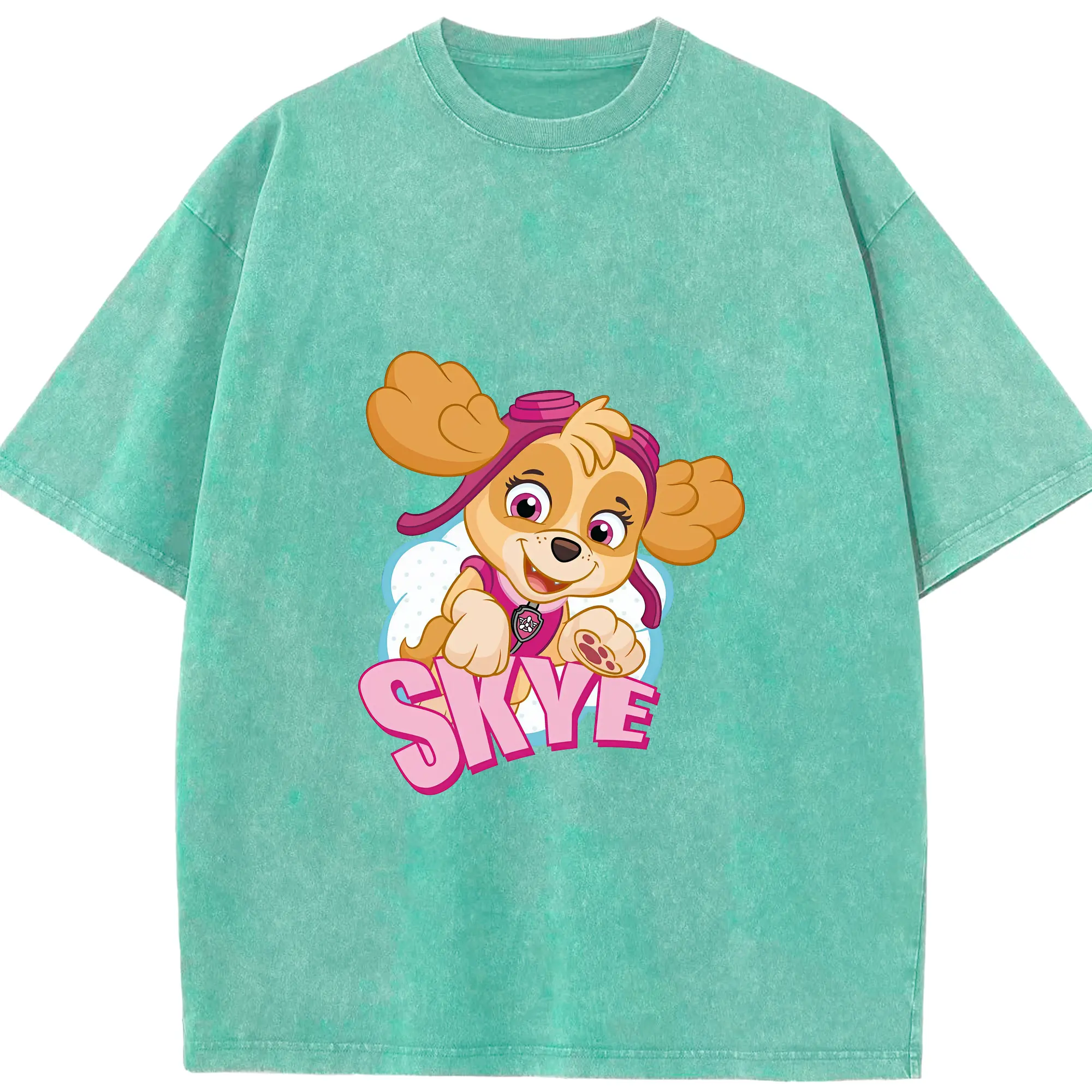 パウ・パトロール グッズ,スカイ - 綿100% ヴィンテージ風 半袖Tシャツ ・ 背面プリント ・ 柔らか肌触り ・ 通気性 快適 ・ スポーツ カジュアル 外出用