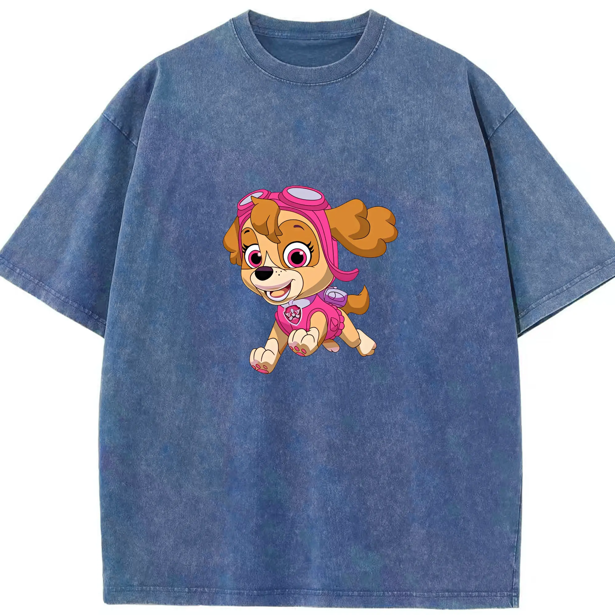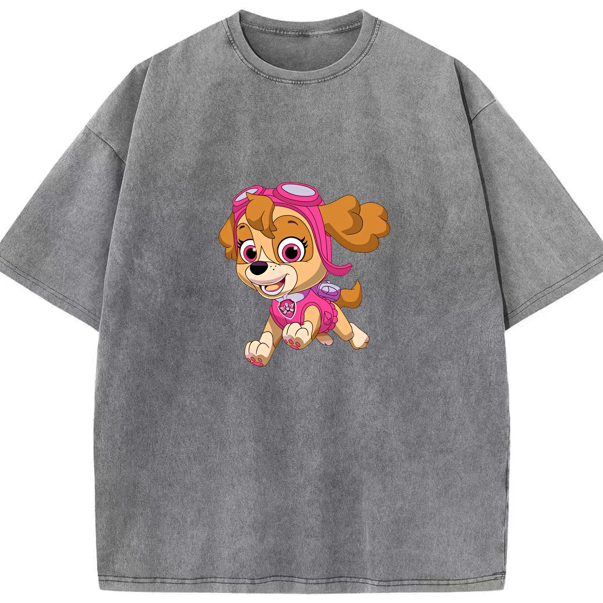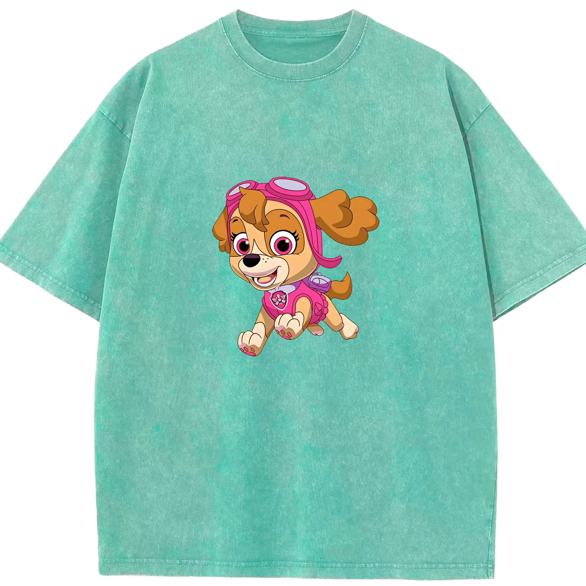 パウ・パトロール グッズ,スカイ - 綿100% ヴィンテージ風 半袖Tシャツ ・ 背面プリント ・ 柔らか肌触り ・ 通気性 快適 ・ スポーツ カジュアル 外出用