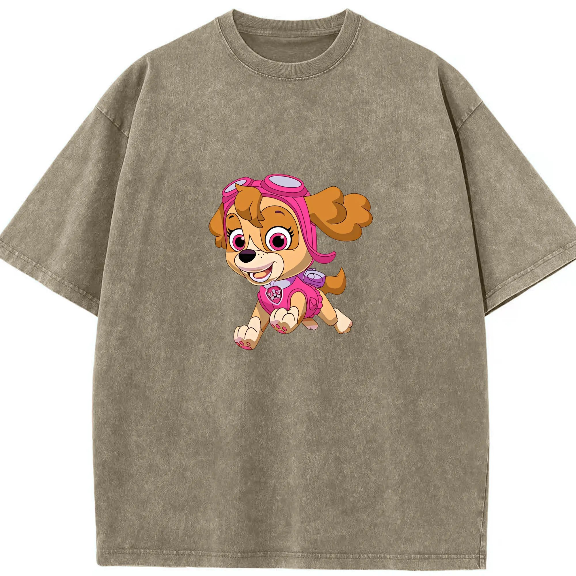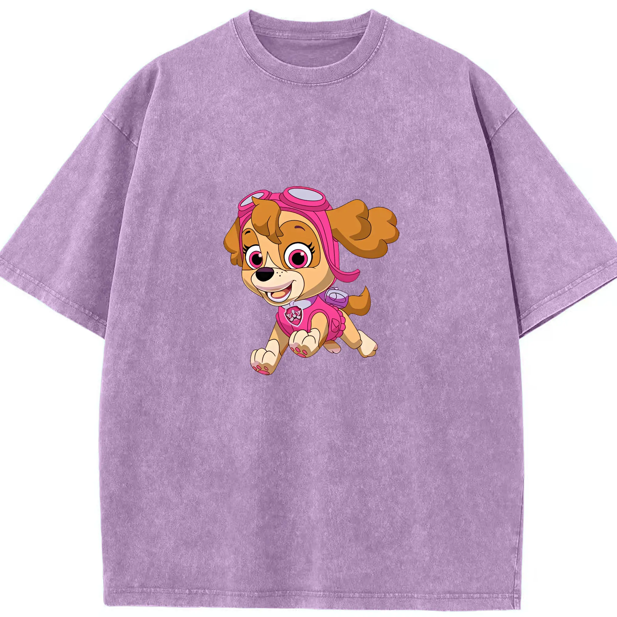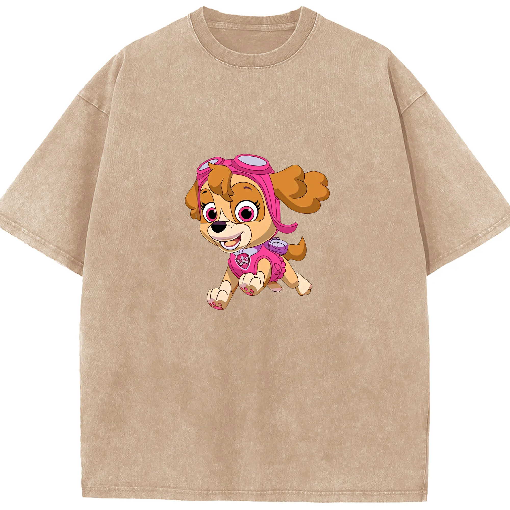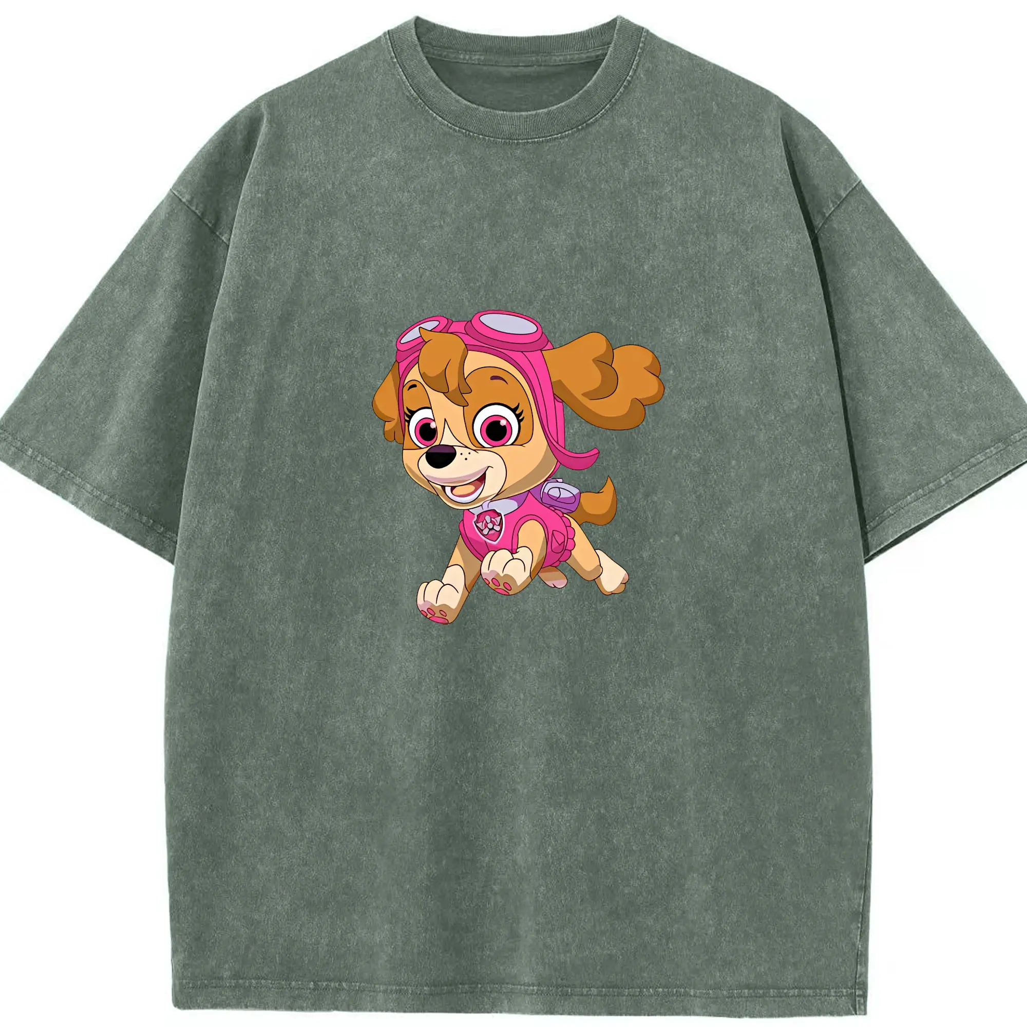 パウ・パトロール グッズ,スカイ - 綿100% ヴィンテージ風 半袖Tシャツ ・ 背面プリント ・ 柔らか肌触り ・ 通気性 快適 ・ スポーツ カジュアル 外出用