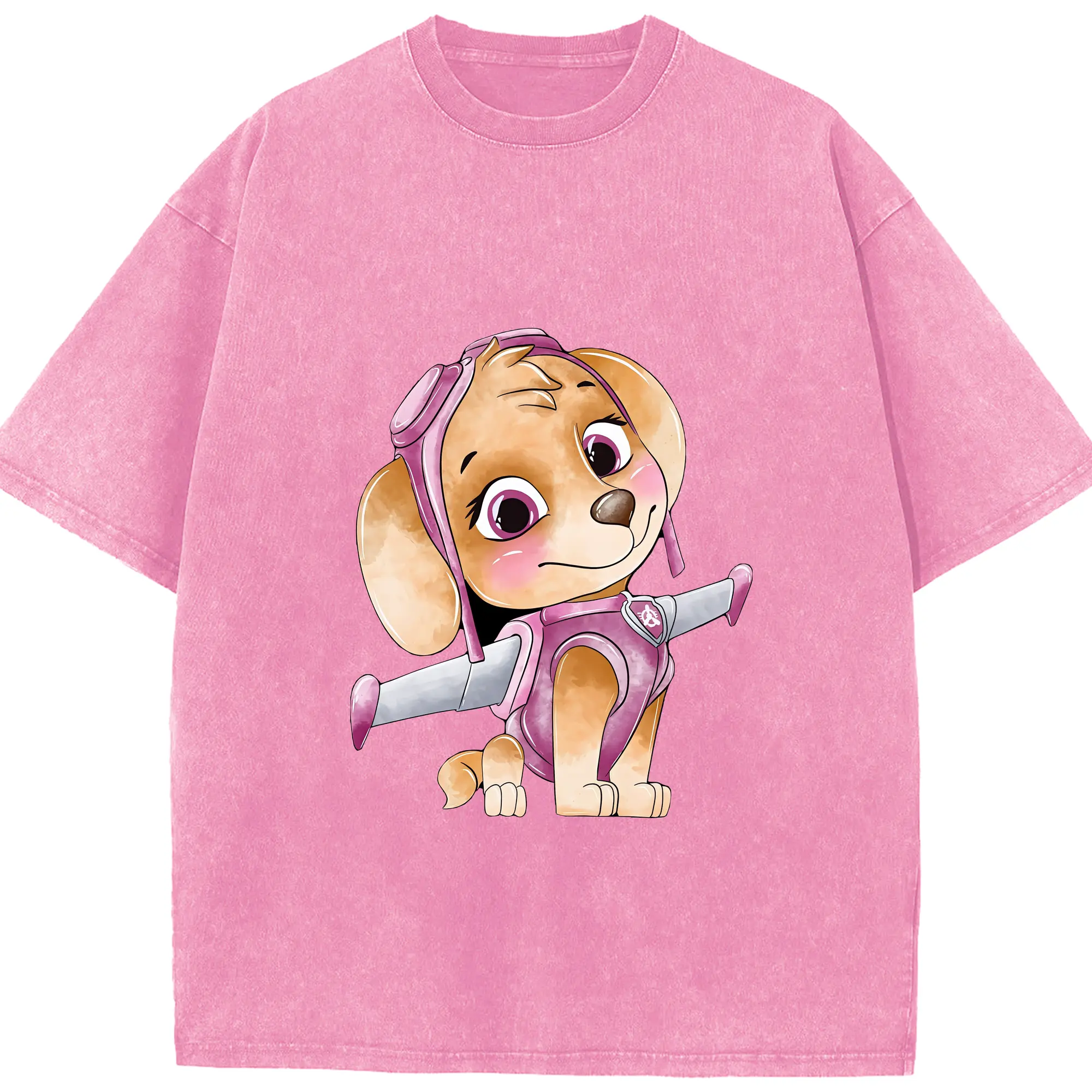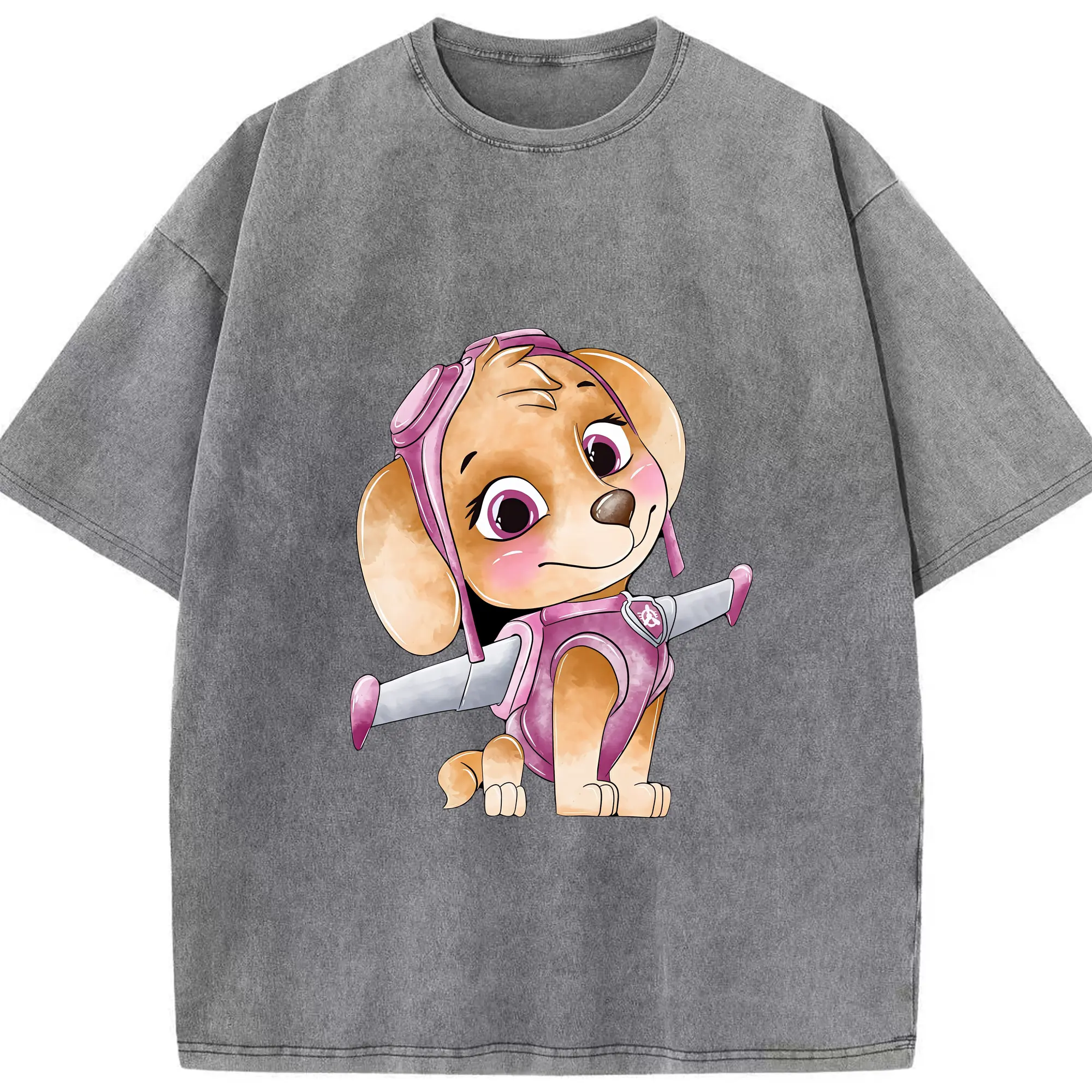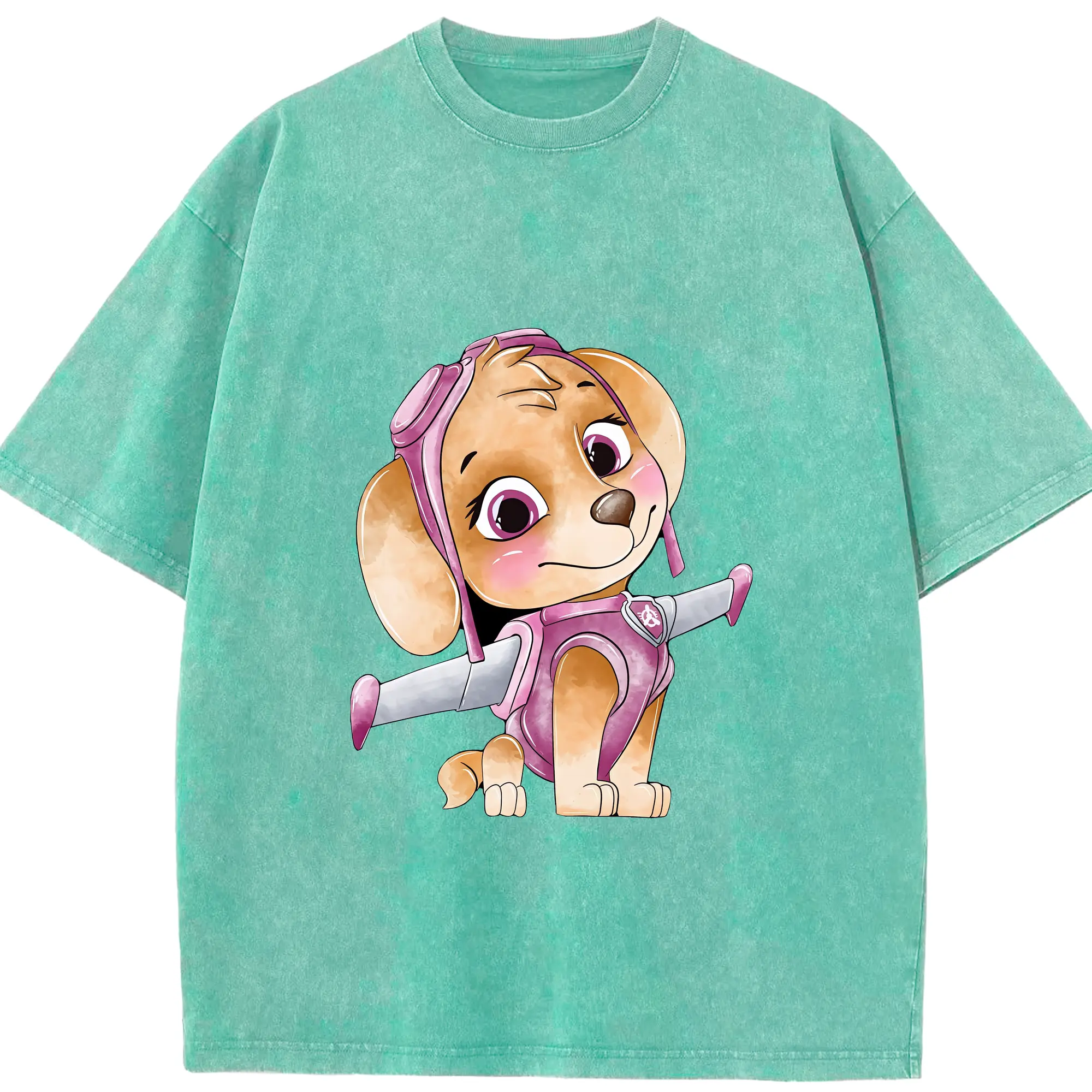 パウ・パトロール グッズ,スカイ - 綿100% ヴィンテージ風 半袖Tシャツ ・ 背面プリント ・ 柔らか肌触り ・ 通気性 快適 ・ スポーツ カジュアル 外出用