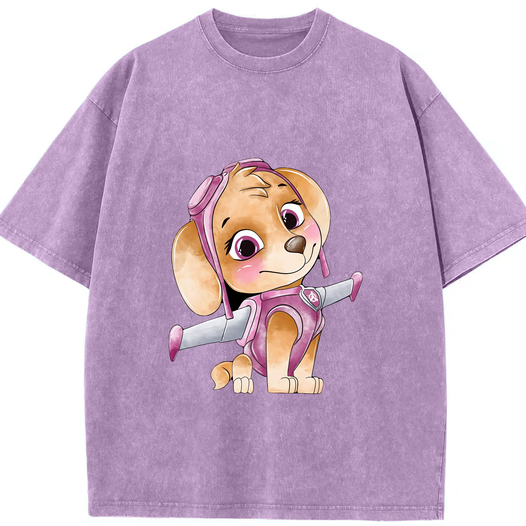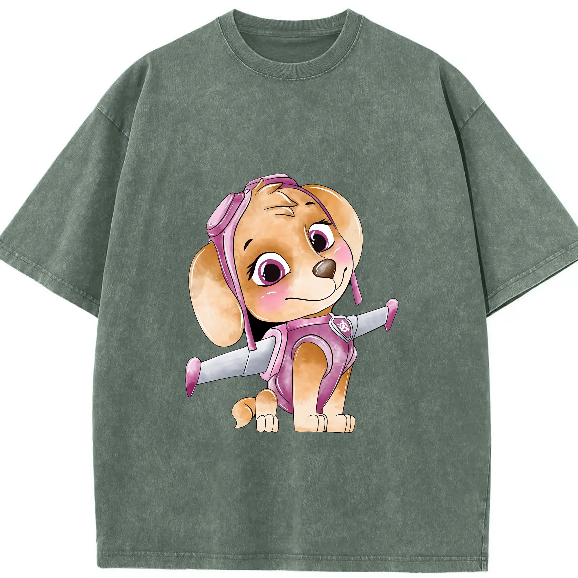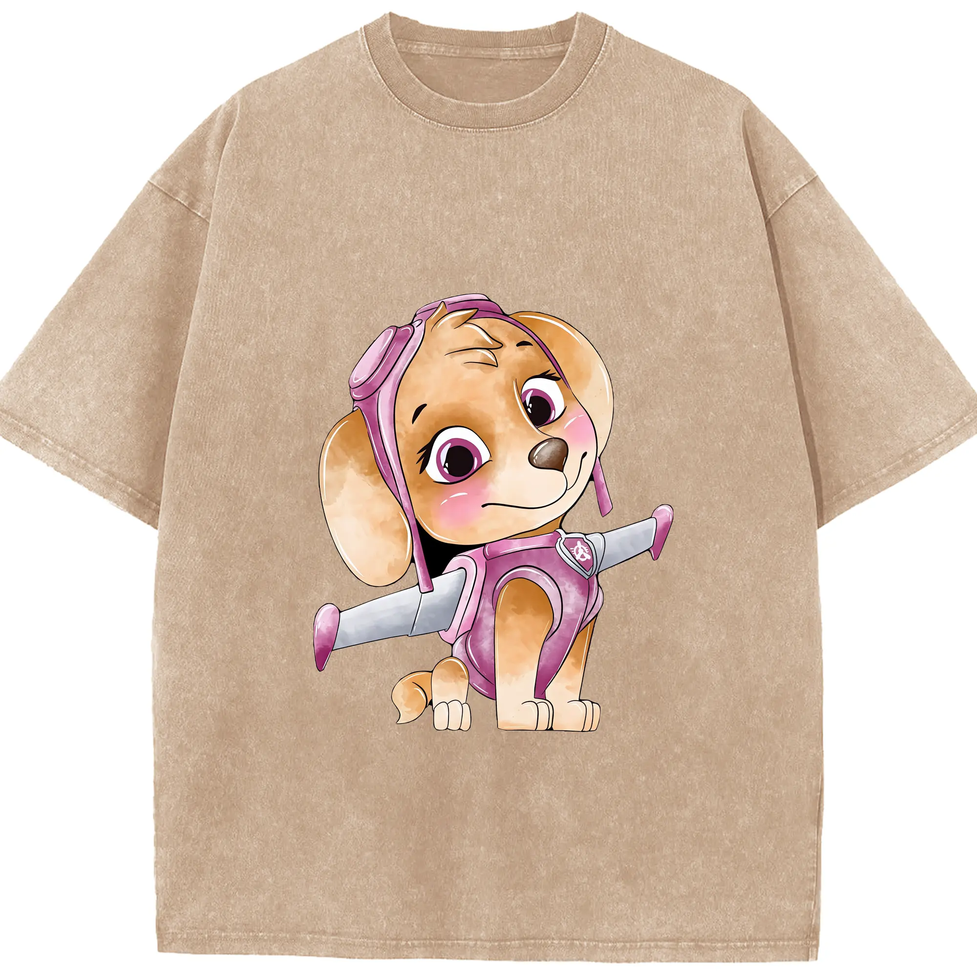 パウ・パトロール グッズ,スカイ - 綿100% ヴィンテージ風 半袖Tシャツ ・ 背面プリント ・ 柔らか肌触り ・ 通気性 快適 ・ スポーツ カジュアル 外出用