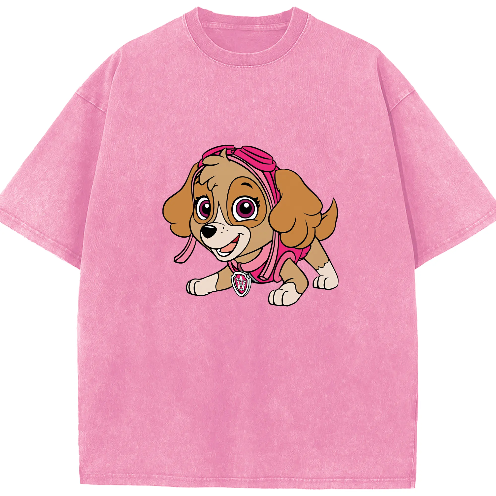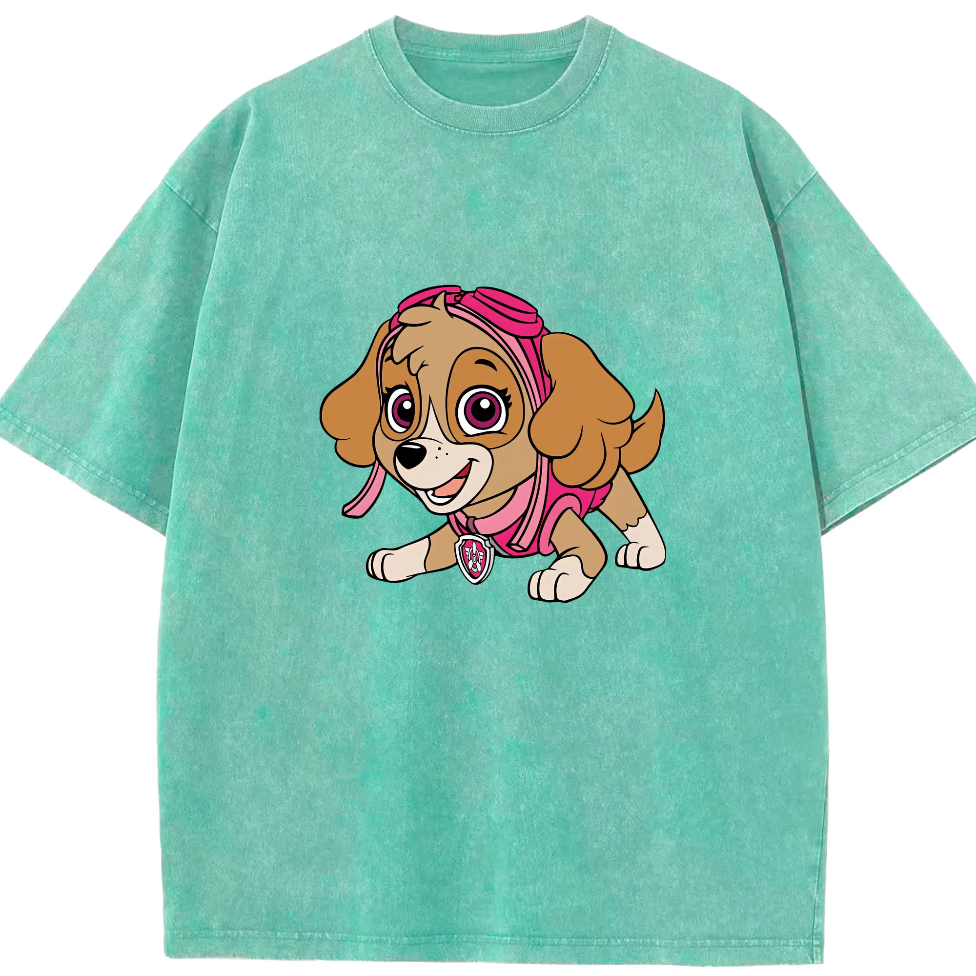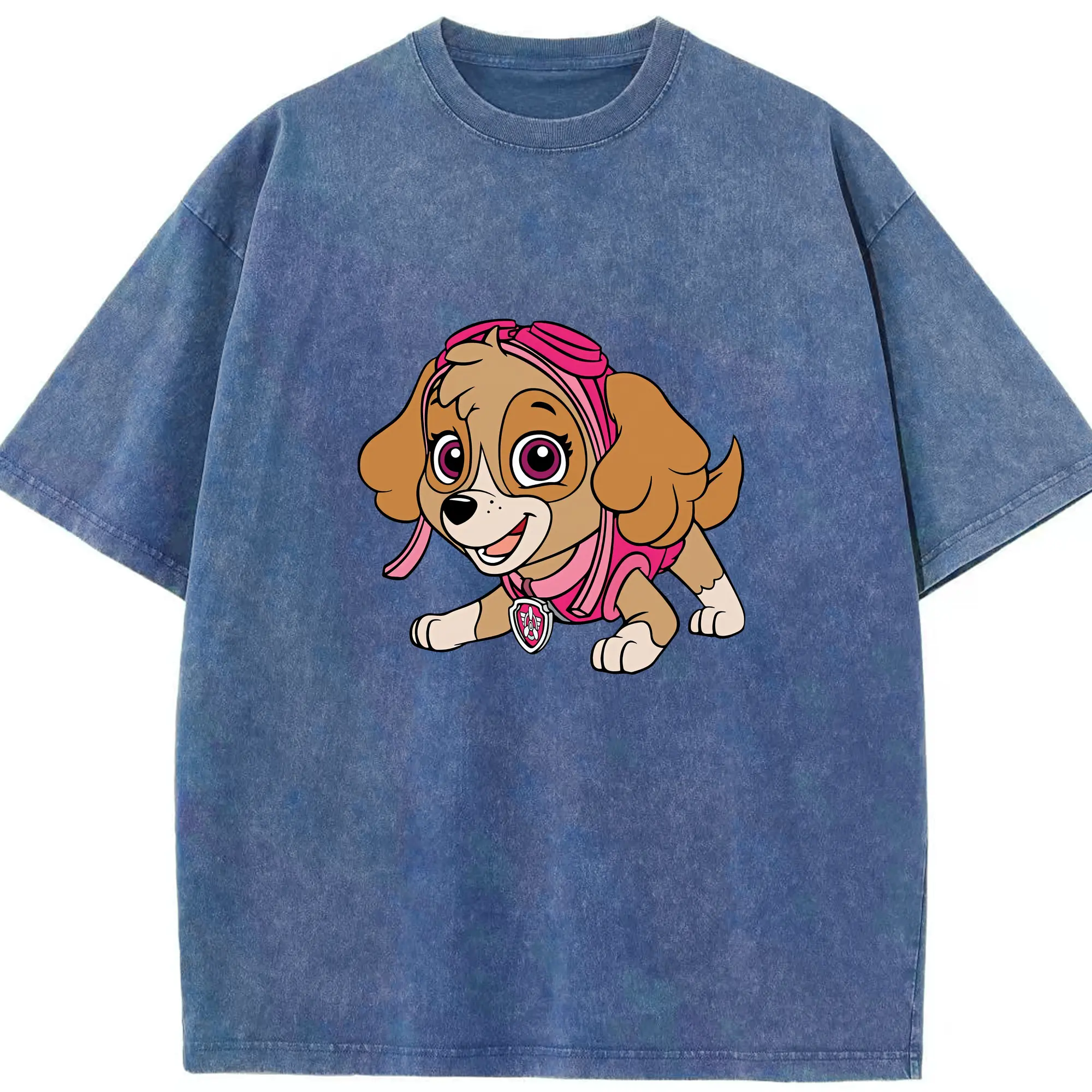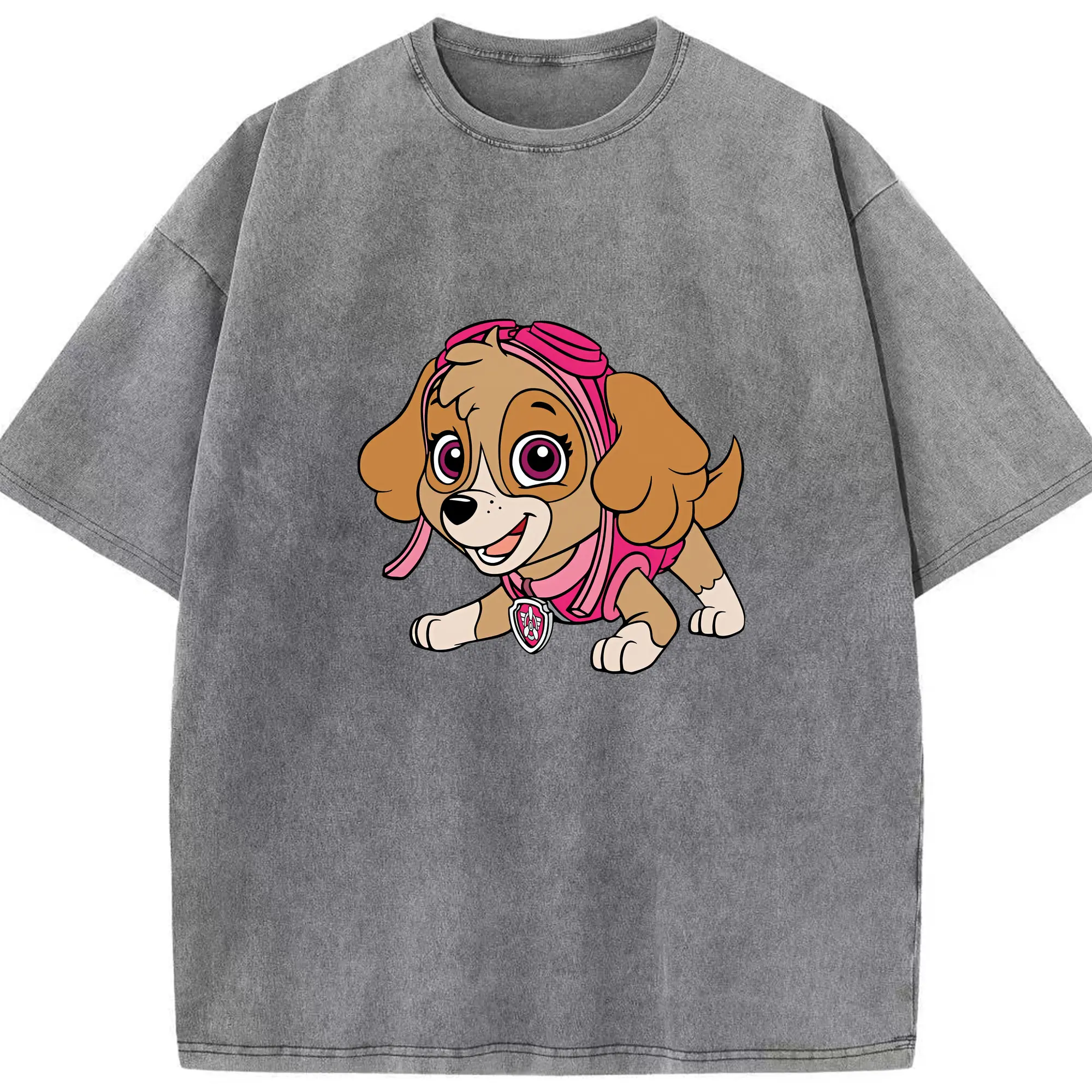 パウ・パトロール グッズ,スカイ - 綿100% ヴィンテージ風 半袖Tシャツ ・ 背面プリント ・ 柔らか肌触り ・ 通気性 快適 ・ スポーツ カジュアル 外出用