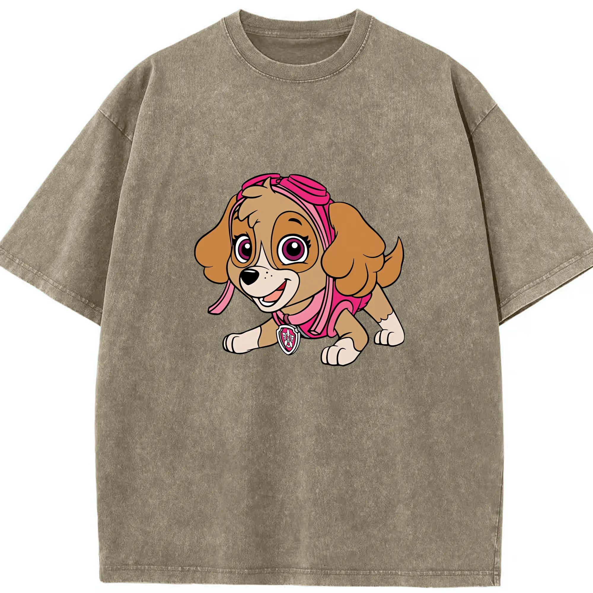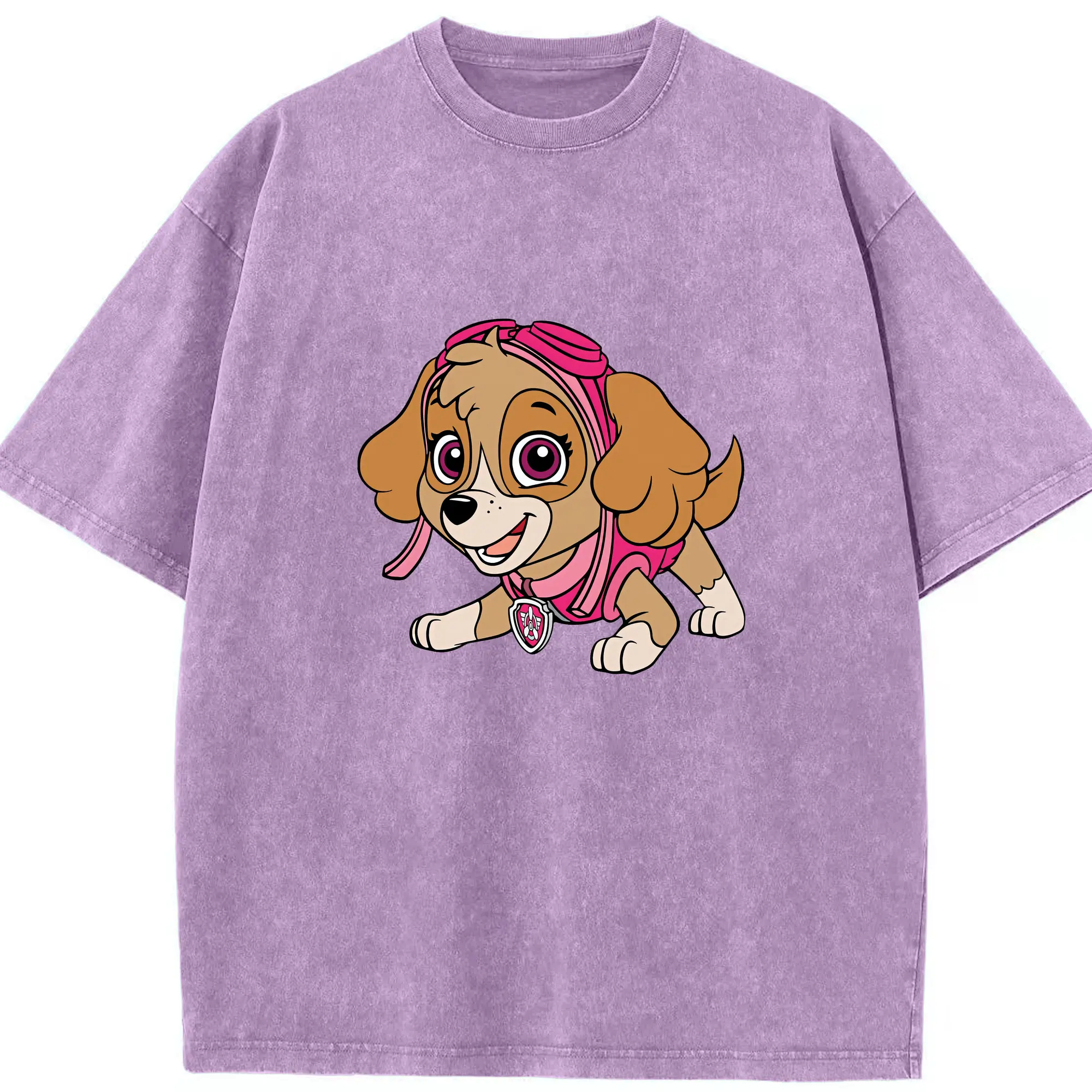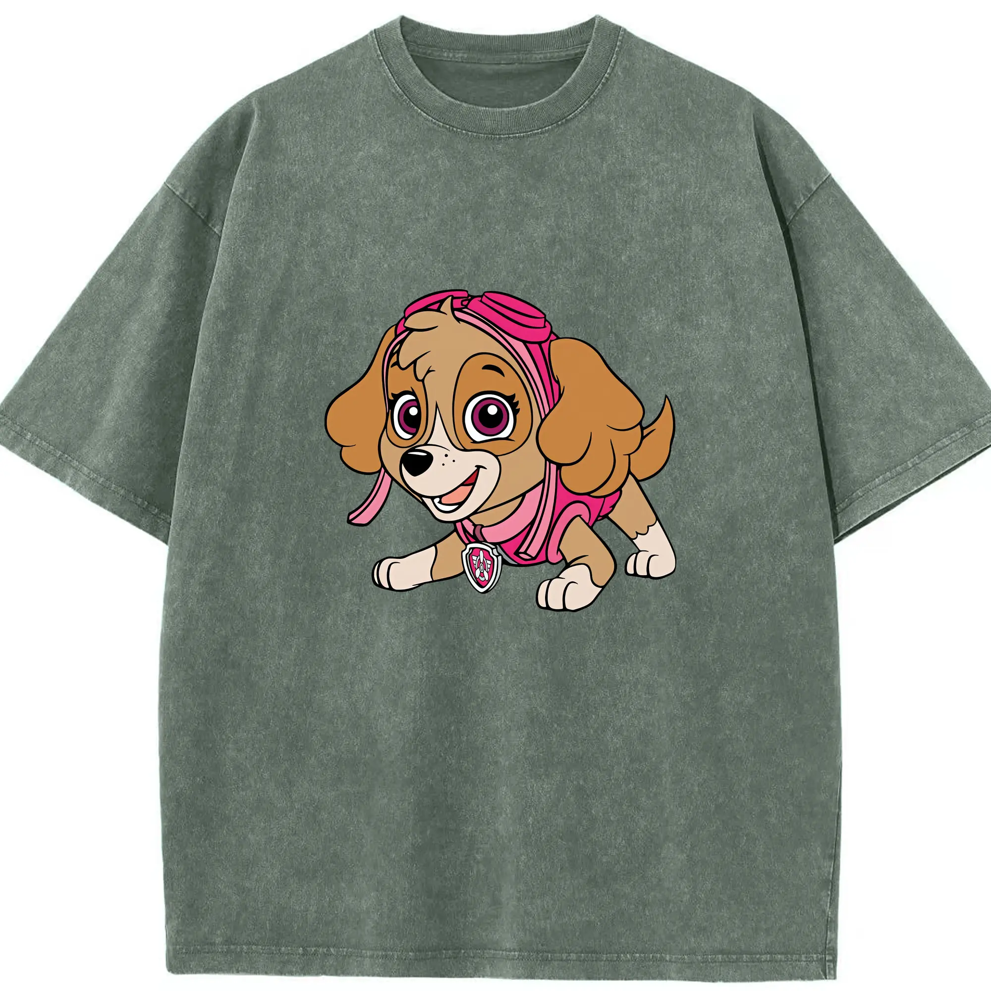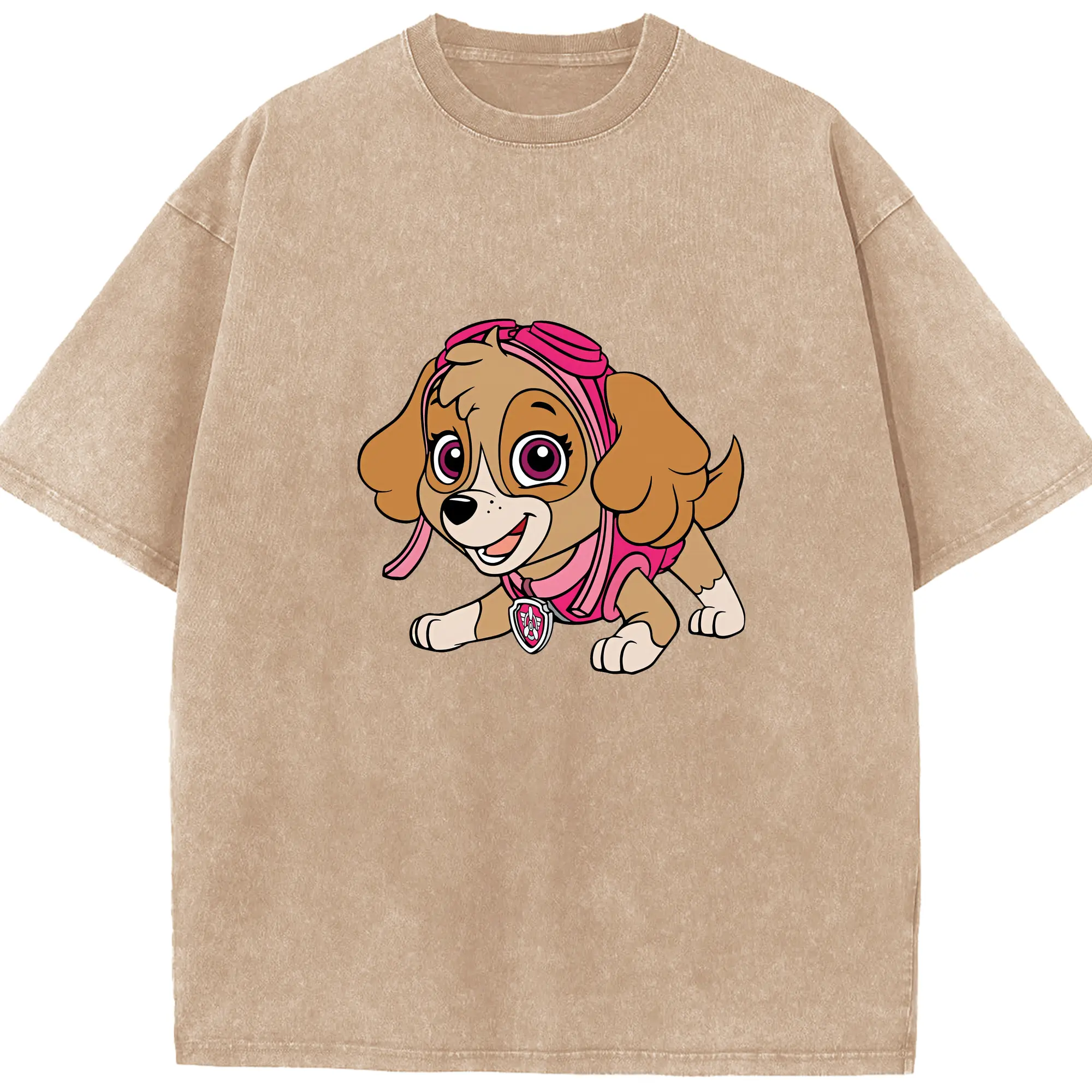 パウ・パトロール グッズ,スカイ - 綿100% ヴィンテージ風 半袖Tシャツ ・ 背面プリント ・ 柔らか肌触り ・ 通気性 快適 ・ スポーツ カジュアル 外出用