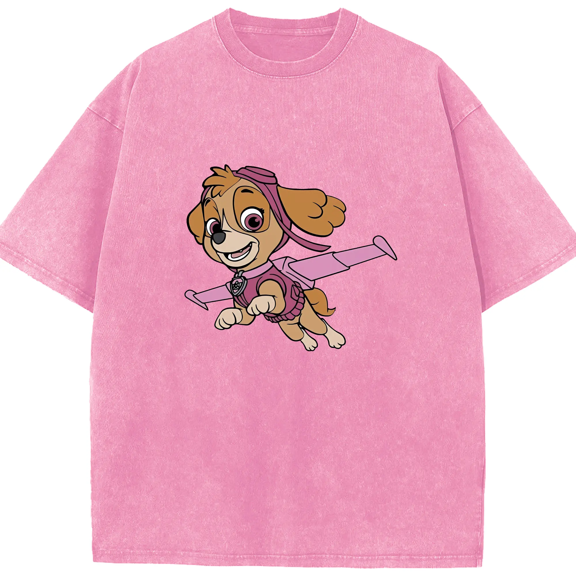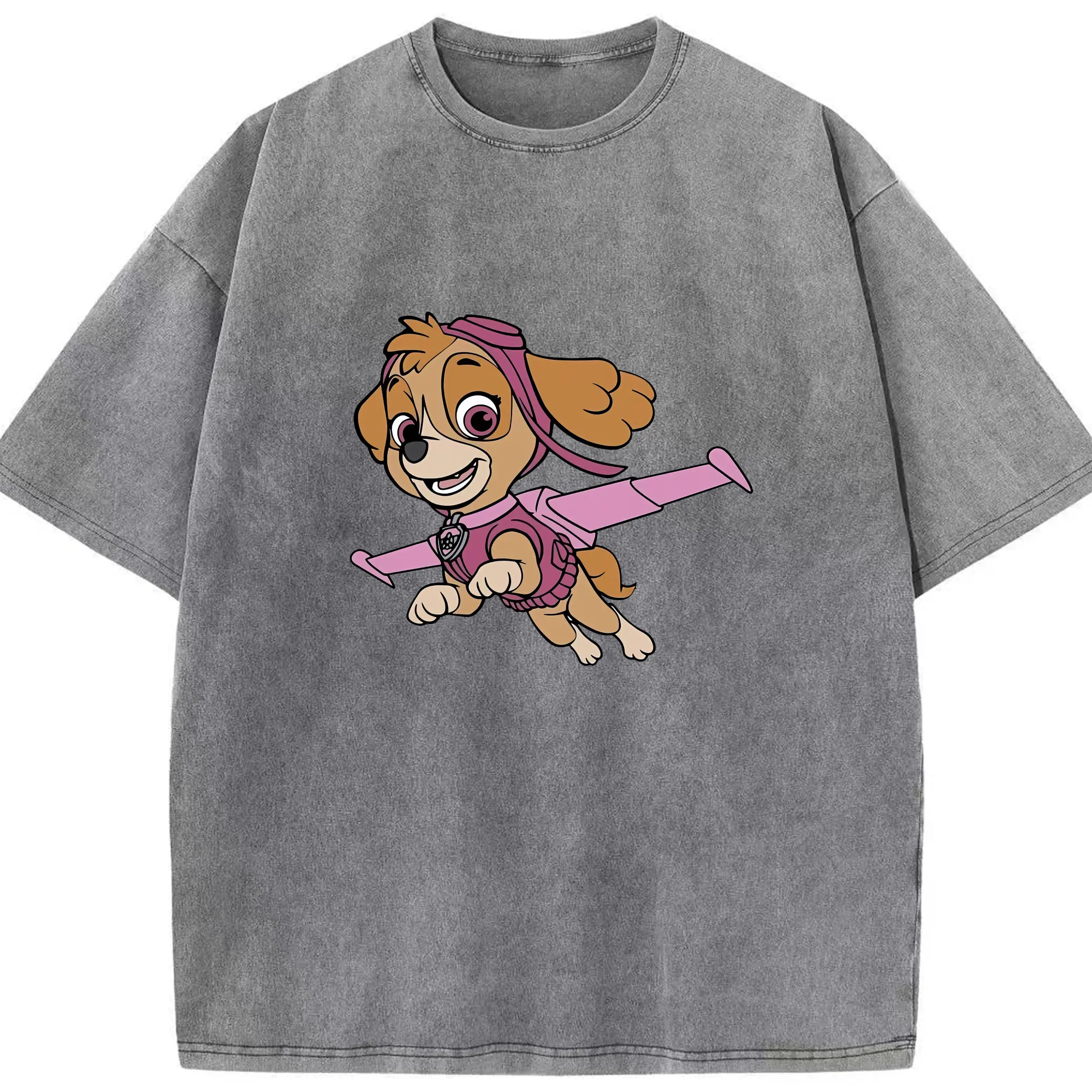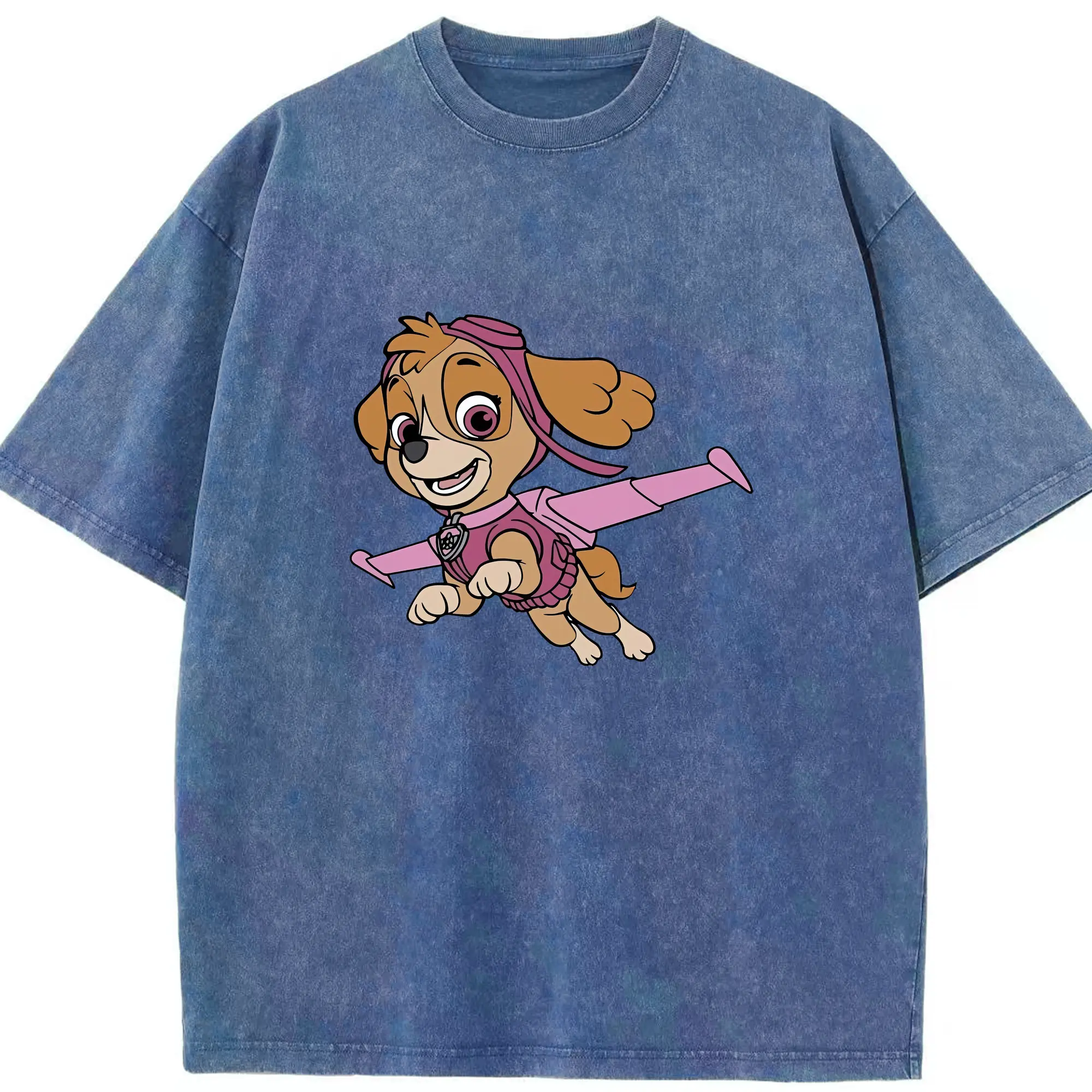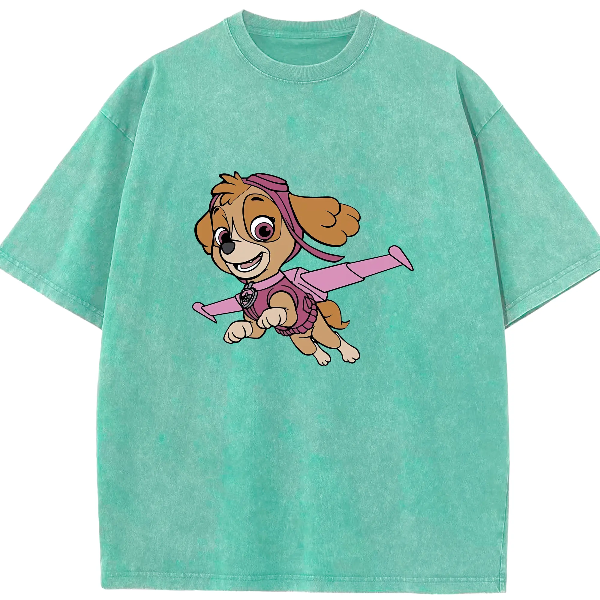 パウ・パトロール グッズ,スカイ - 綿100% ヴィンテージ風 半袖Tシャツ ・ 背面プリント ・ 柔らか肌触り ・ 通気性 快適 ・ スポーツ カジュアル 外出用