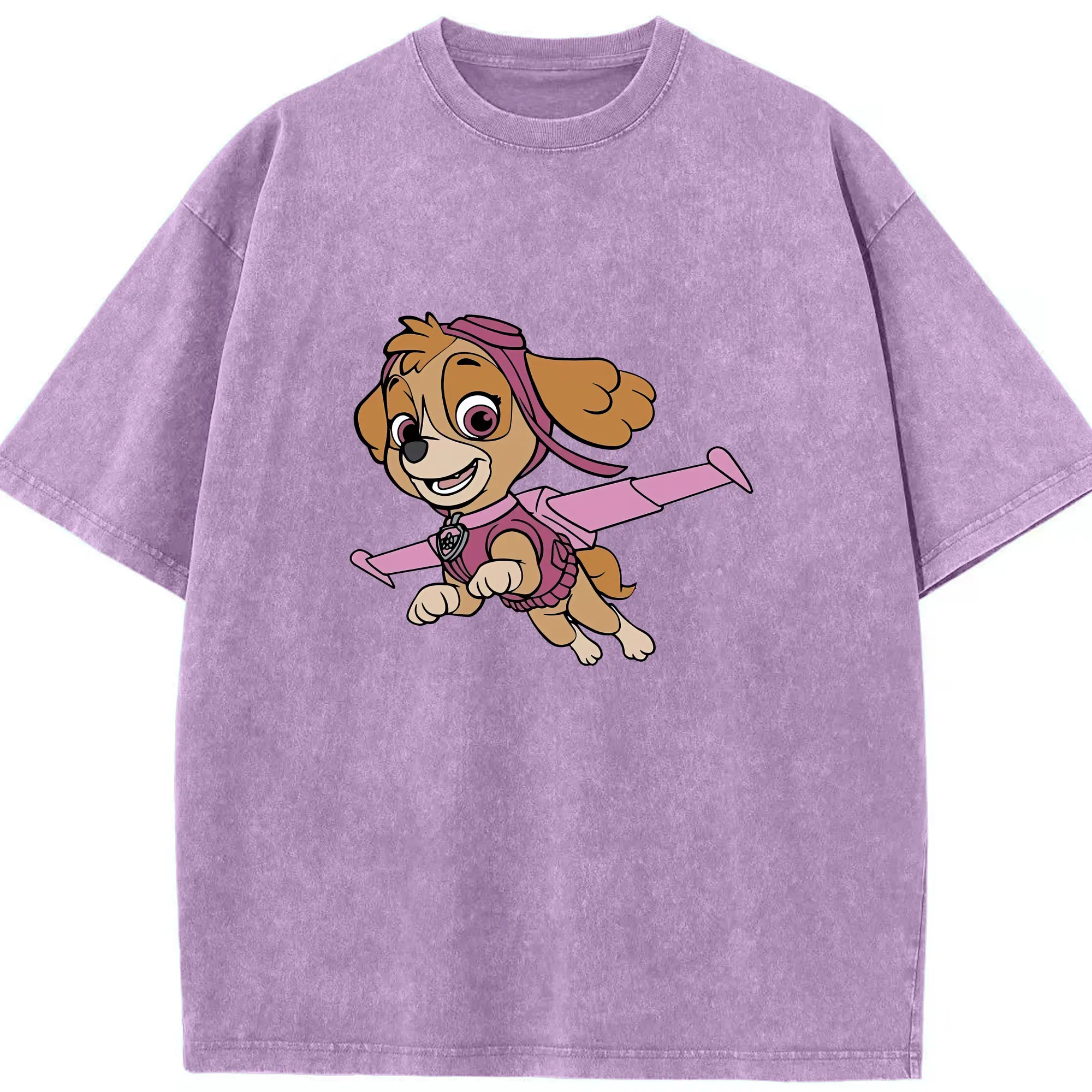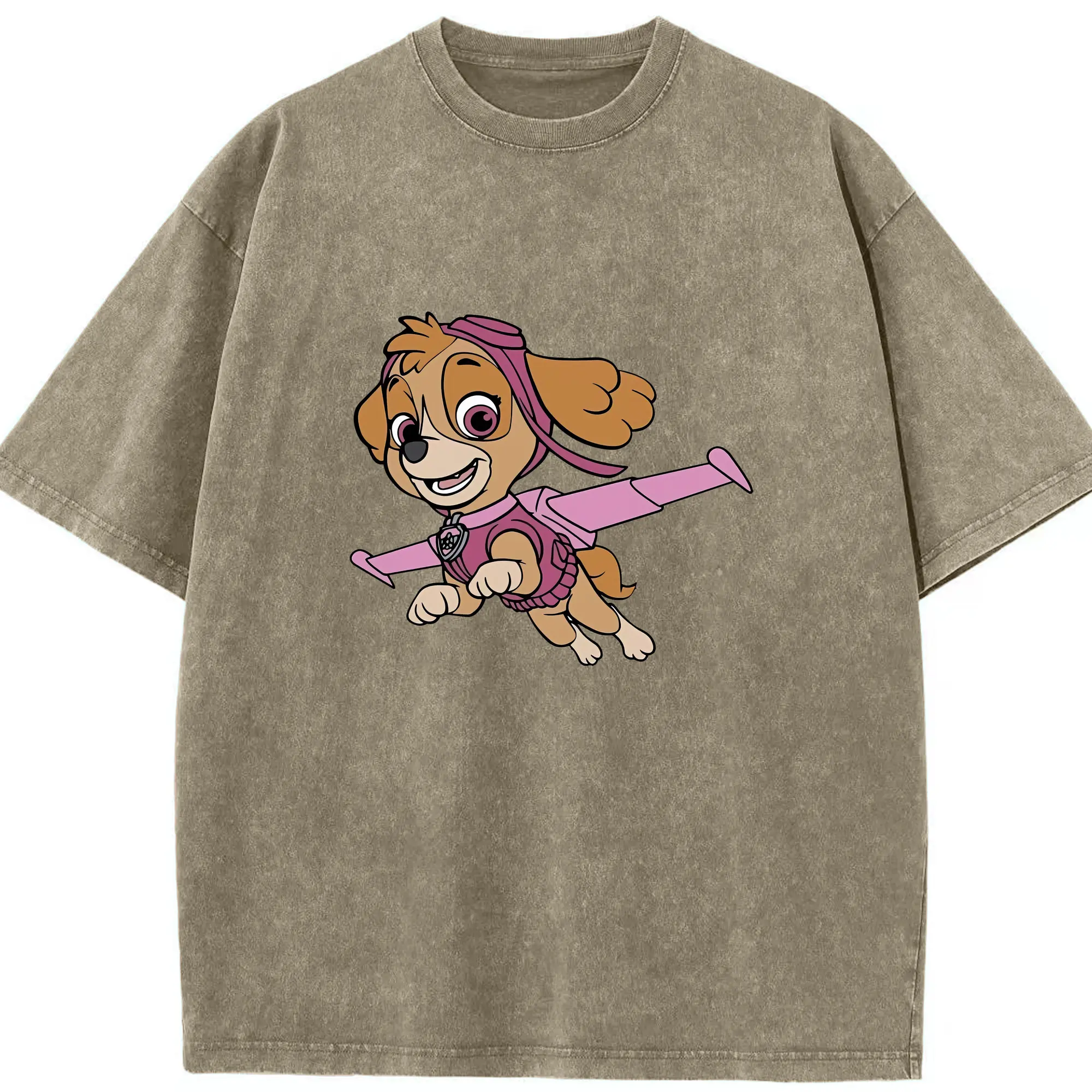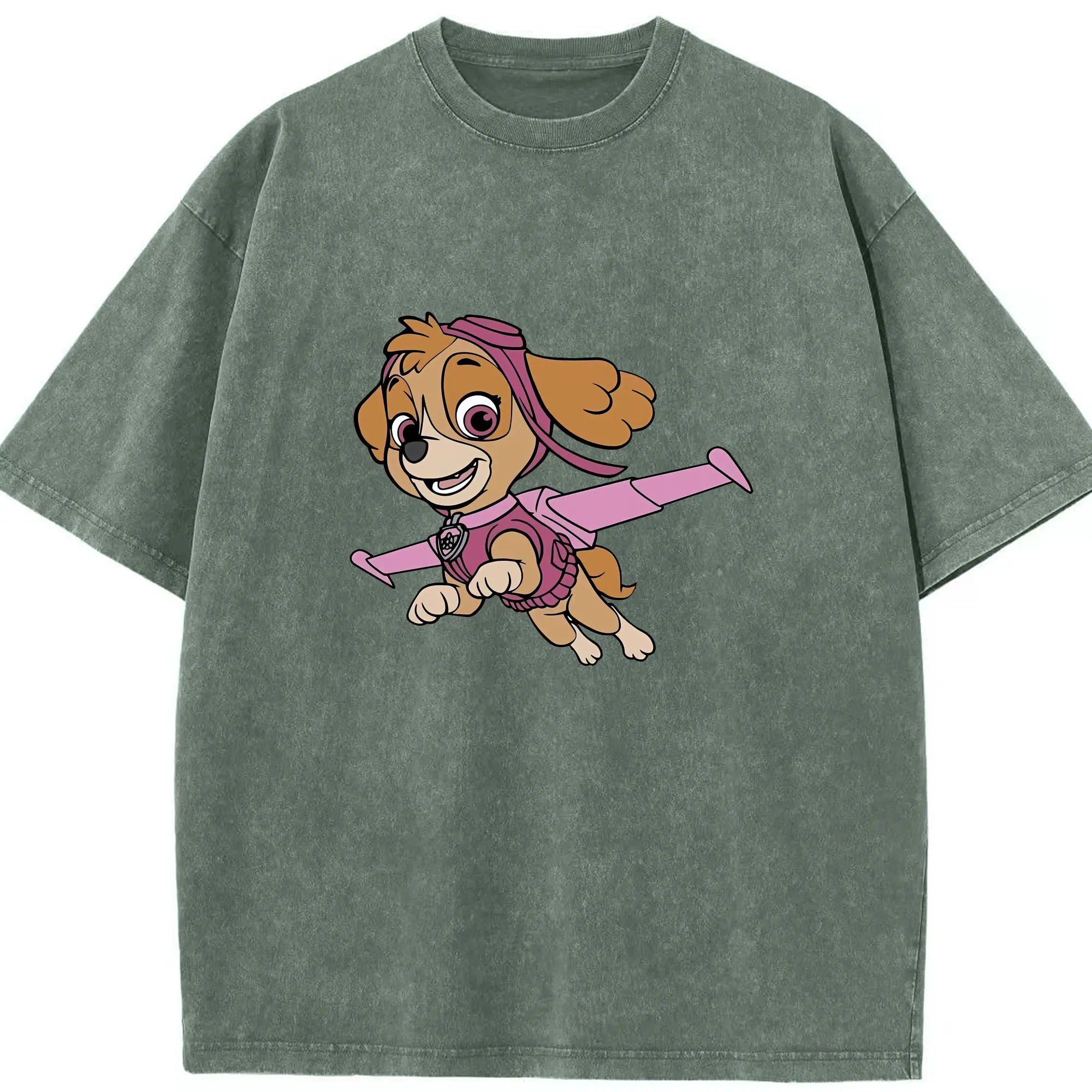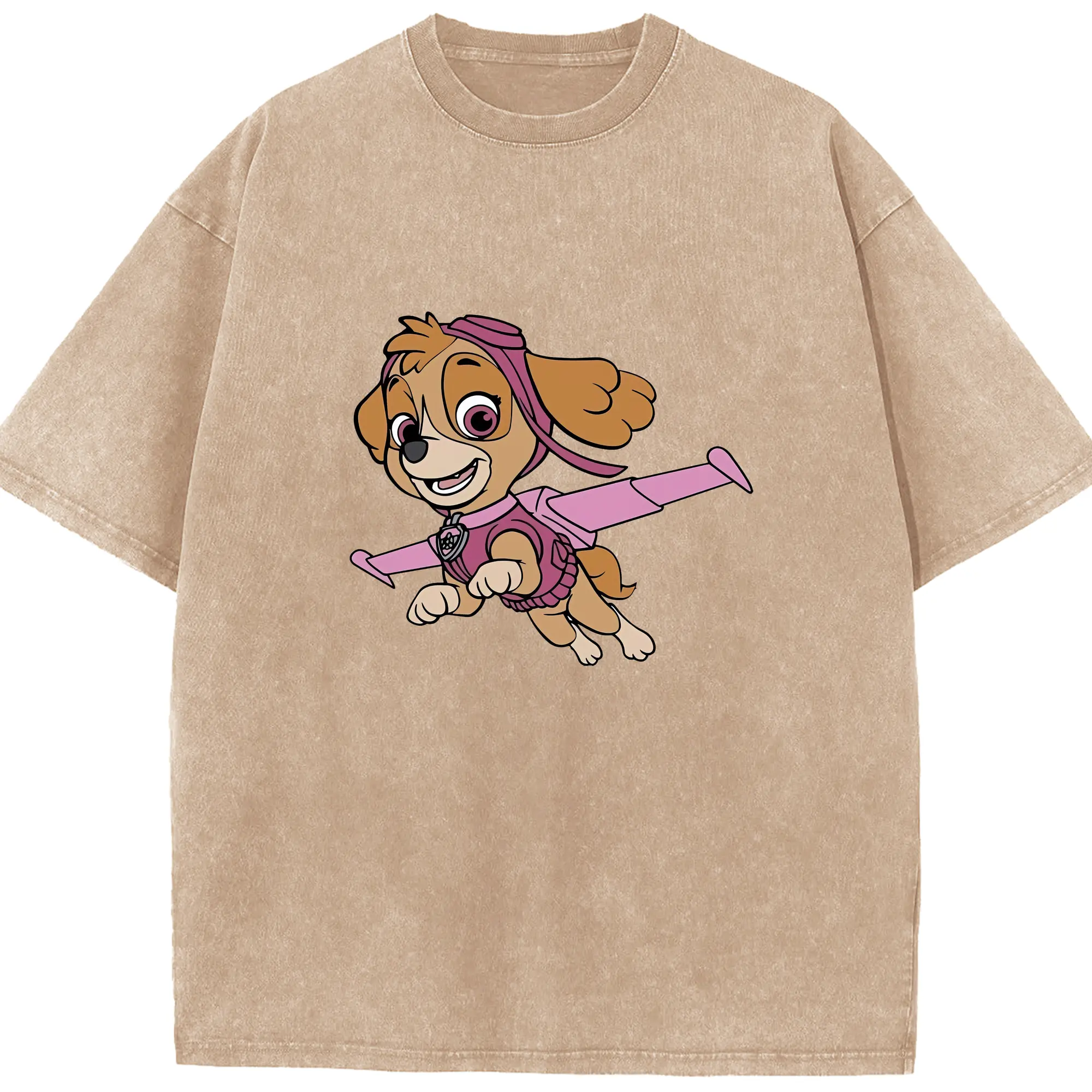 パウ・パトロール グッズ,スカイ - 綿100% ヴィンテージ風 半袖Tシャツ ・ 背面プリント ・ 柔らか肌触り ・ 通気性 快適 ・ スポーツ カジュアル 外出用