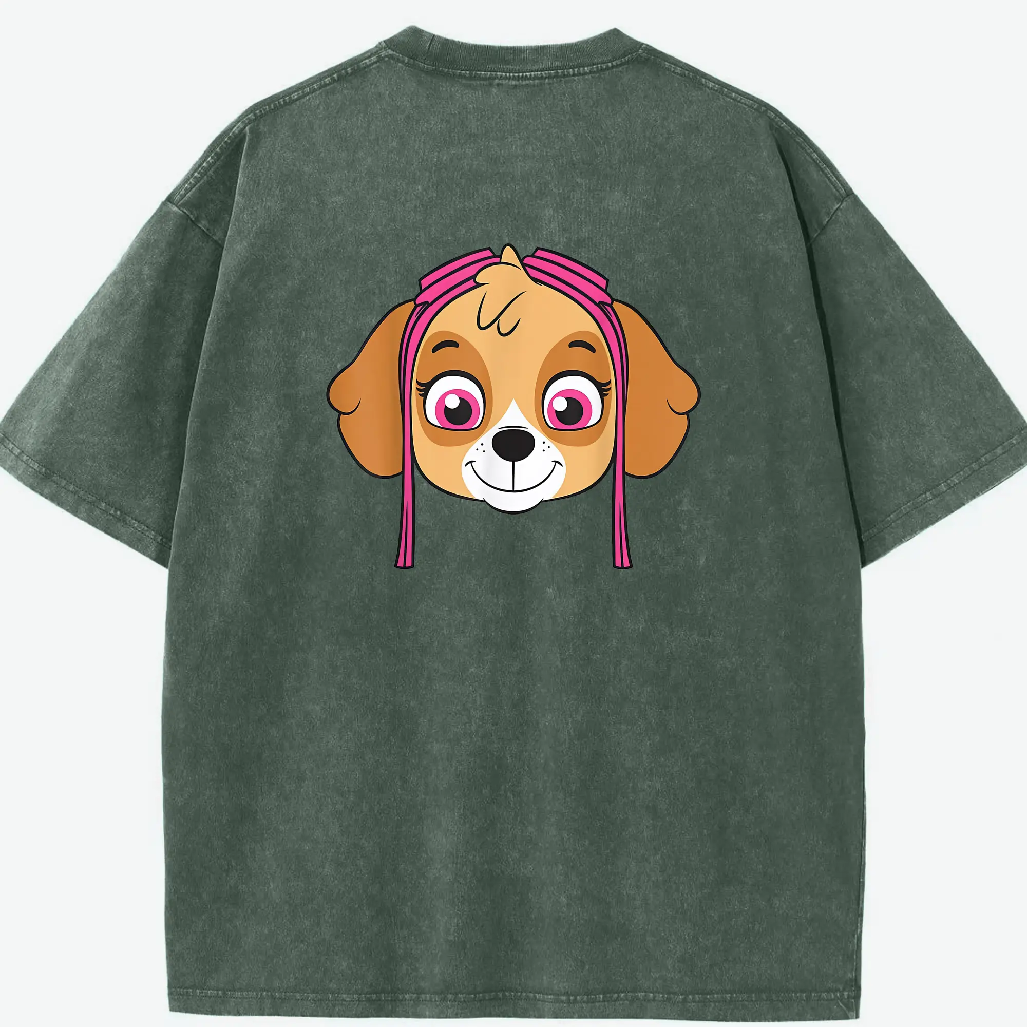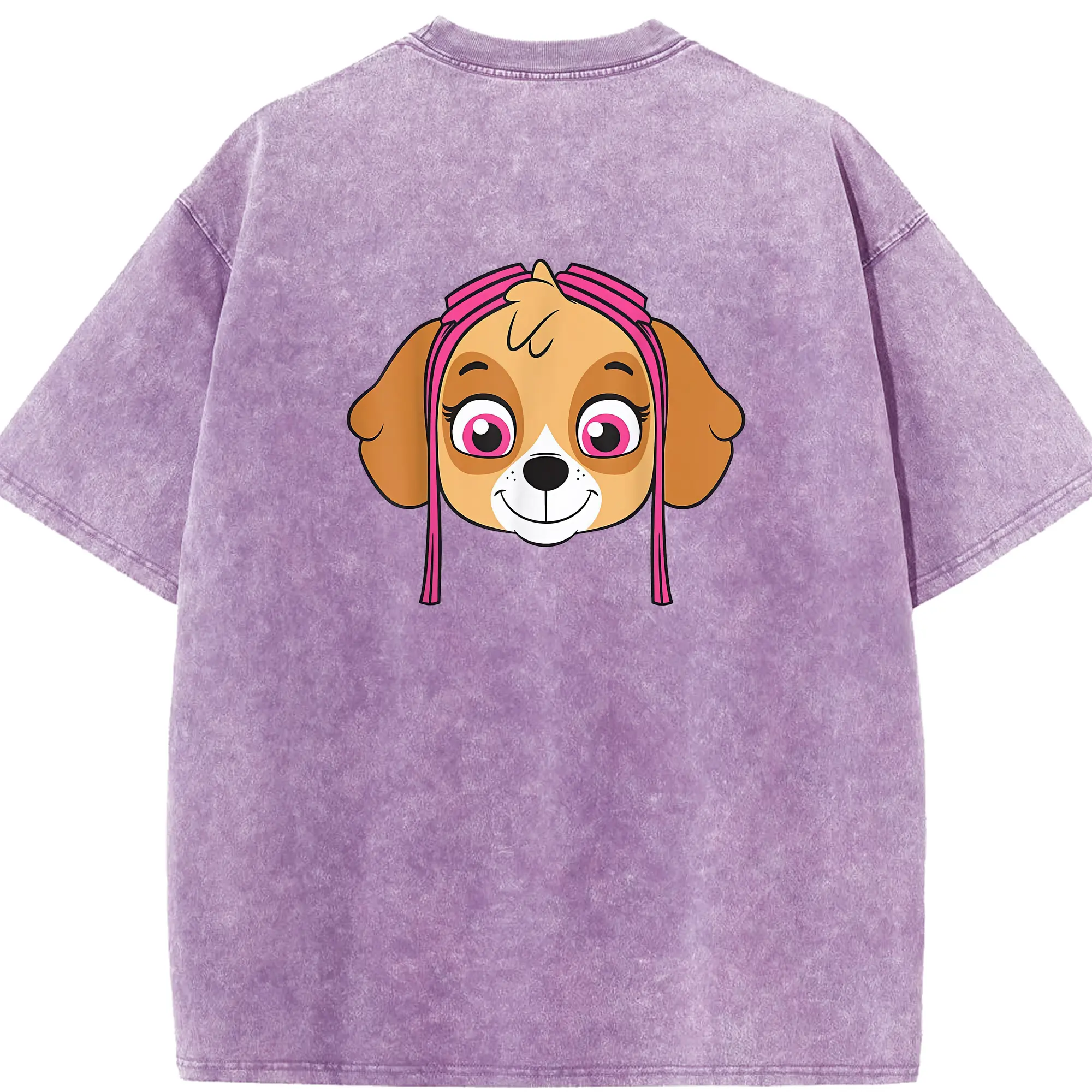 パウ・パトロール グッズ,スカイ - 綿100% ヴィンテージ風 半袖Tシャツ ・ フロントプリント ・ 柔らか肌触り ・ 通気性 快適 ・ スポーツ カジュアル 外出用