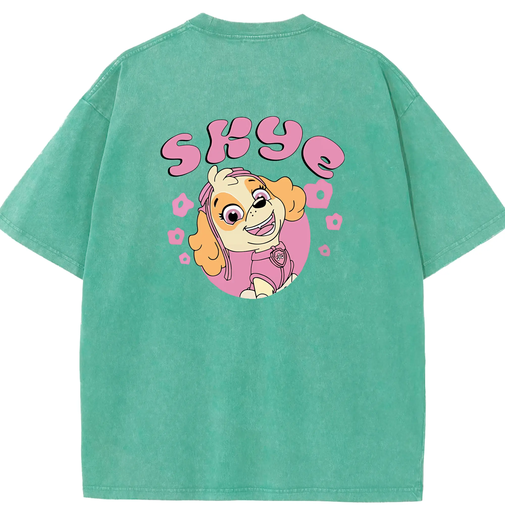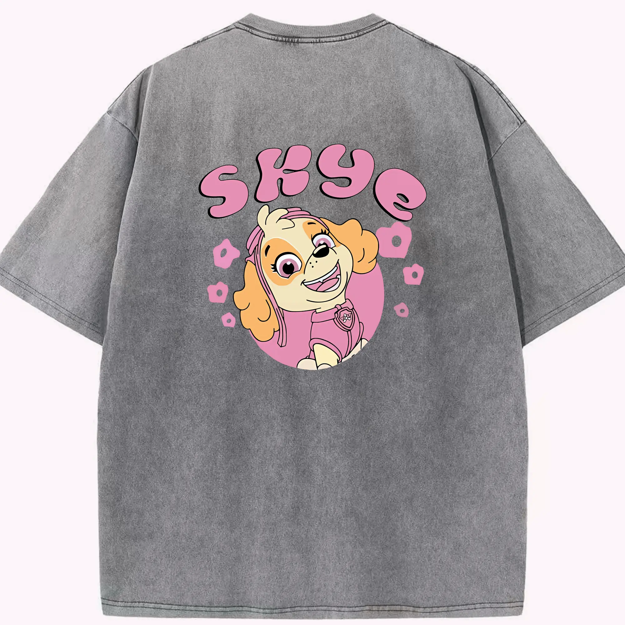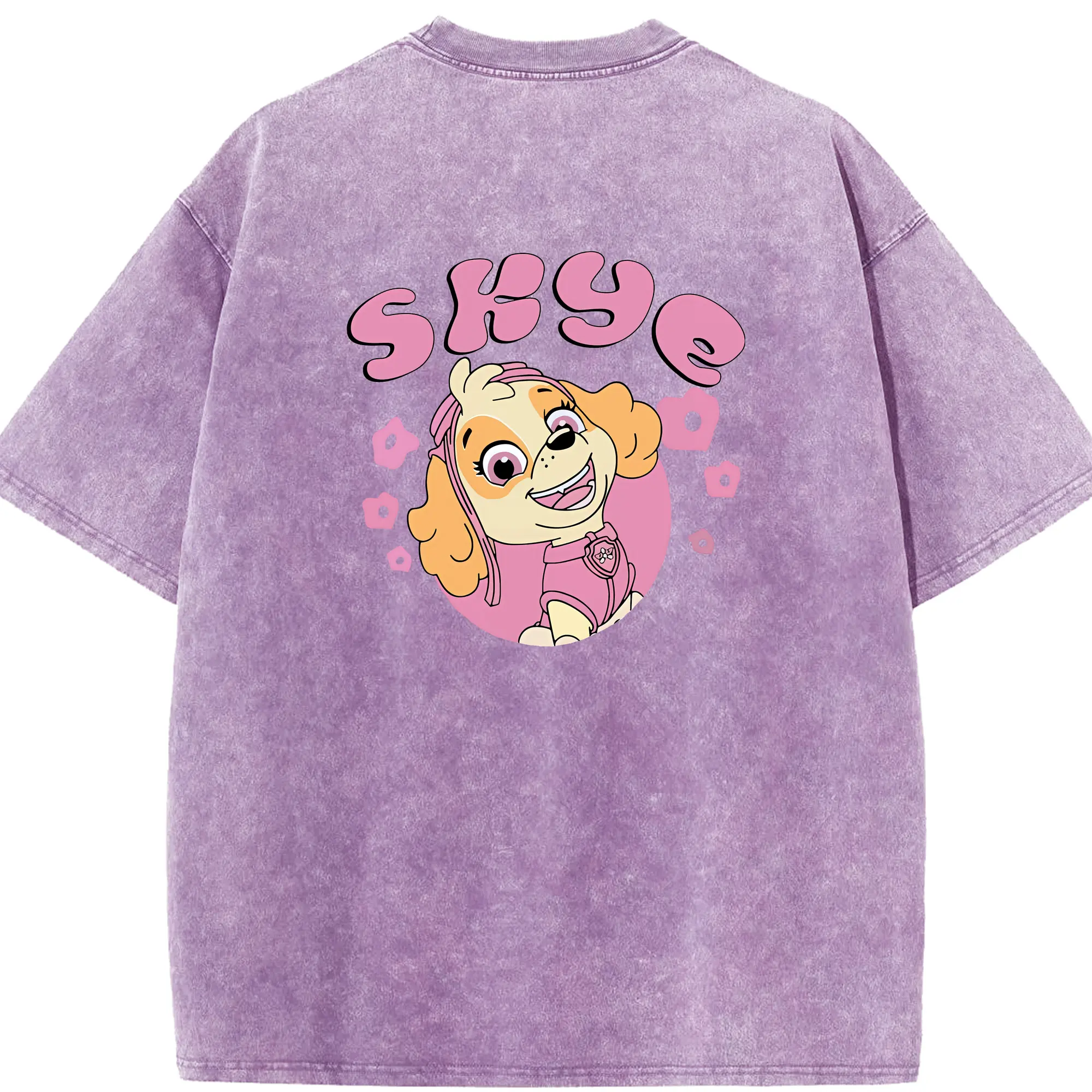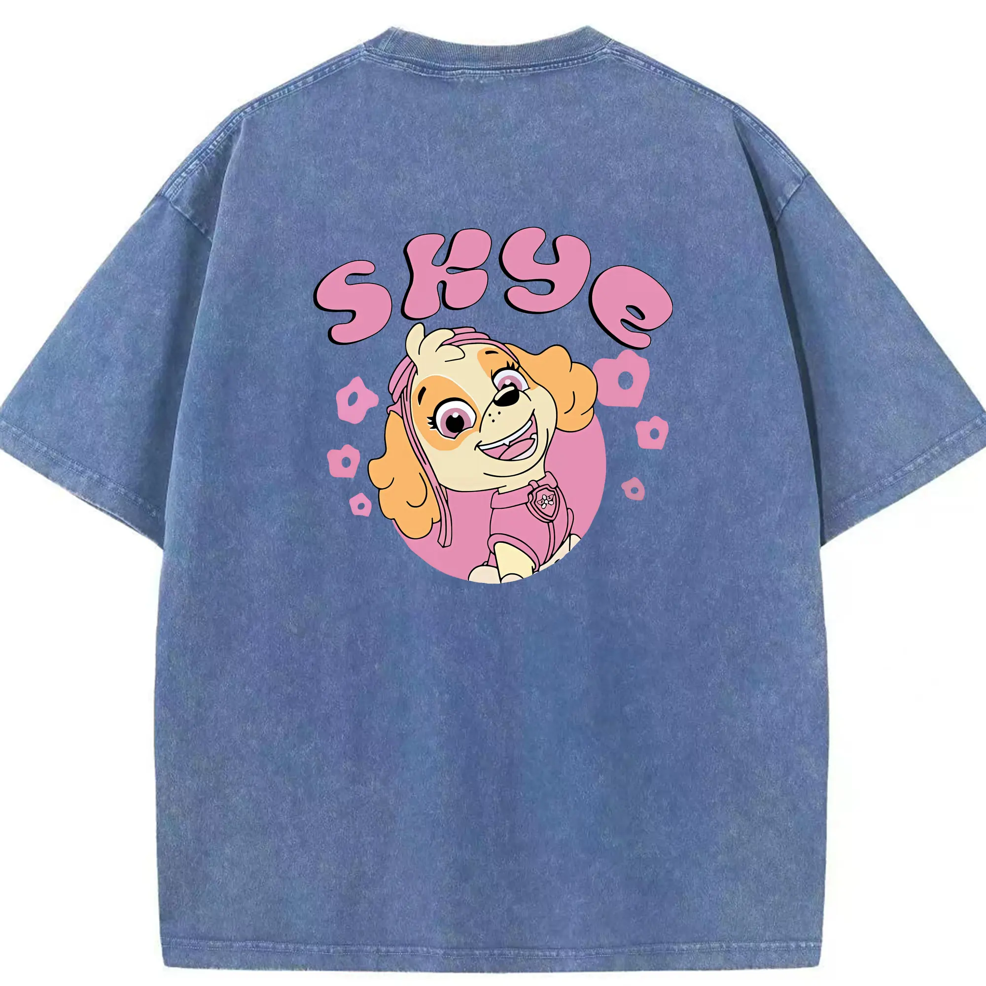 パウ・パトロール グッズ,スカイ - 綿100% ヴィンテージ風 半袖Tシャツ ・ フロントプリント ・ 柔らか肌触り ・ 通気性 快適 ・ スポーツ カジュアル 外出用
