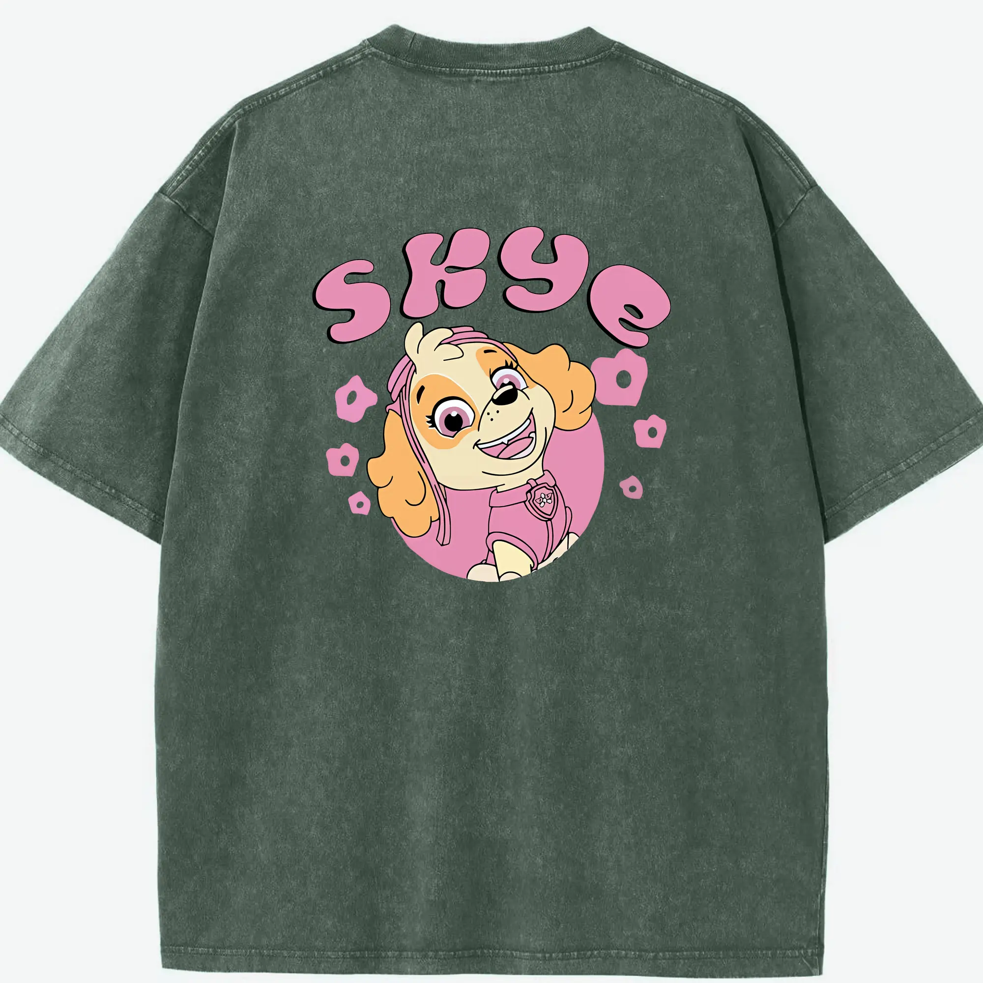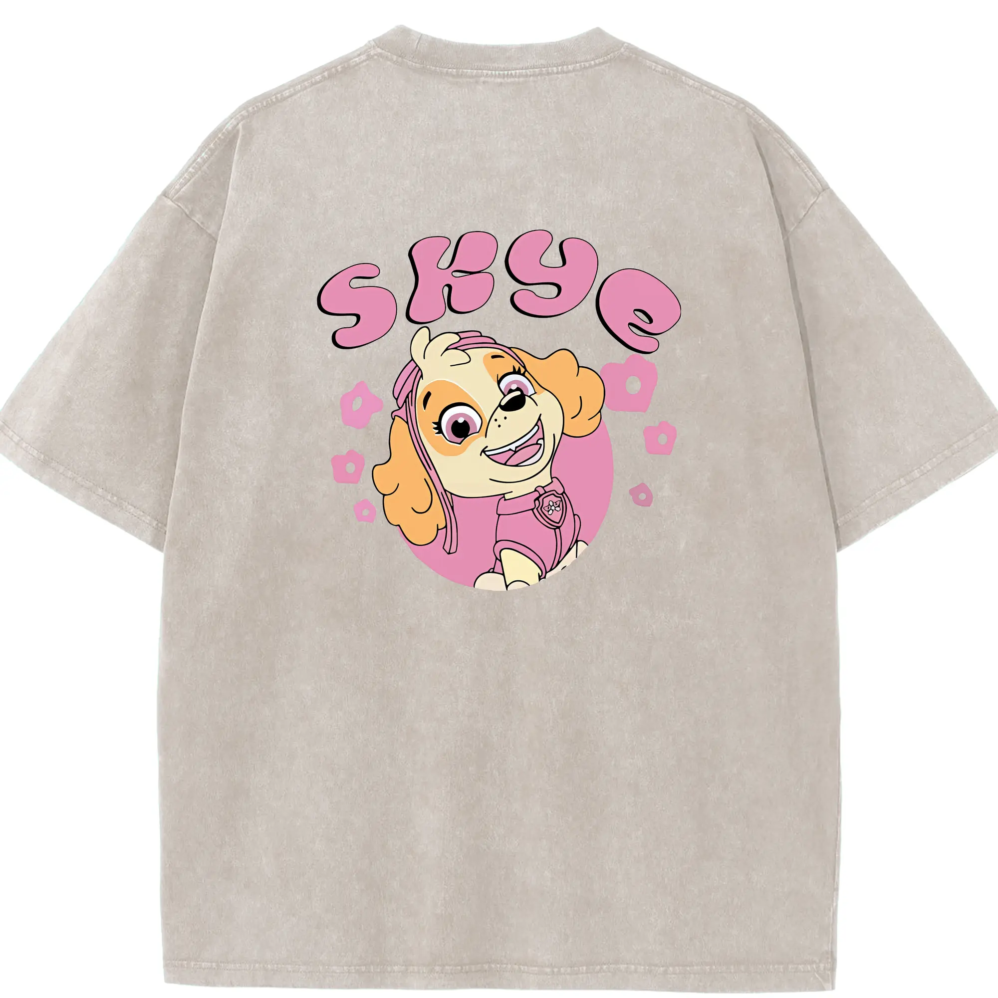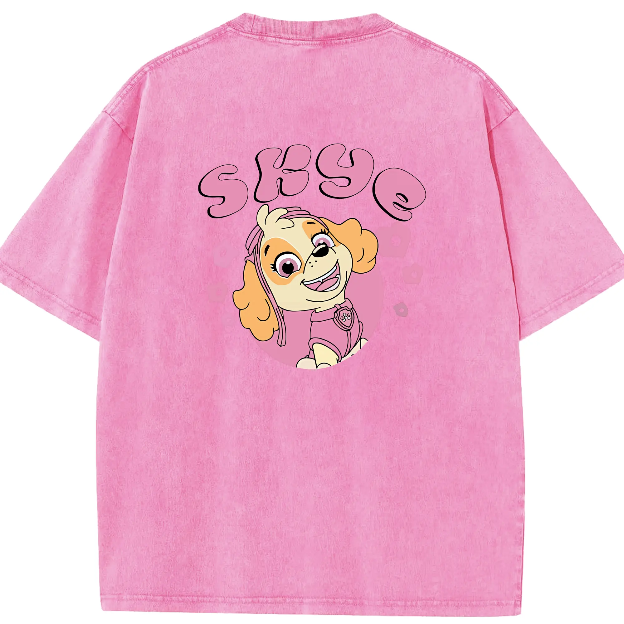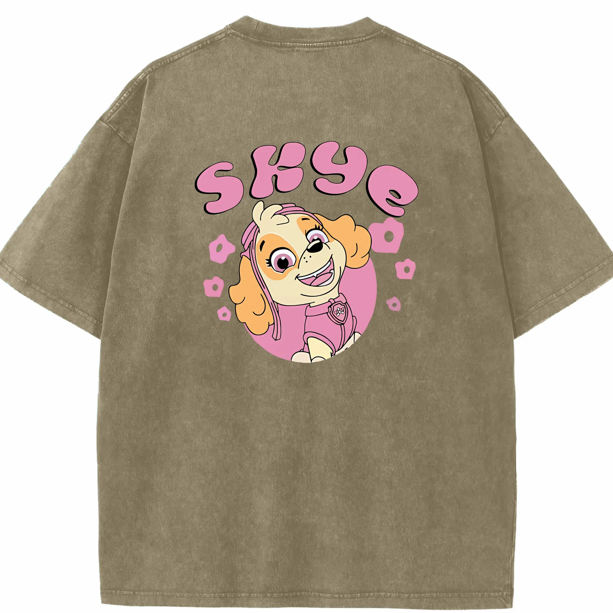 パウ・パトロール グッズ,スカイ - 綿100% ヴィンテージ風 半袖Tシャツ ・ フロントプリント ・ 柔らか肌触り ・ 通気性 快適 ・ スポーツ カジュアル 外出用