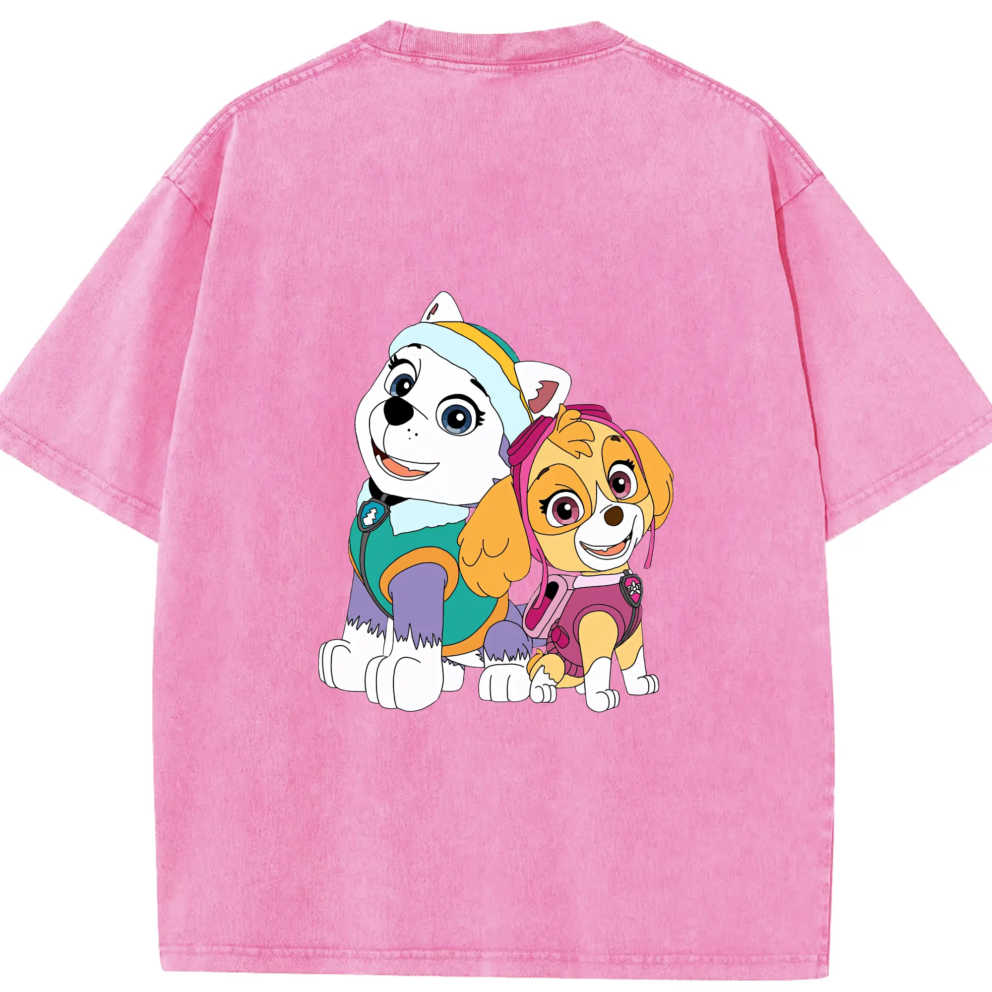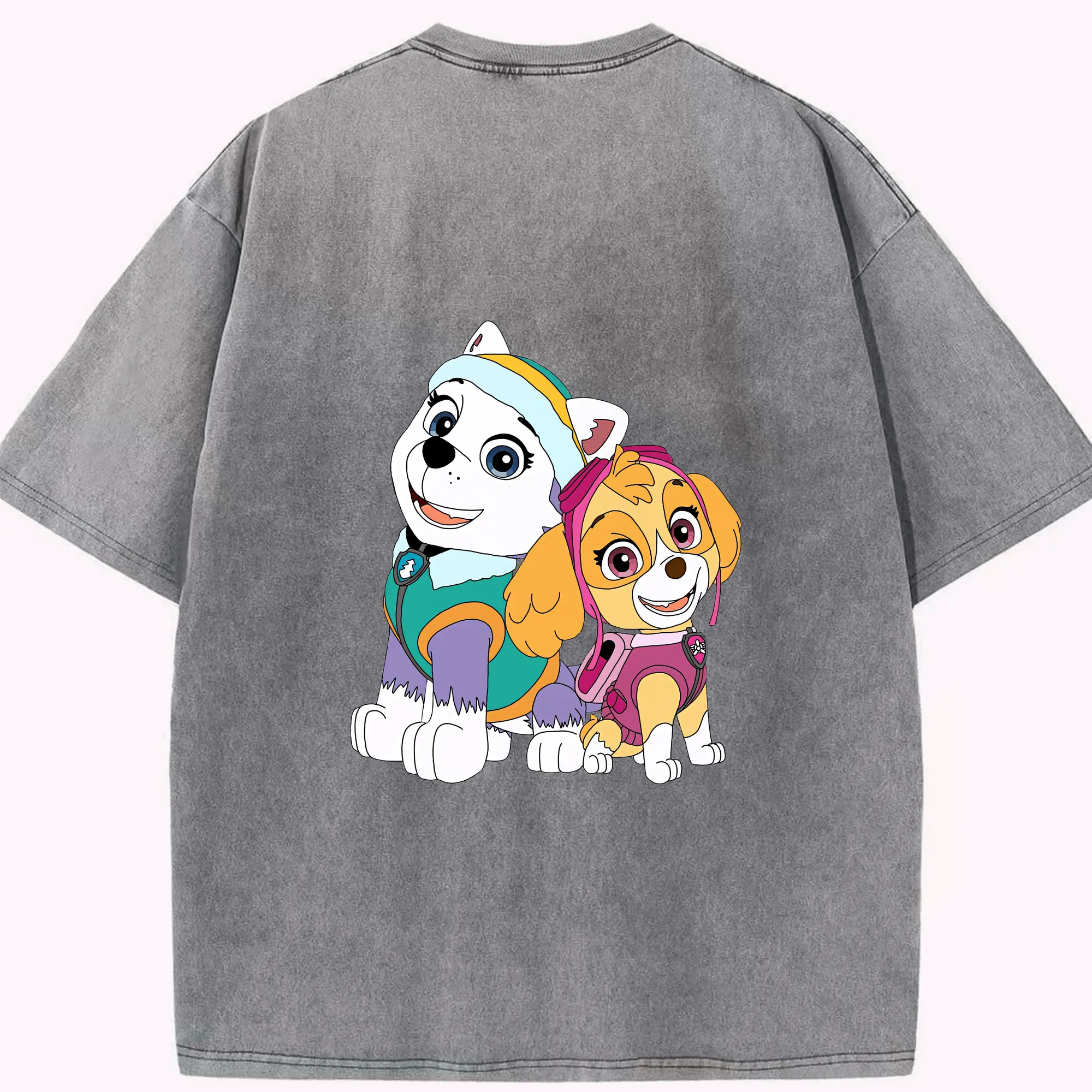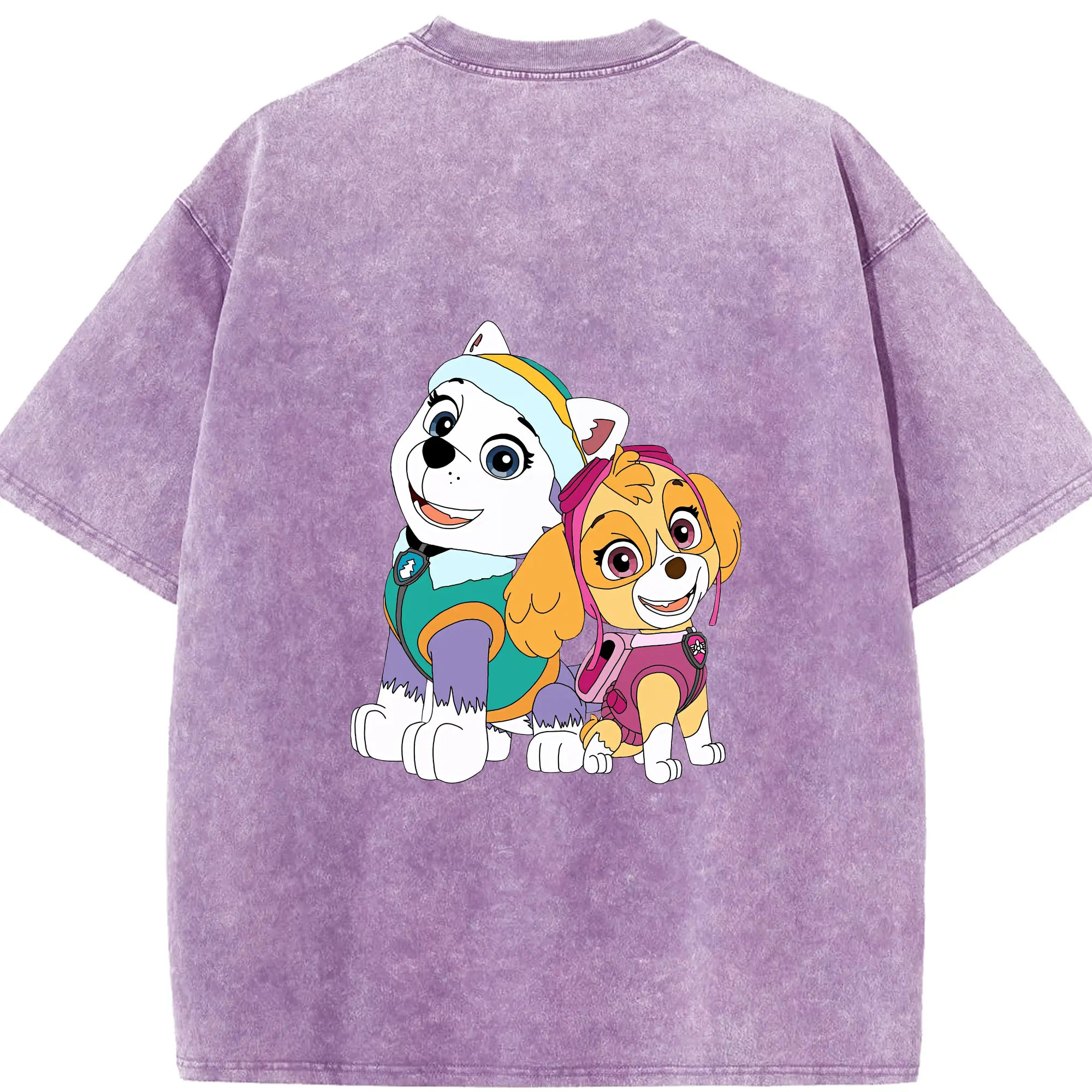 パウ・パトロール グッズ,スカイ - 綿100% ヴィンテージ風 半袖Tシャツ ・ フロントプリント ・ 柔らか肌触り ・ 通気性 快適 ・ スポーツ カジュアル 外出用