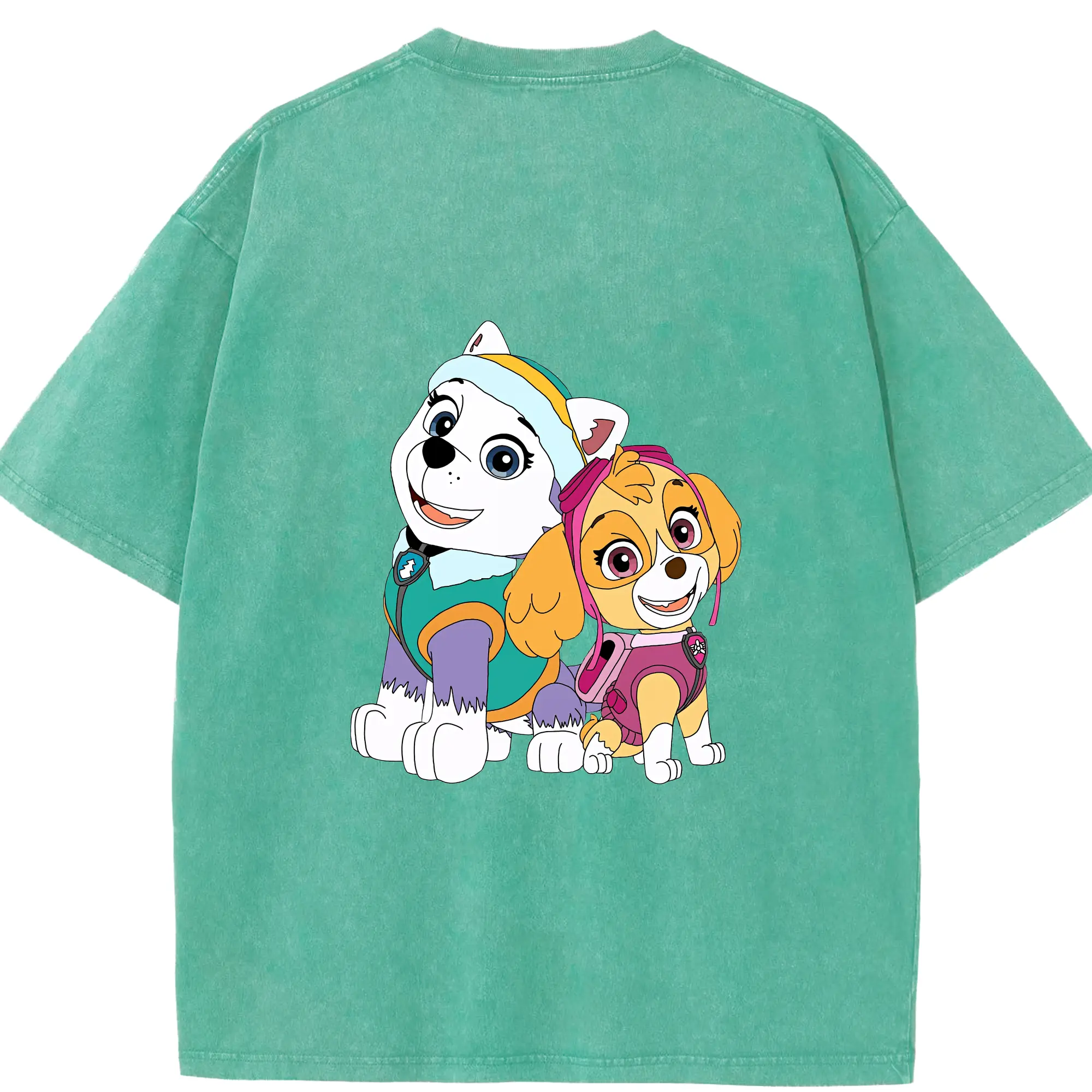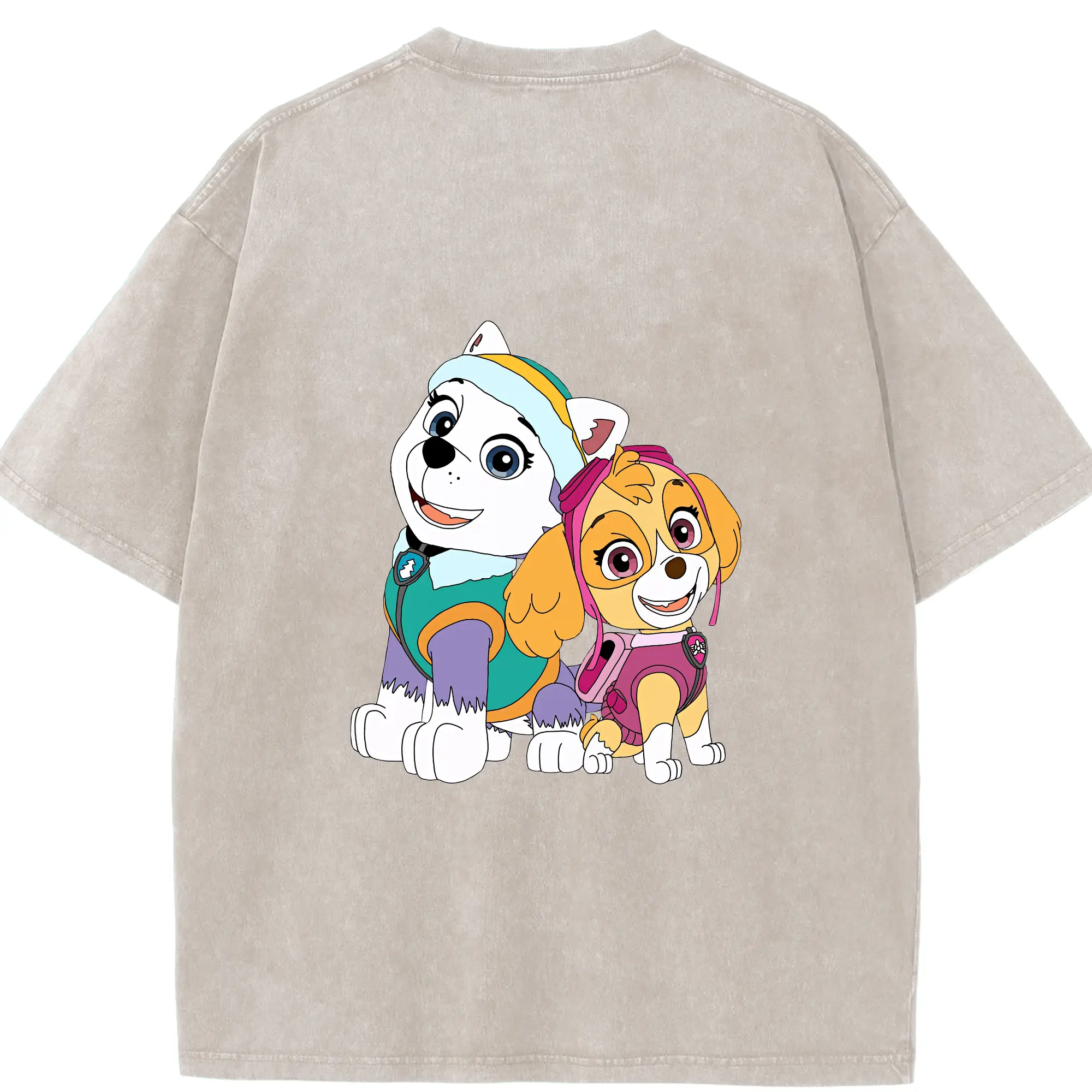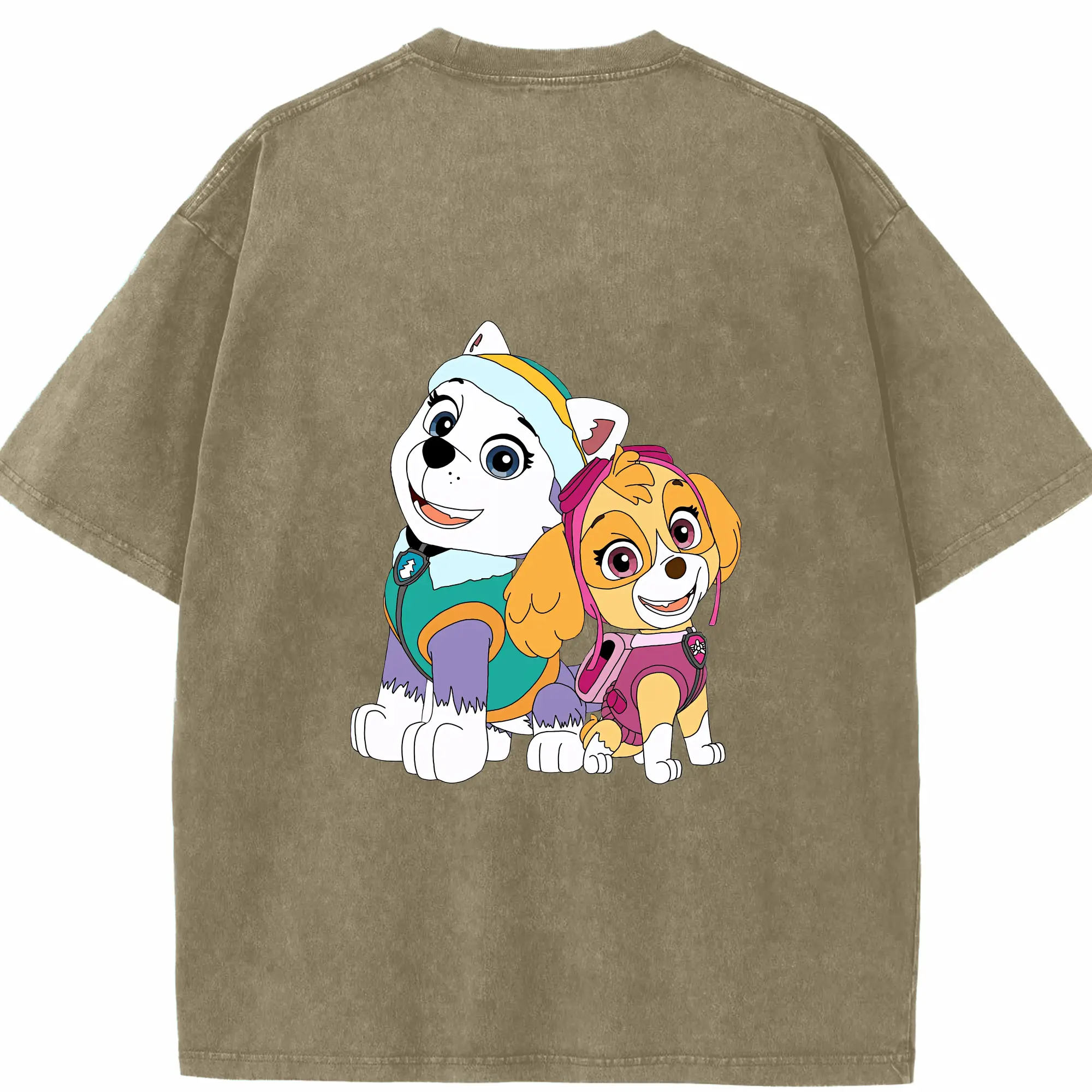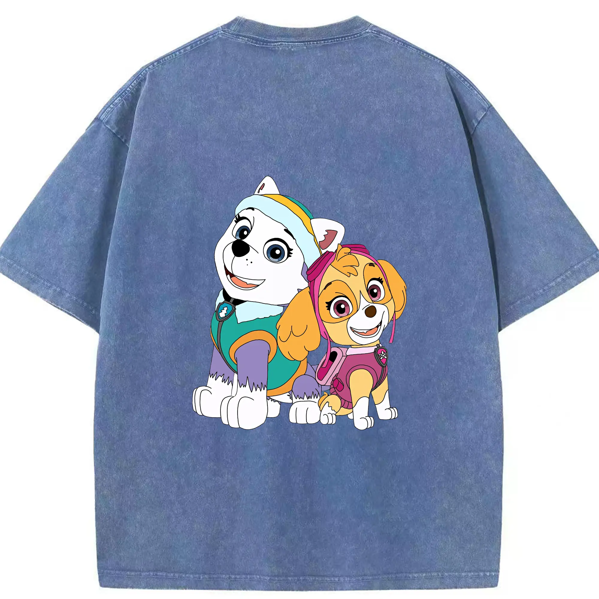パウ・パトロール グッズ,スカイ - 綿100% ヴィンテージ風 半袖Tシャツ ・ フロントプリント ・ 柔らか肌触り ・ 通気性 快適 ・ スポーツ カジュアル 外出用