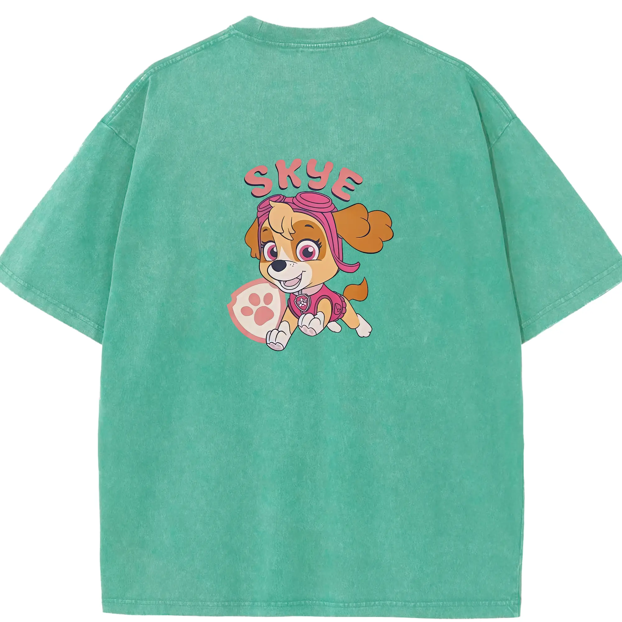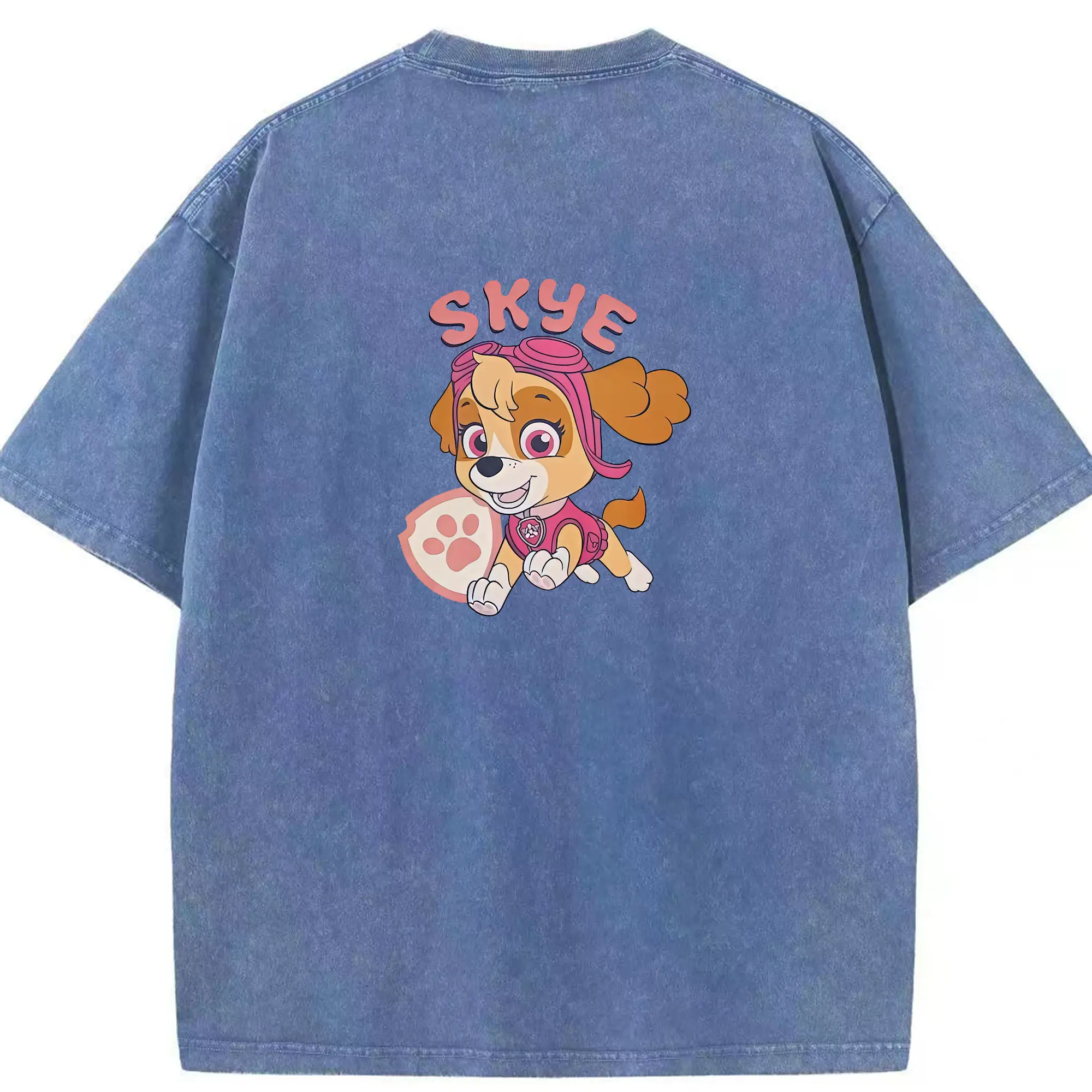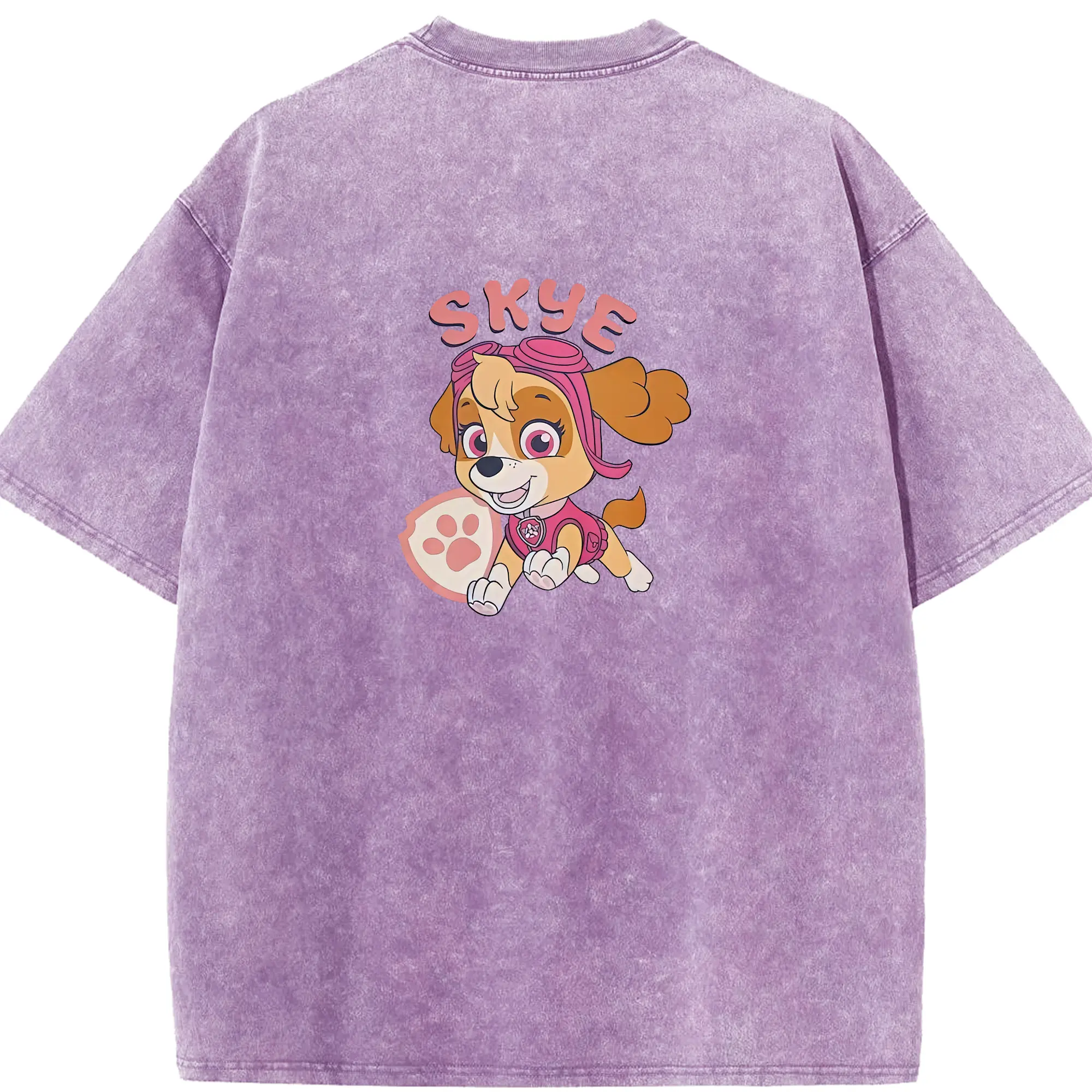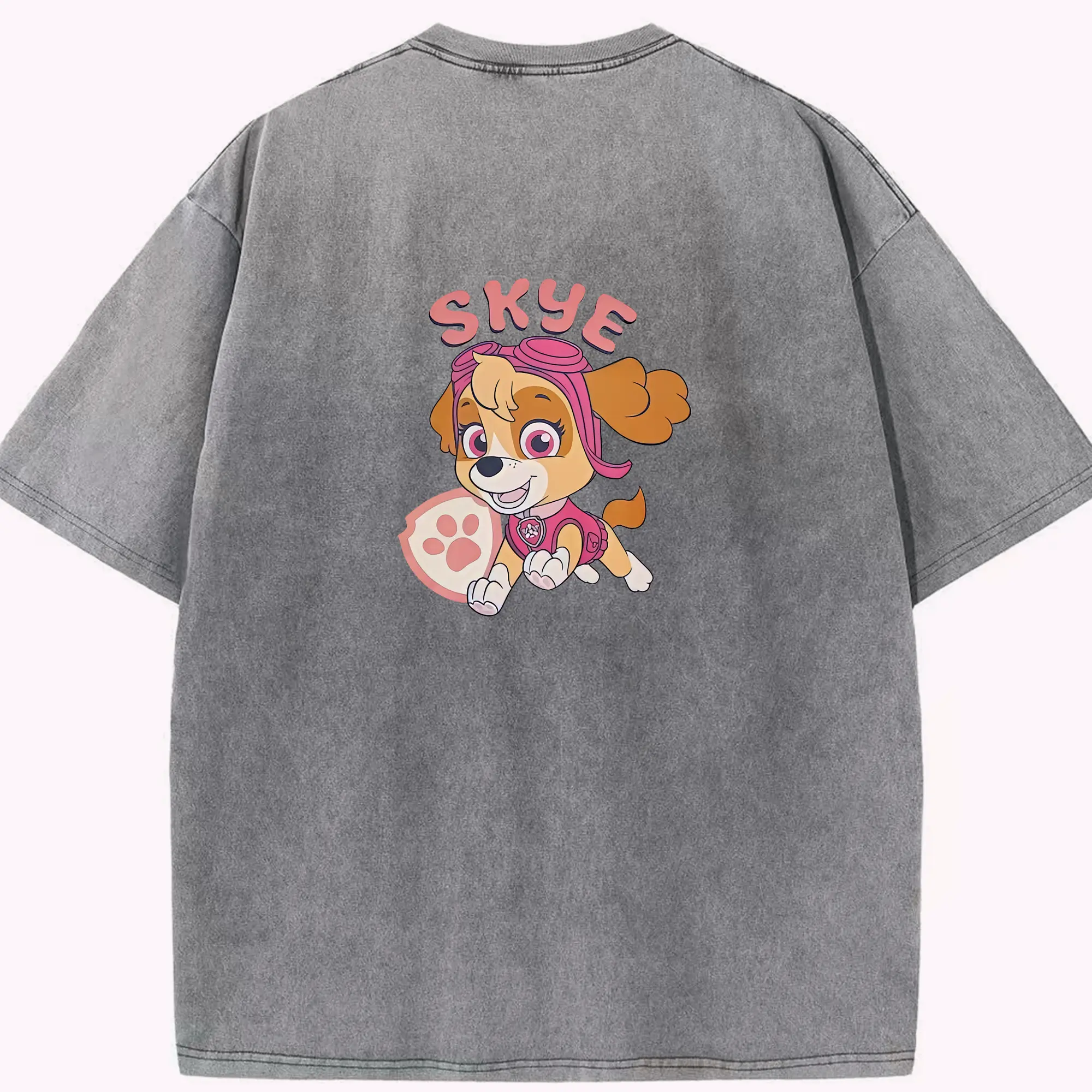 パウ・パトロール グッズ,スカイ - 綿100% ヴィンテージ風 半袖Tシャツ ・ フロントプリント ・ 柔らか肌触り ・ 通気性 快適 ・ スポーツ カジュアル 外出用