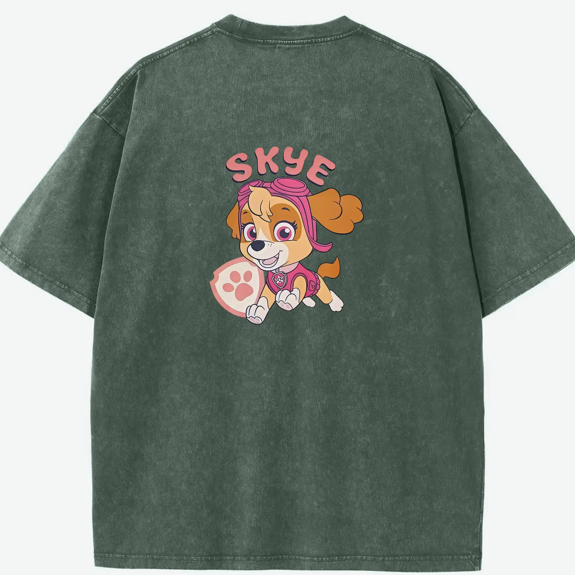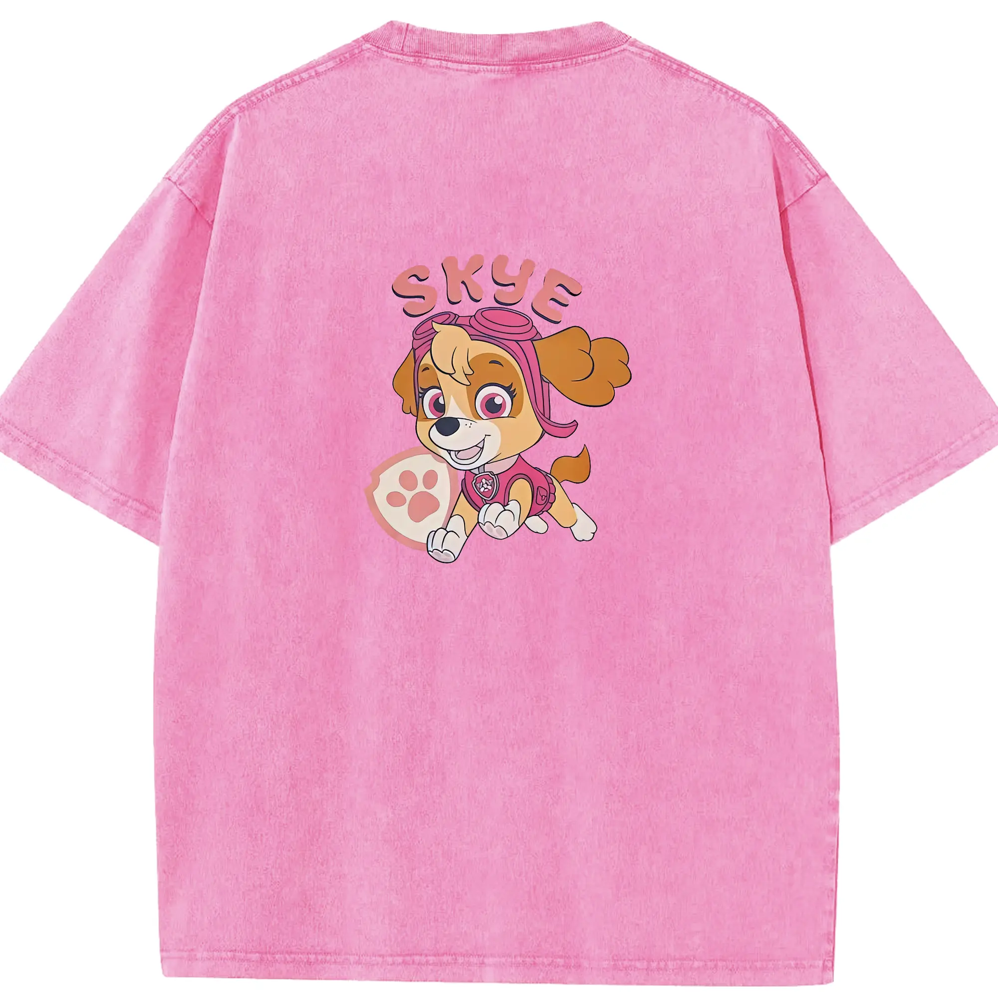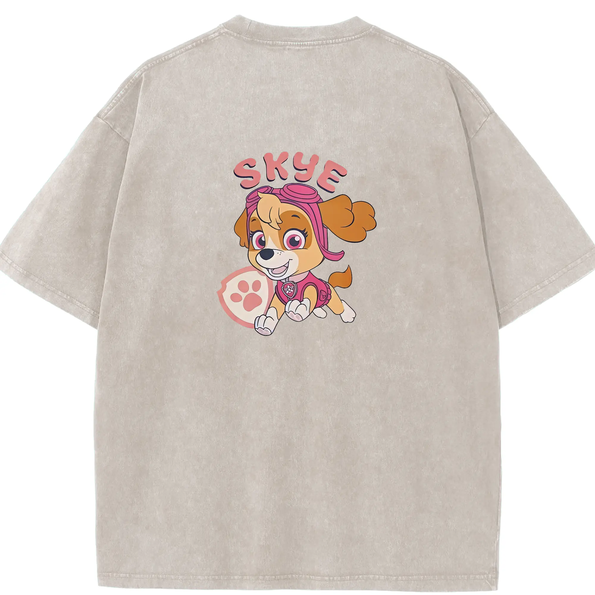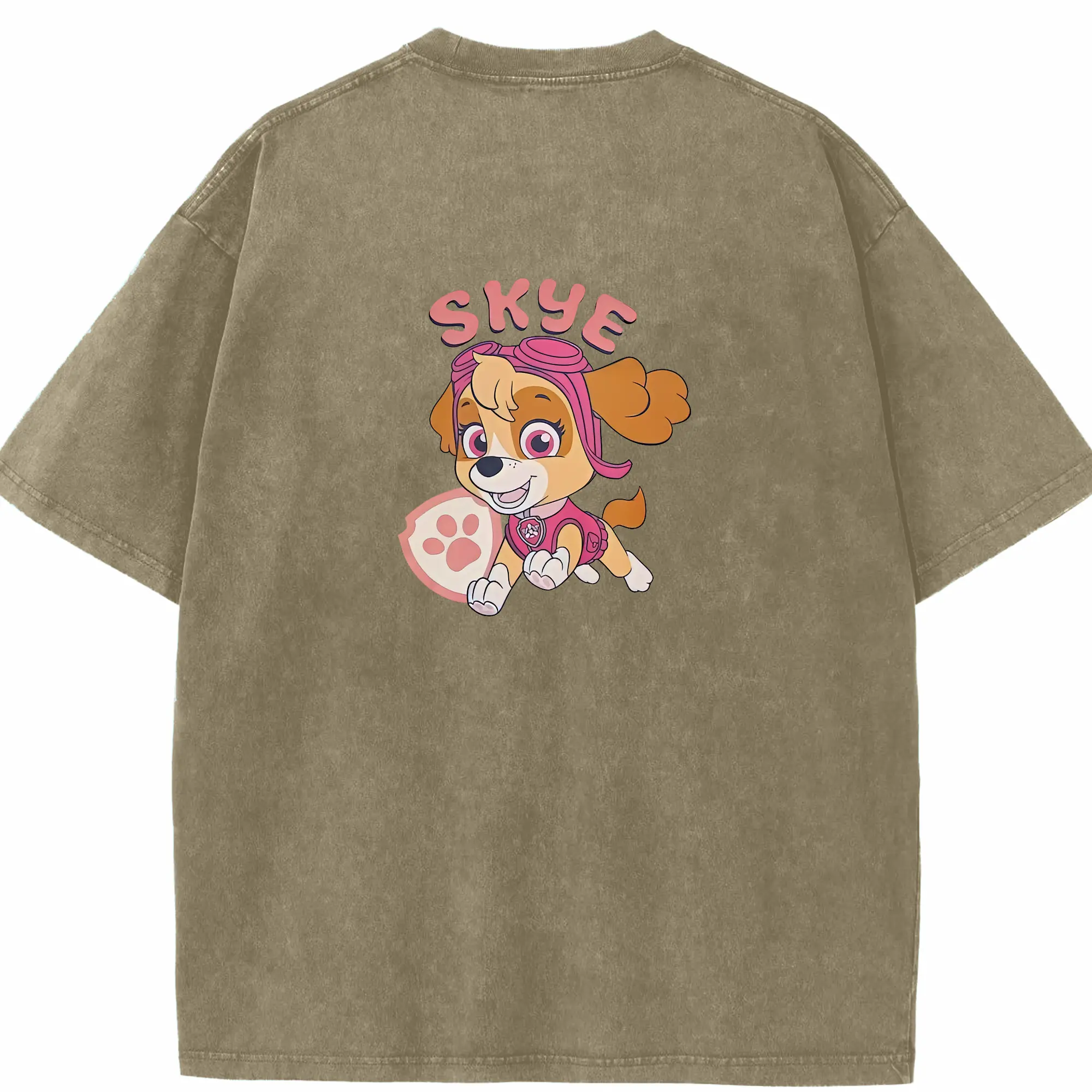 パウ・パトロール グッズ,スカイ - 綿100% ヴィンテージ風 半袖Tシャツ ・ フロントプリント ・ 柔らか肌触り ・ 通気性 快適 ・ スポーツ カジュアル 外出用