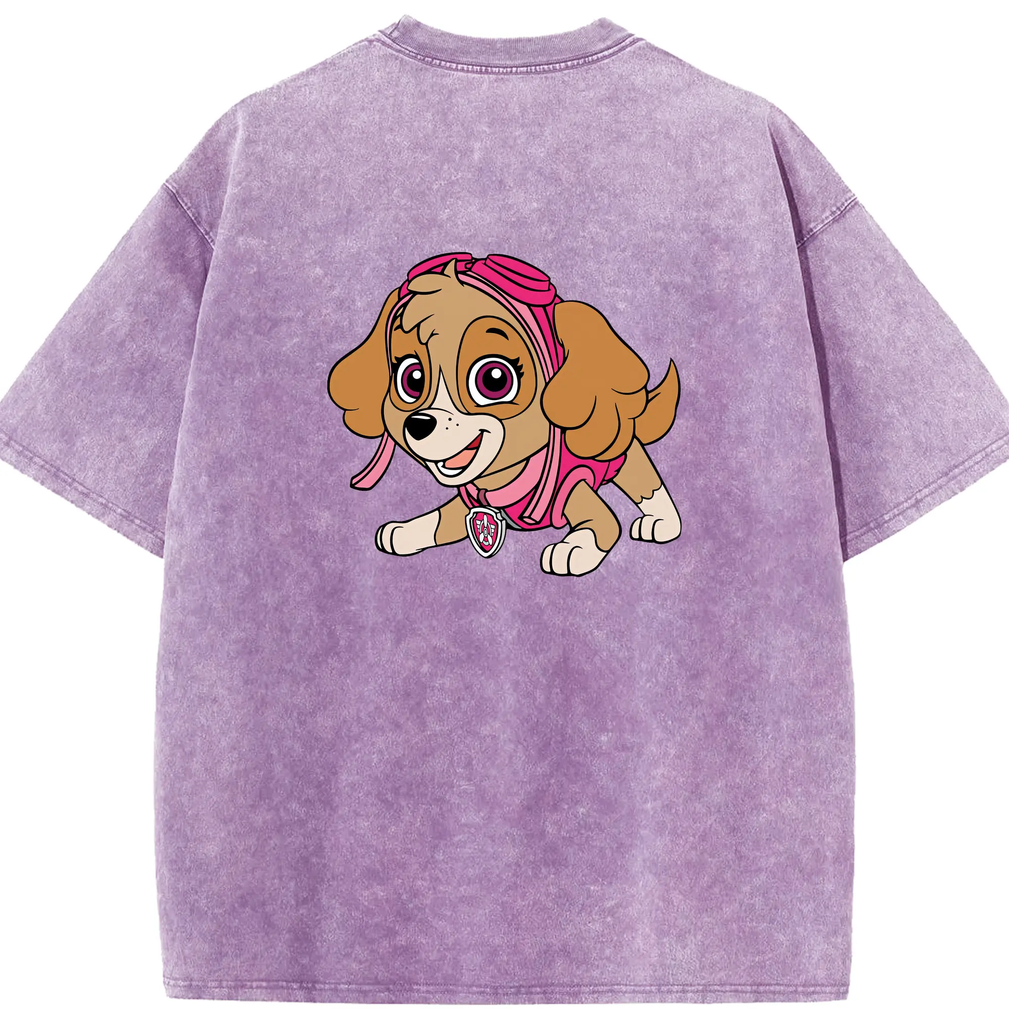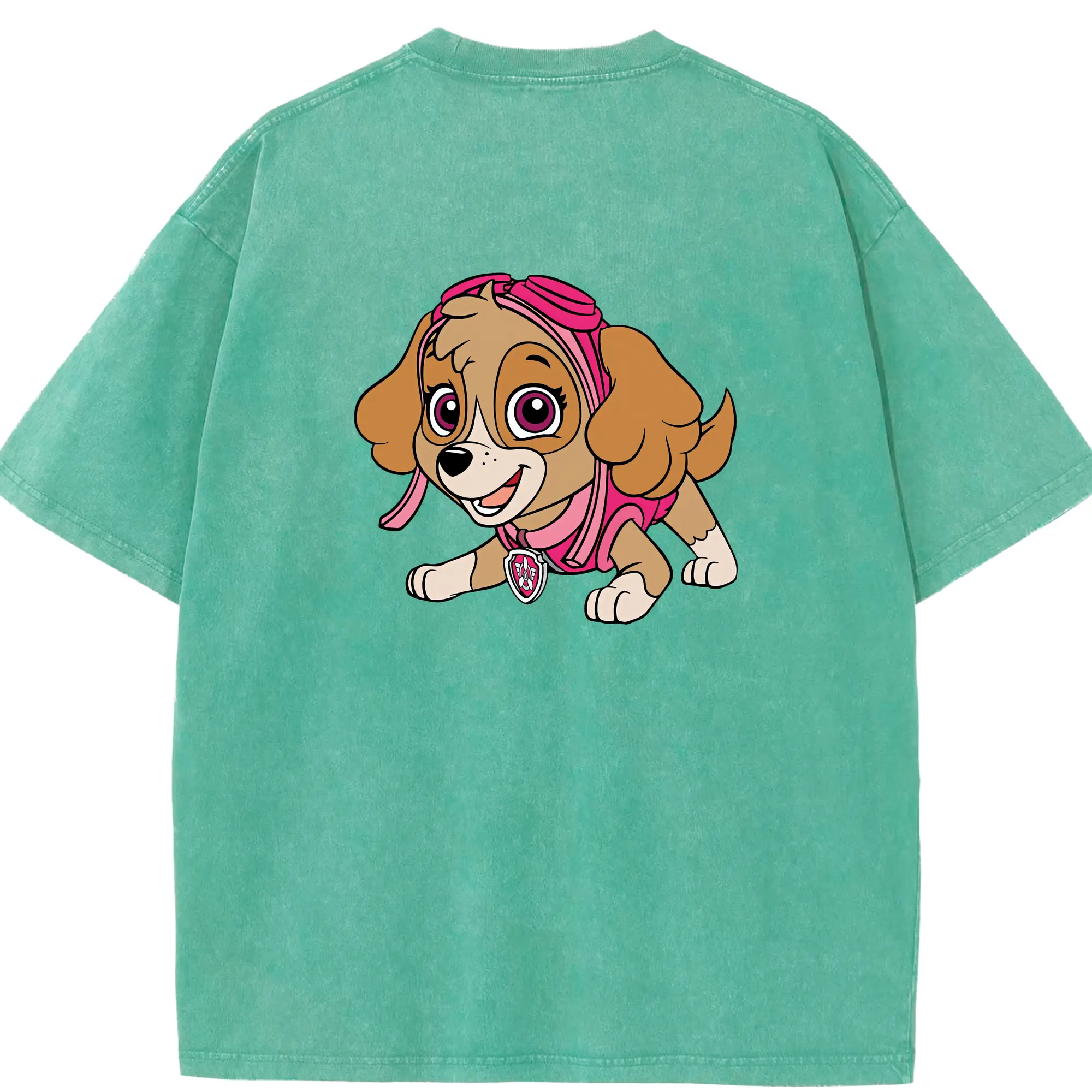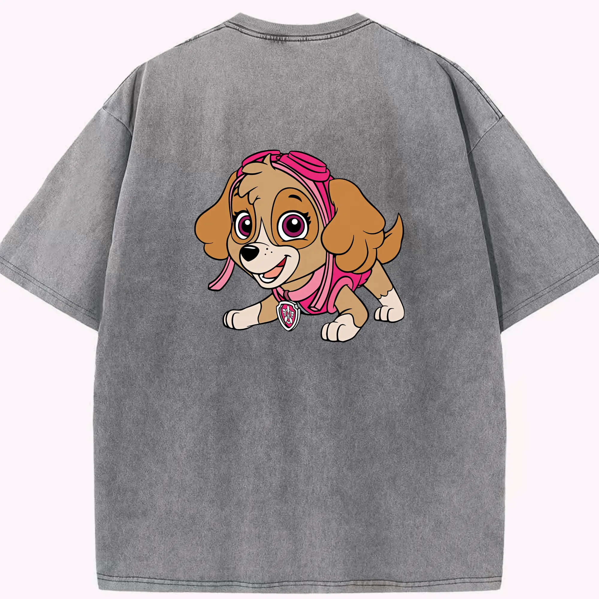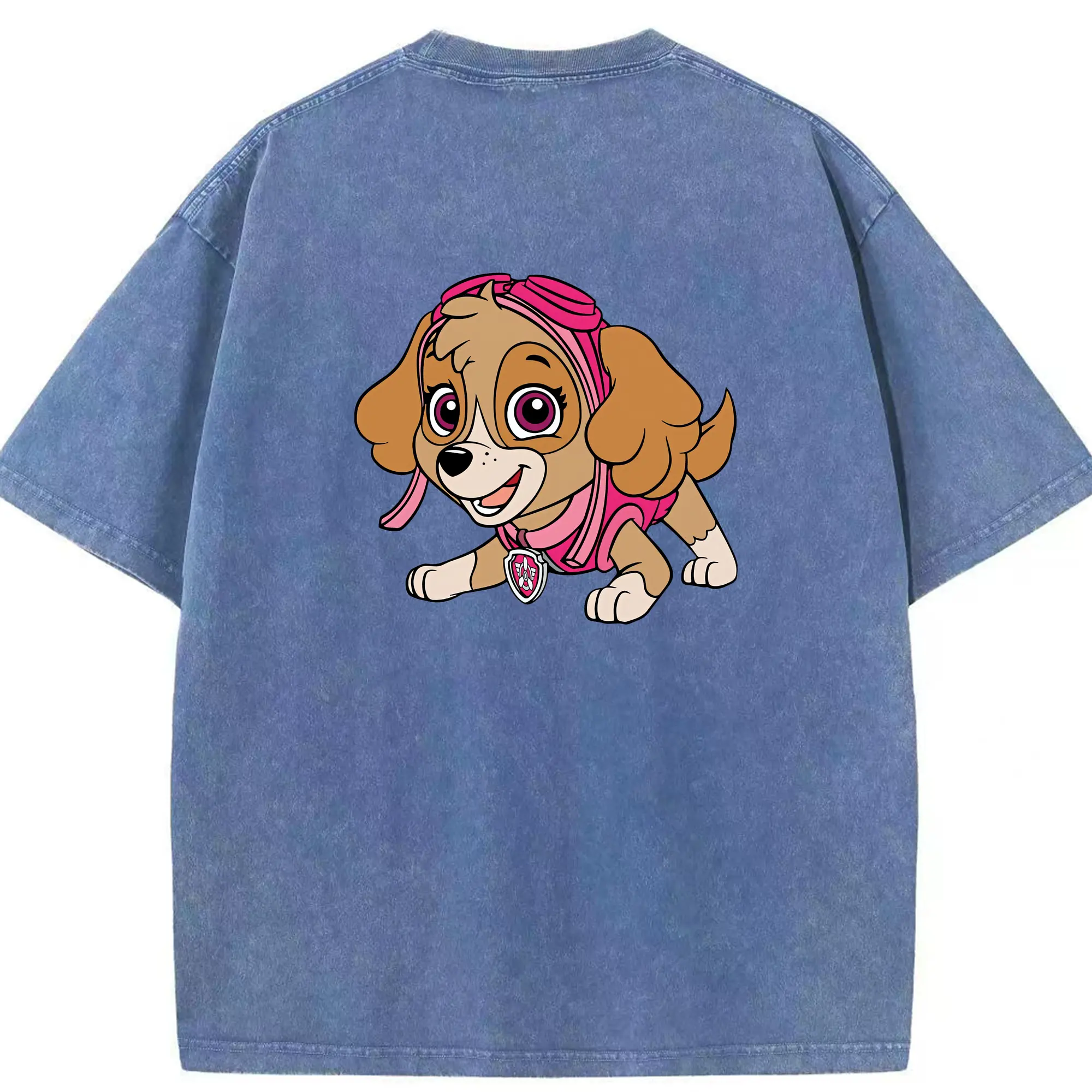 パウ・パトロール グッズ,スカイ - 綿100% ヴィンテージ風 半袖Tシャツ ・ フロントプリント ・ 柔らか肌触り ・ 通気性 快適 ・ スポーツ カジュアル 外出用