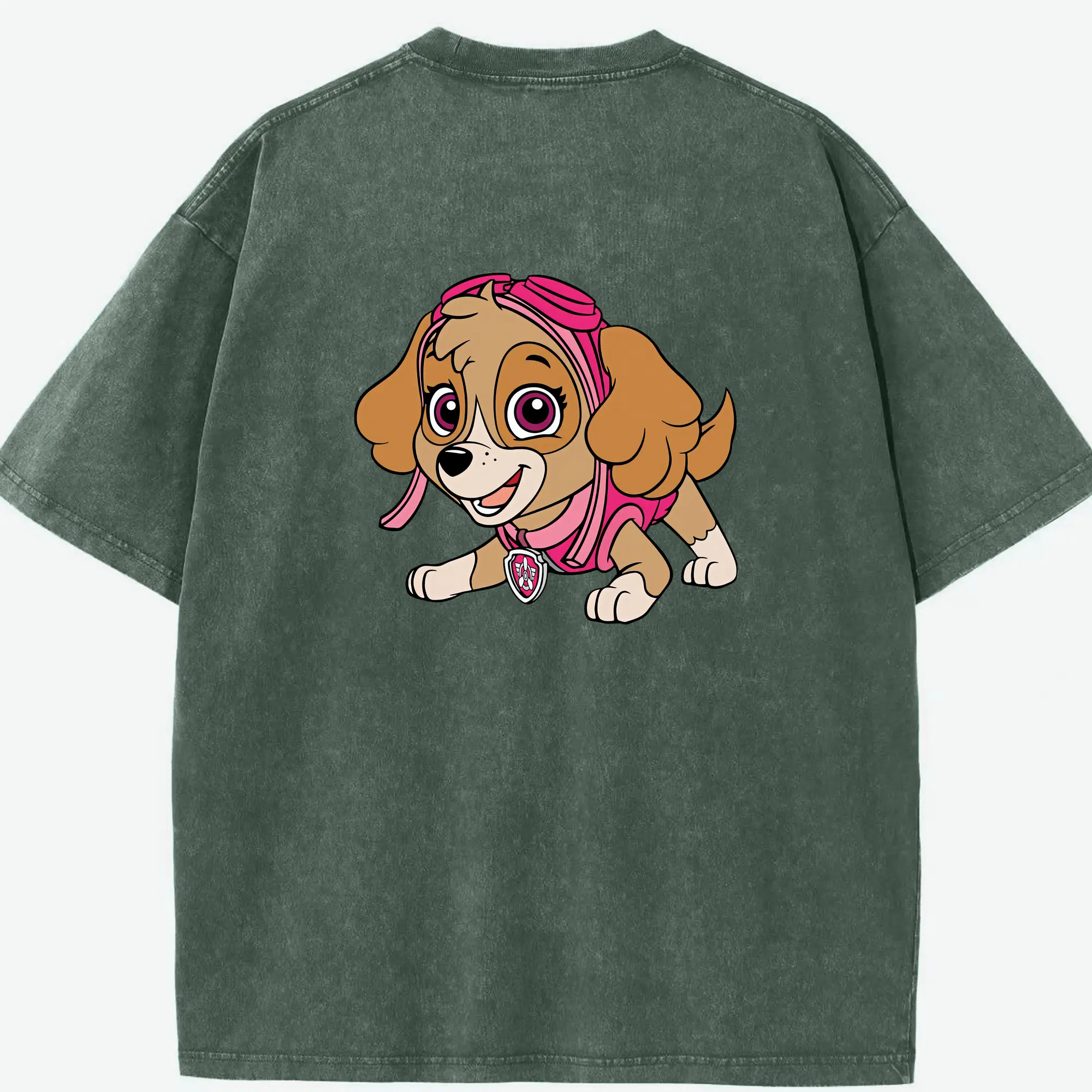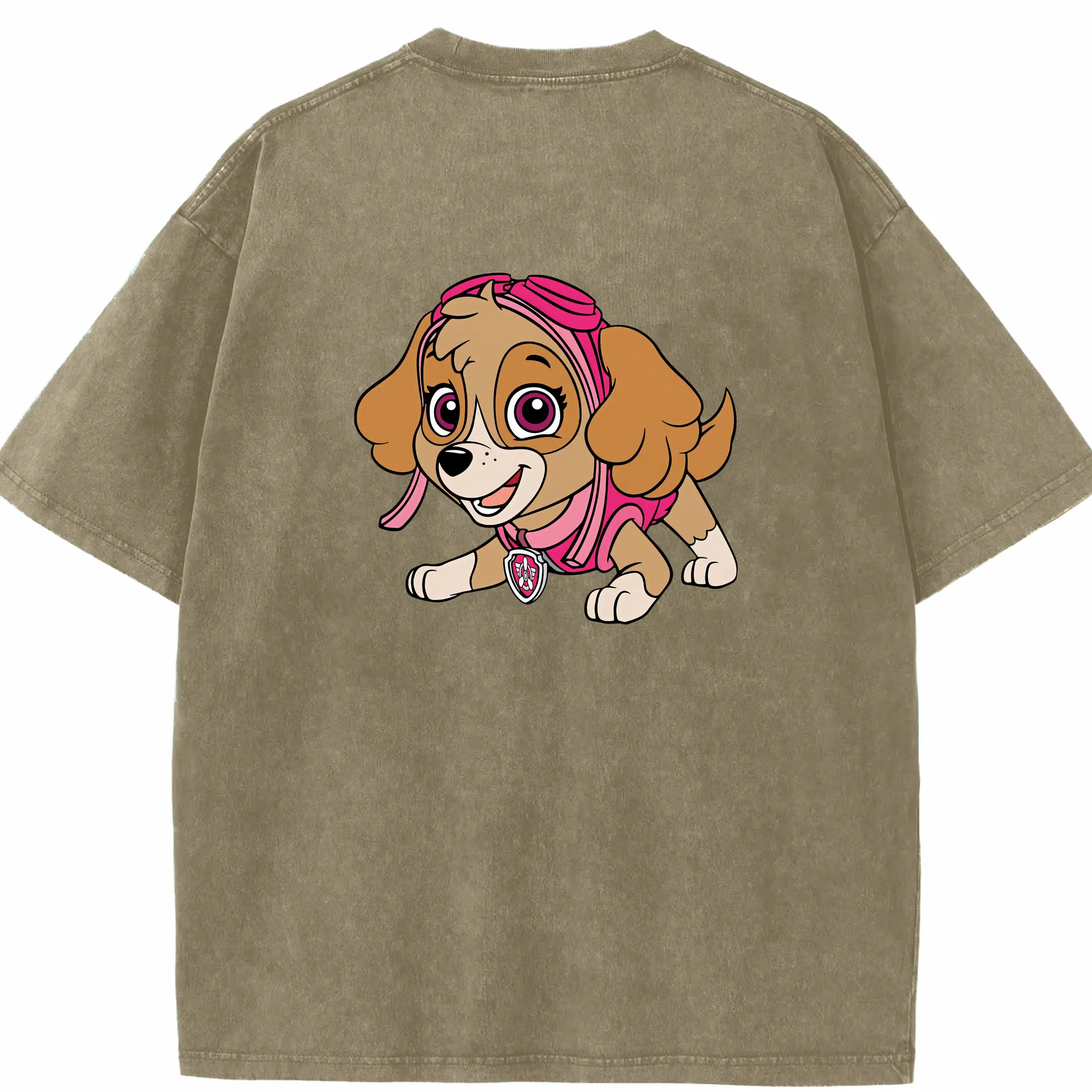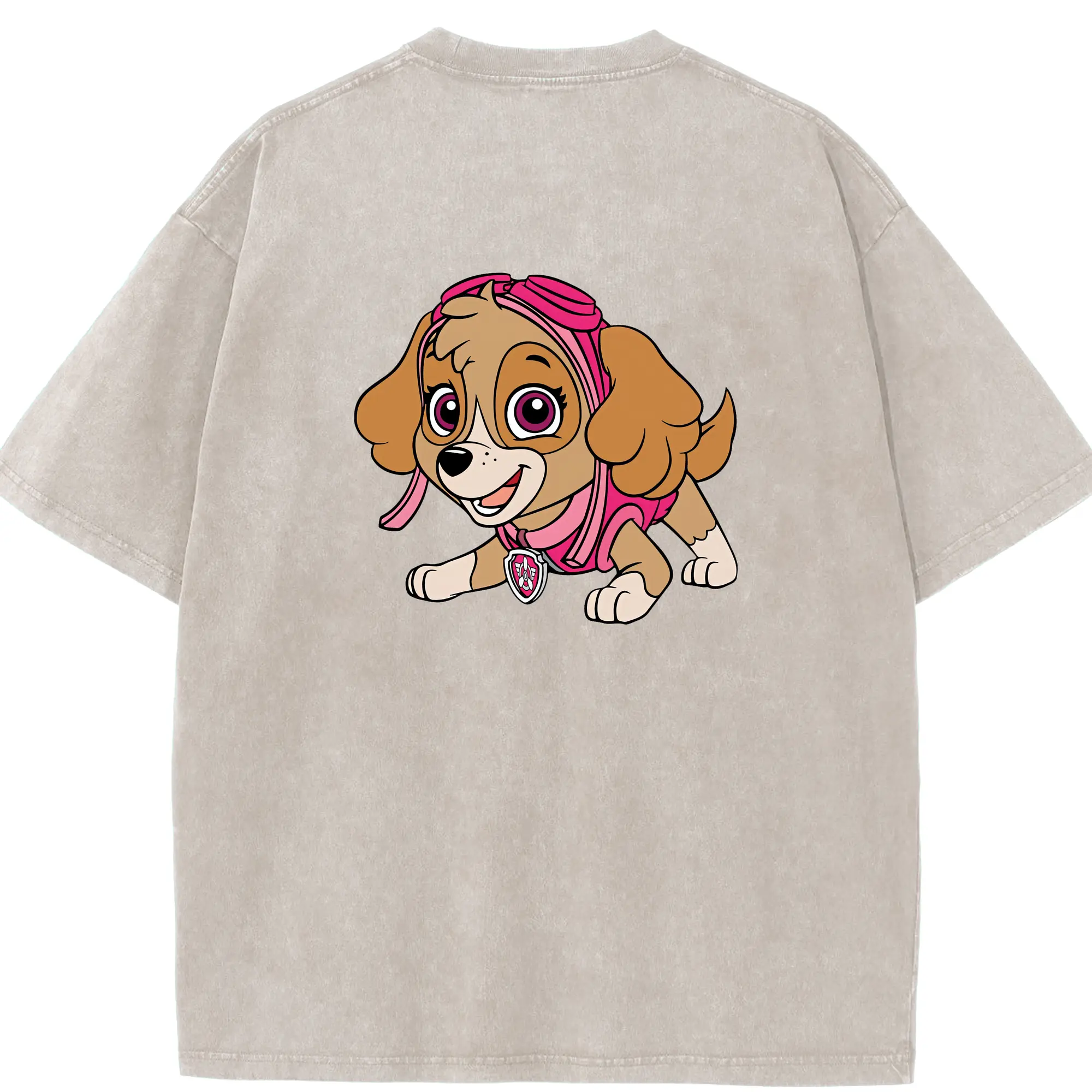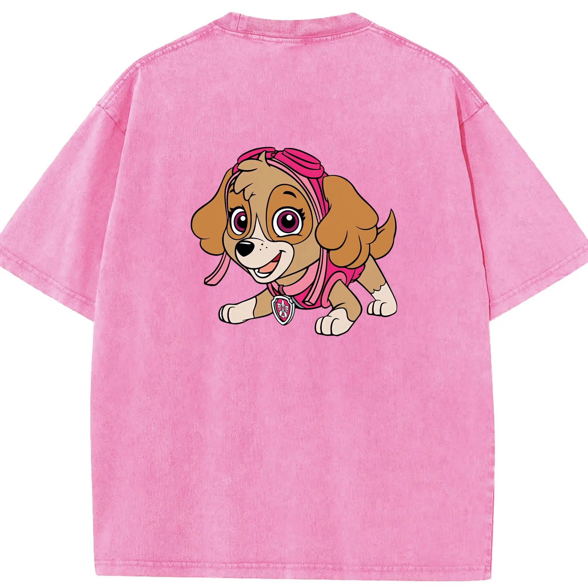 パウ・パトロール グッズ,スカイ - 綿100% ヴィンテージ風 半袖Tシャツ ・ フロントプリント ・ 柔らか肌触り ・ 通気性 快適 ・ スポーツ カジュアル 外出用
