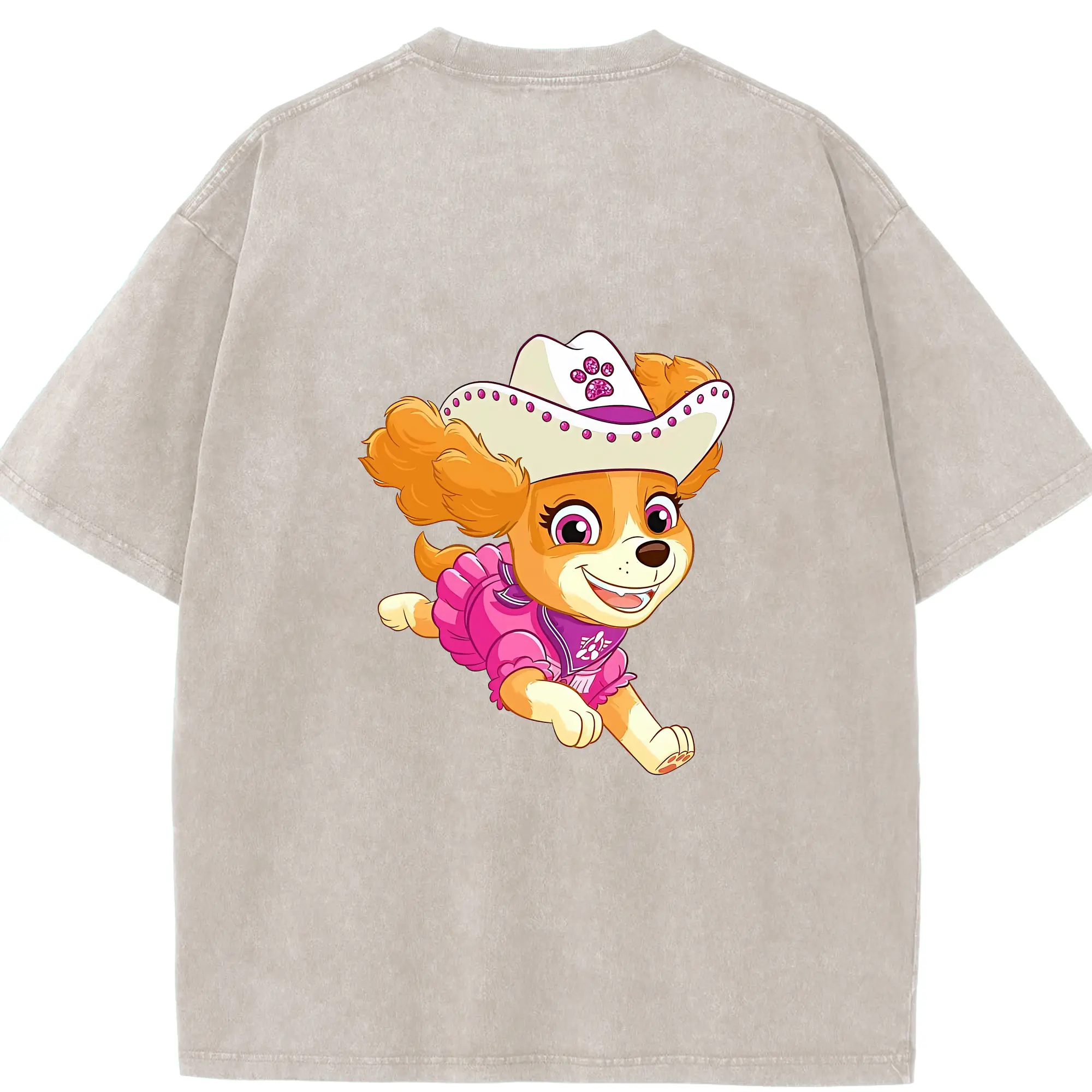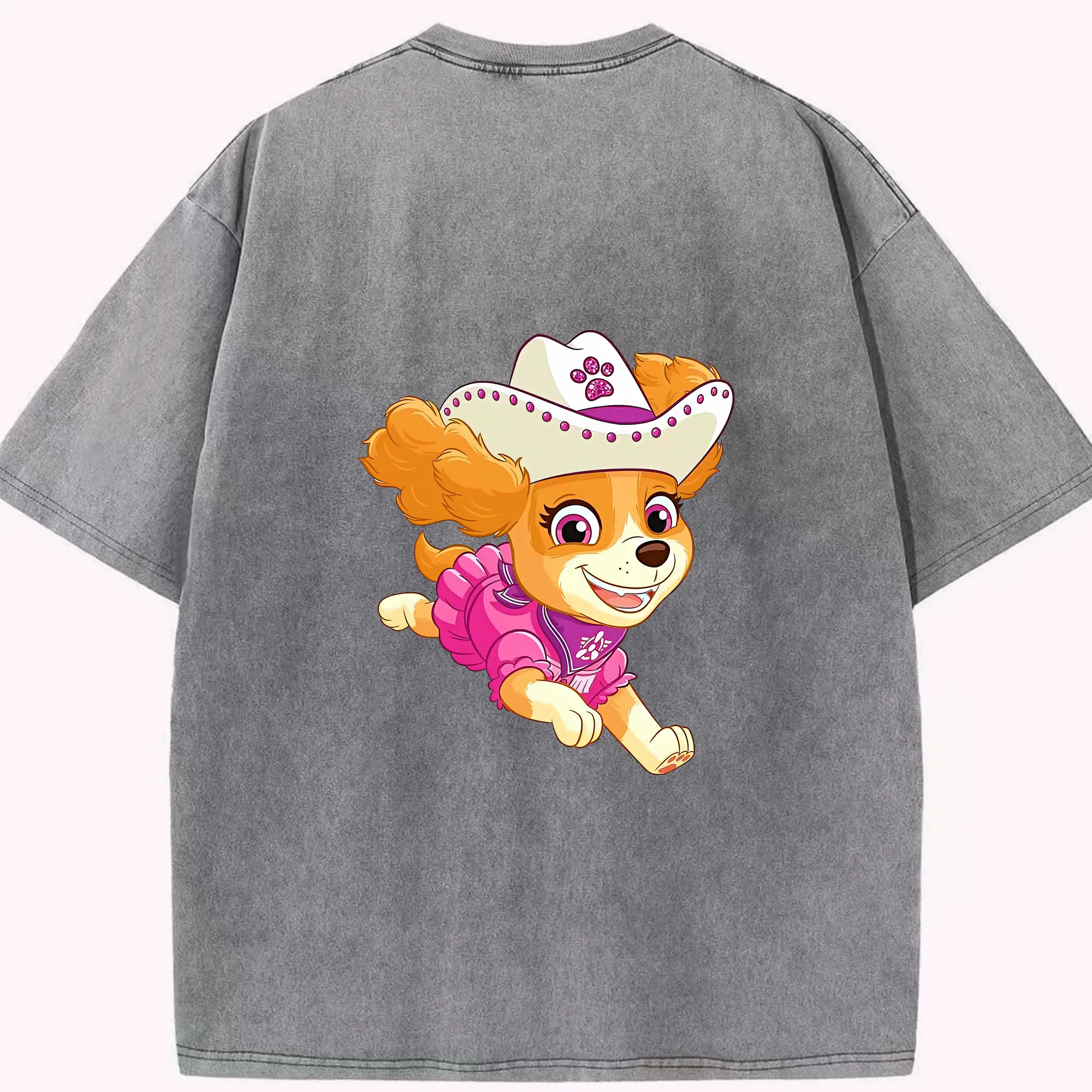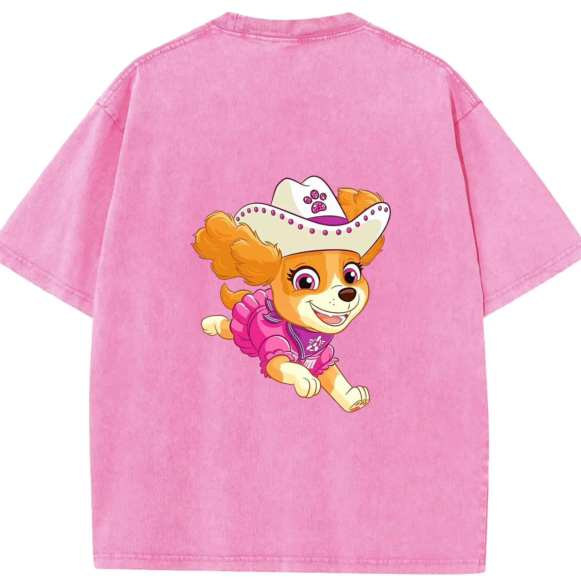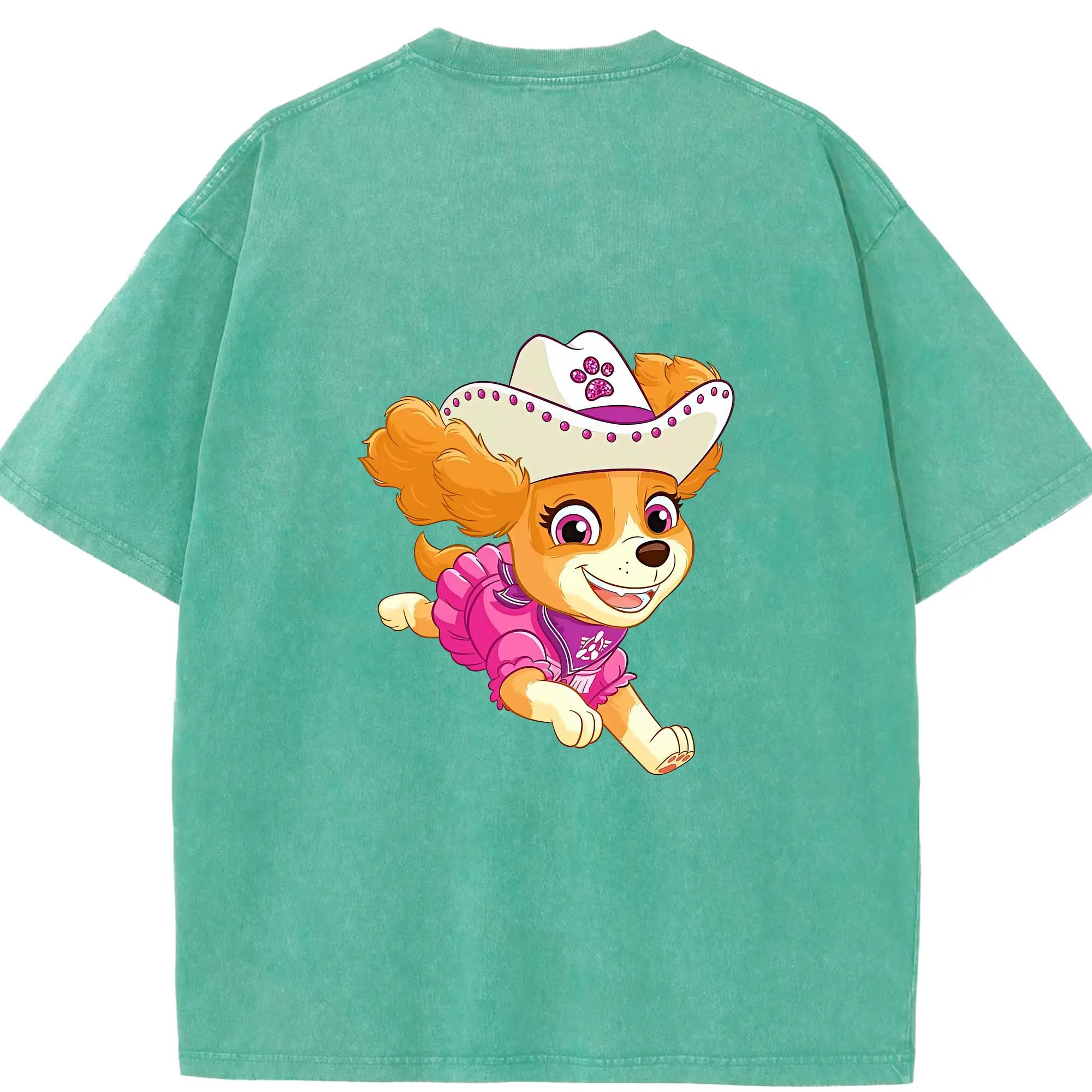 パウ・パトロール グッズ,スカイ - 綿100% ヴィンテージ風 半袖Tシャツ ・ フロントプリント ・ 柔らか肌触り ・ 通気性 快適 ・ スポーツ カジュアル 外出用