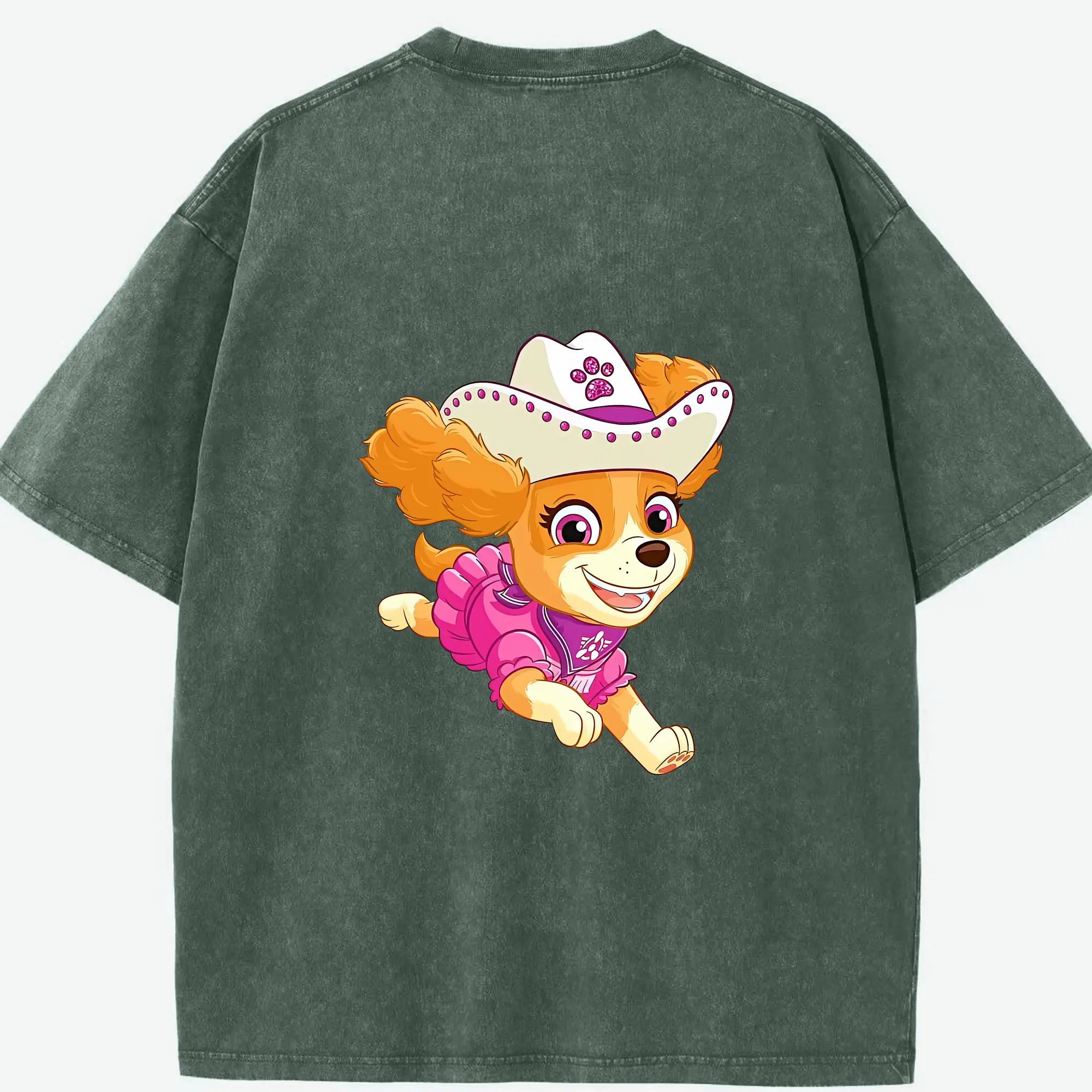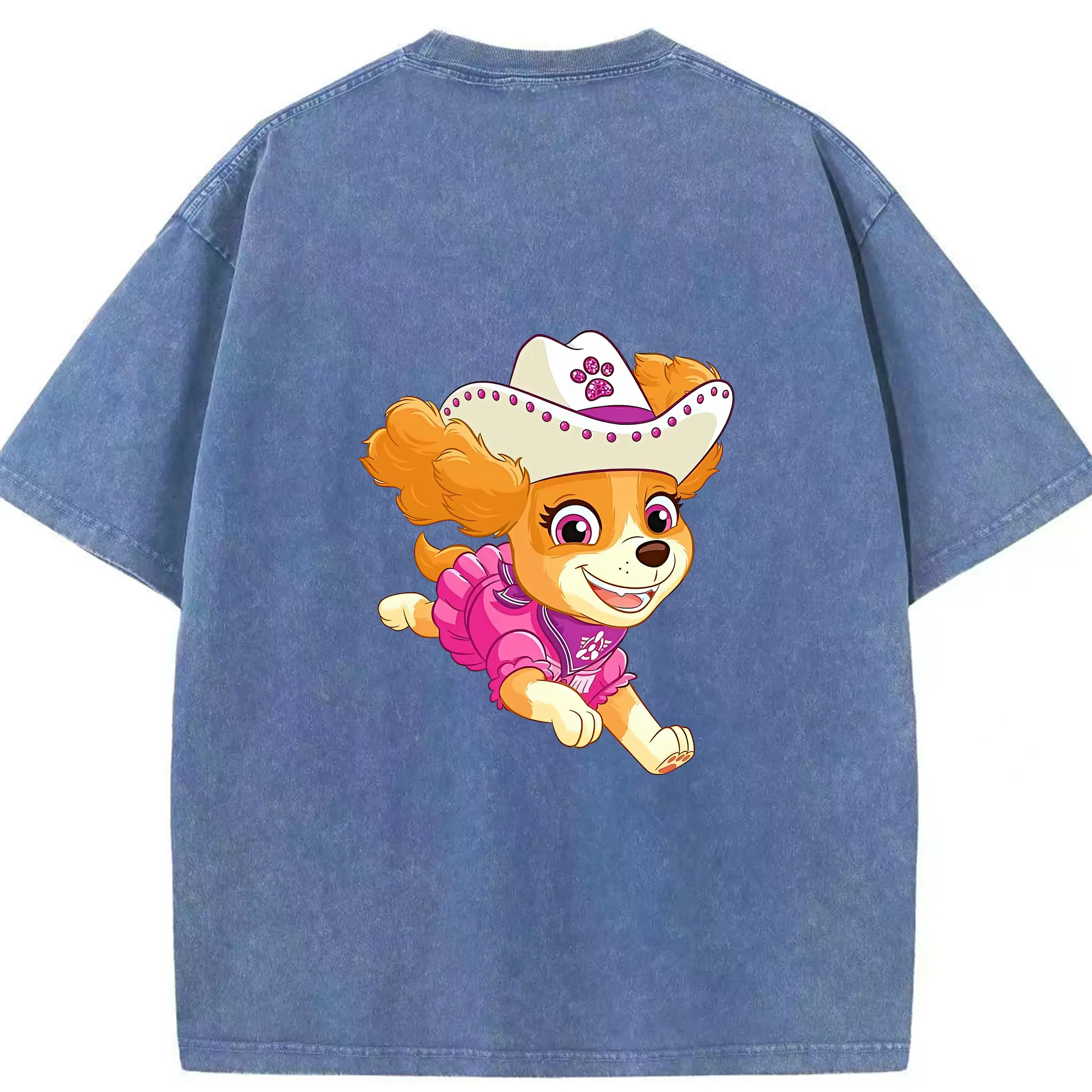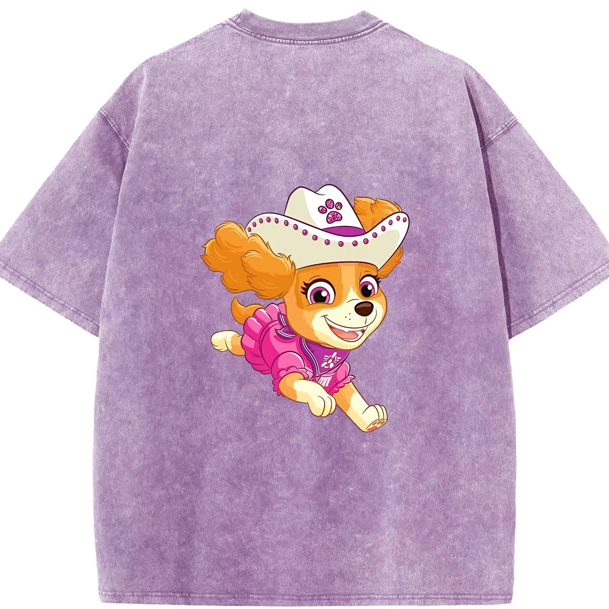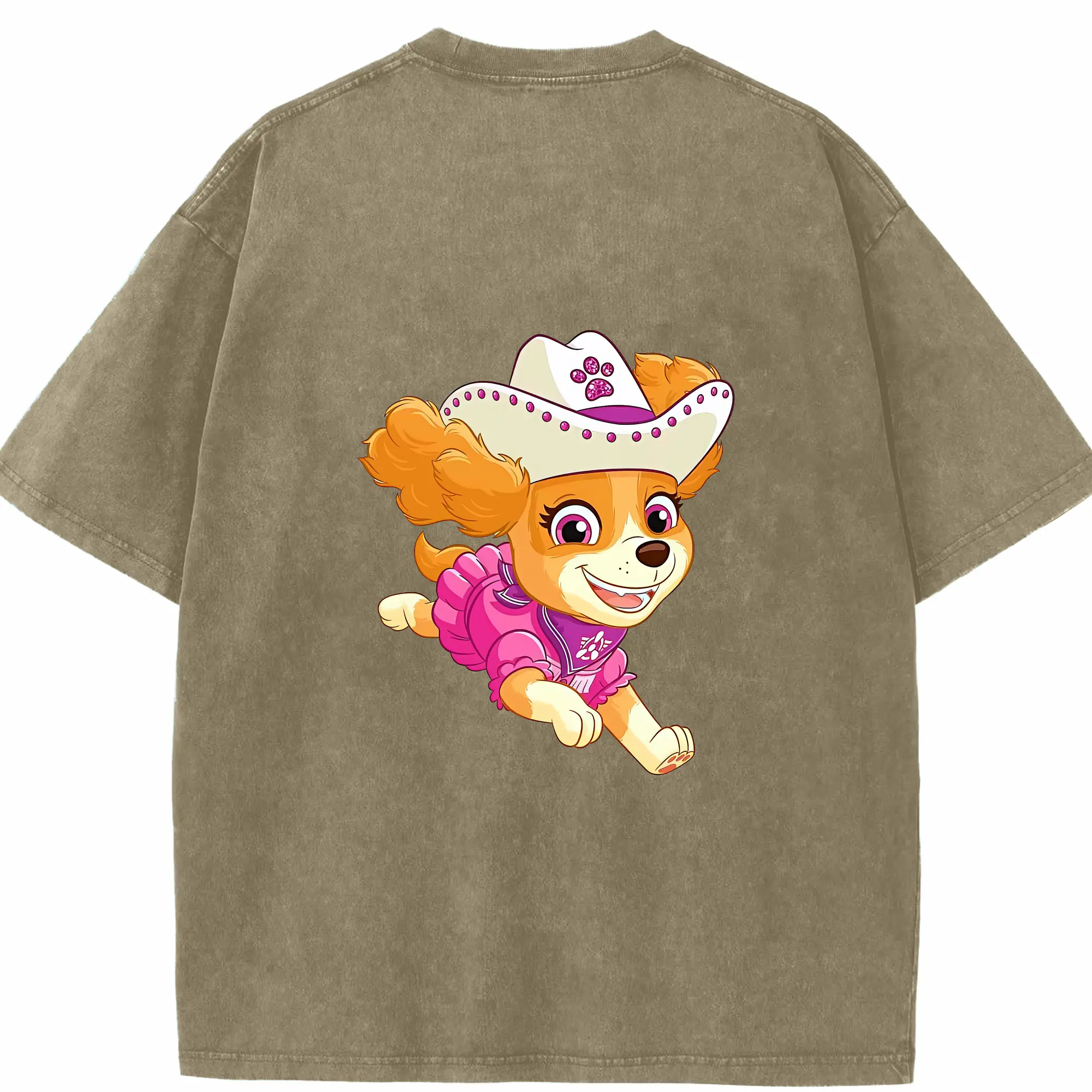 パウ・パトロール グッズ,スカイ - 綿100% ヴィンテージ風 半袖Tシャツ ・ フロントプリント ・ 柔らか肌触り ・ 通気性 快適 ・ スポーツ カジュアル 外出用