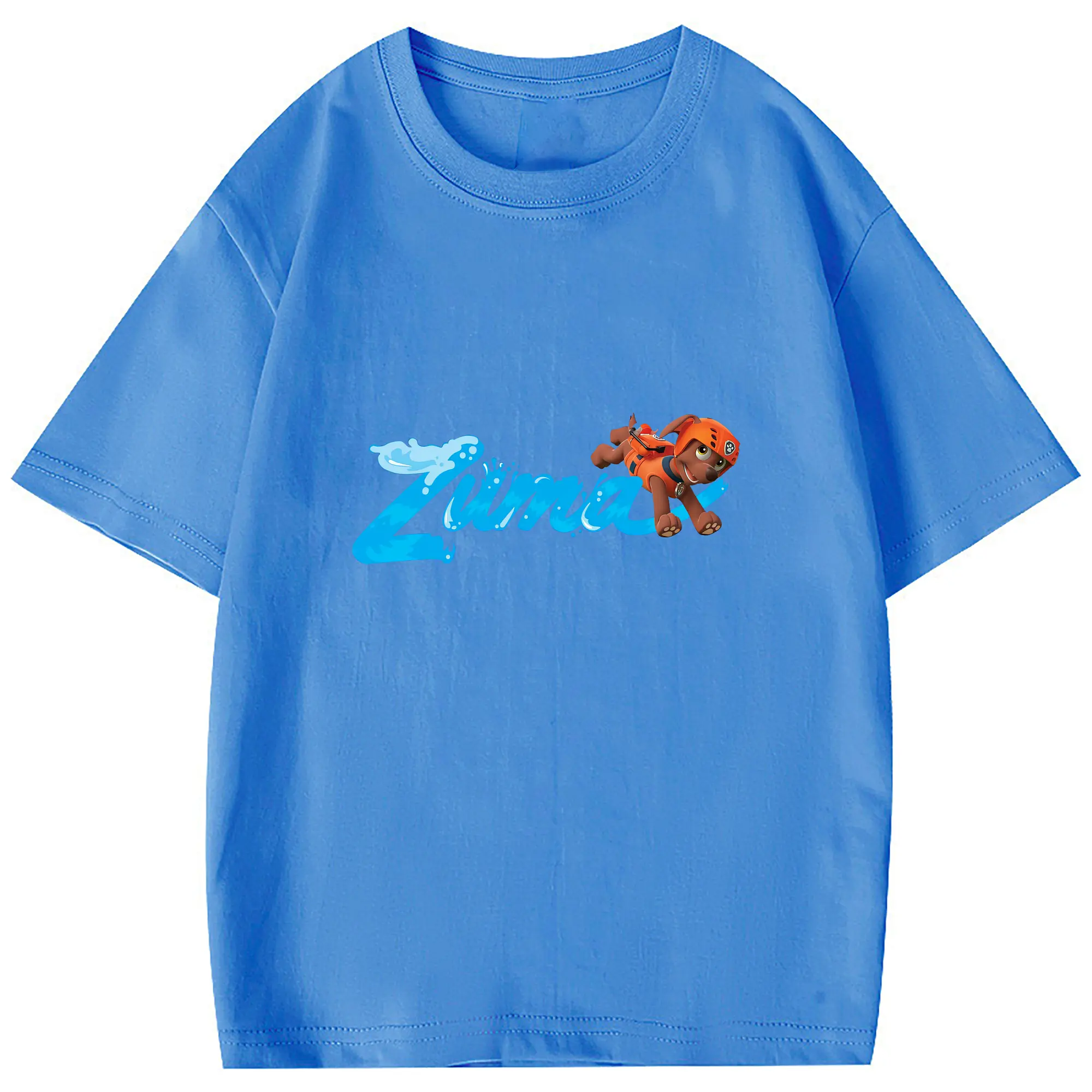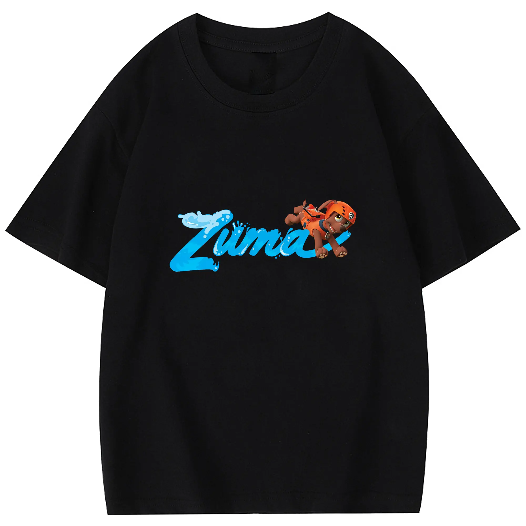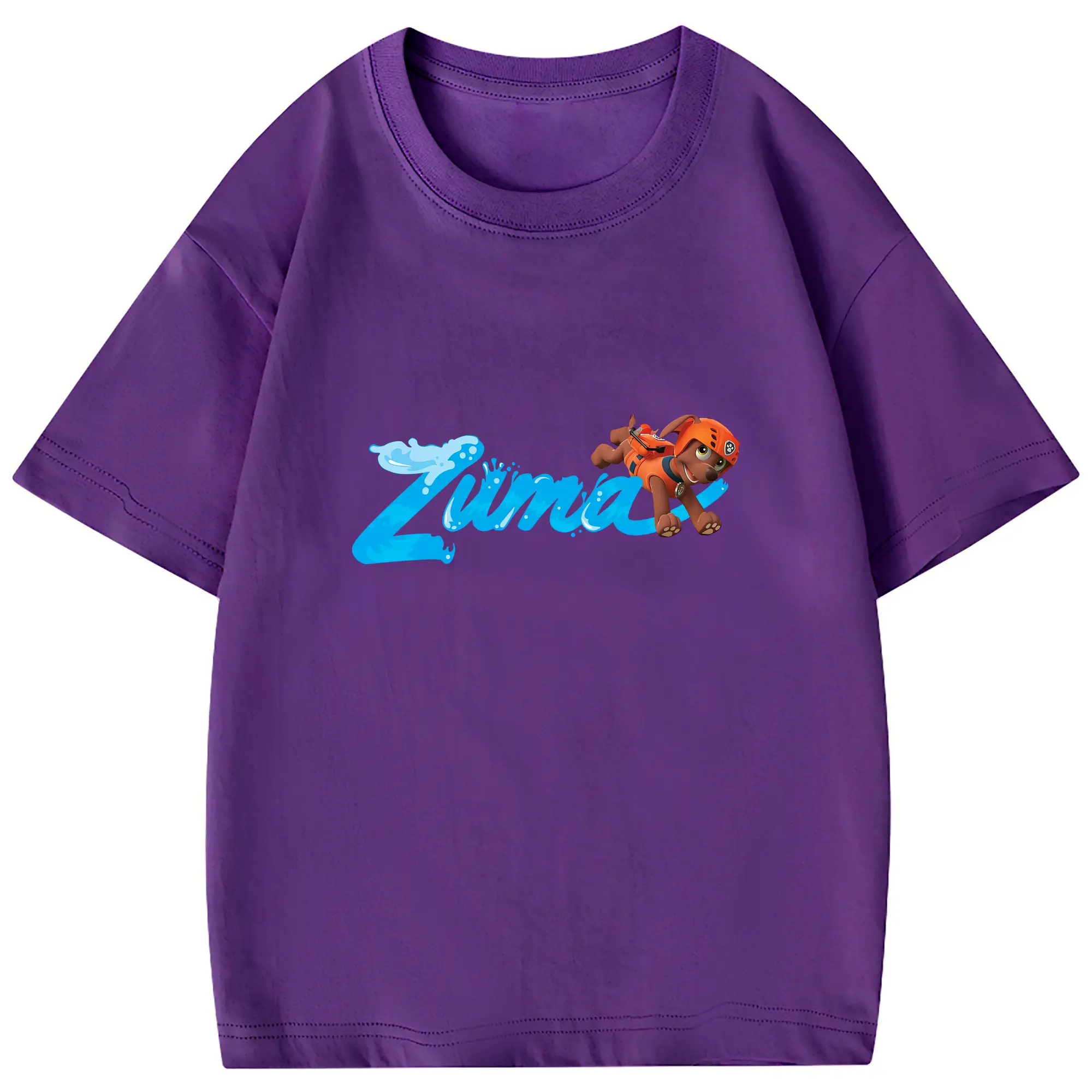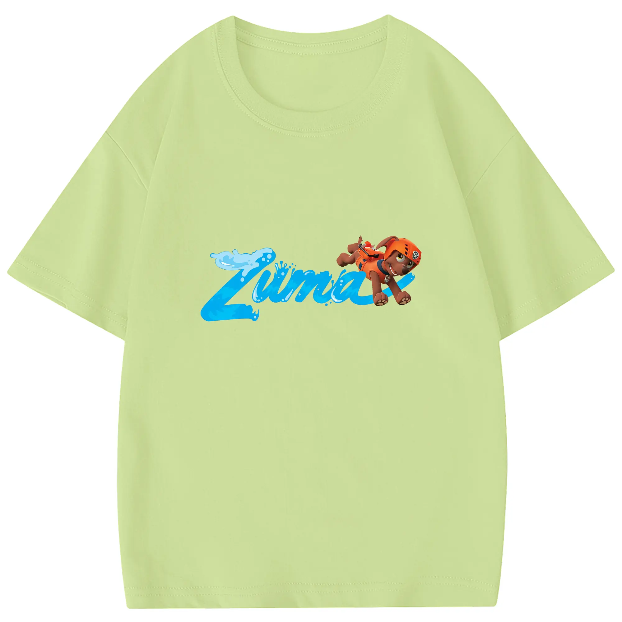 パウ・パトロール グッズ ズーマ - 綿100% 半袖Tシャツ ・ バックプリント ・ 快適 通気性 ・ 日常使い 散歩 スポーツ用