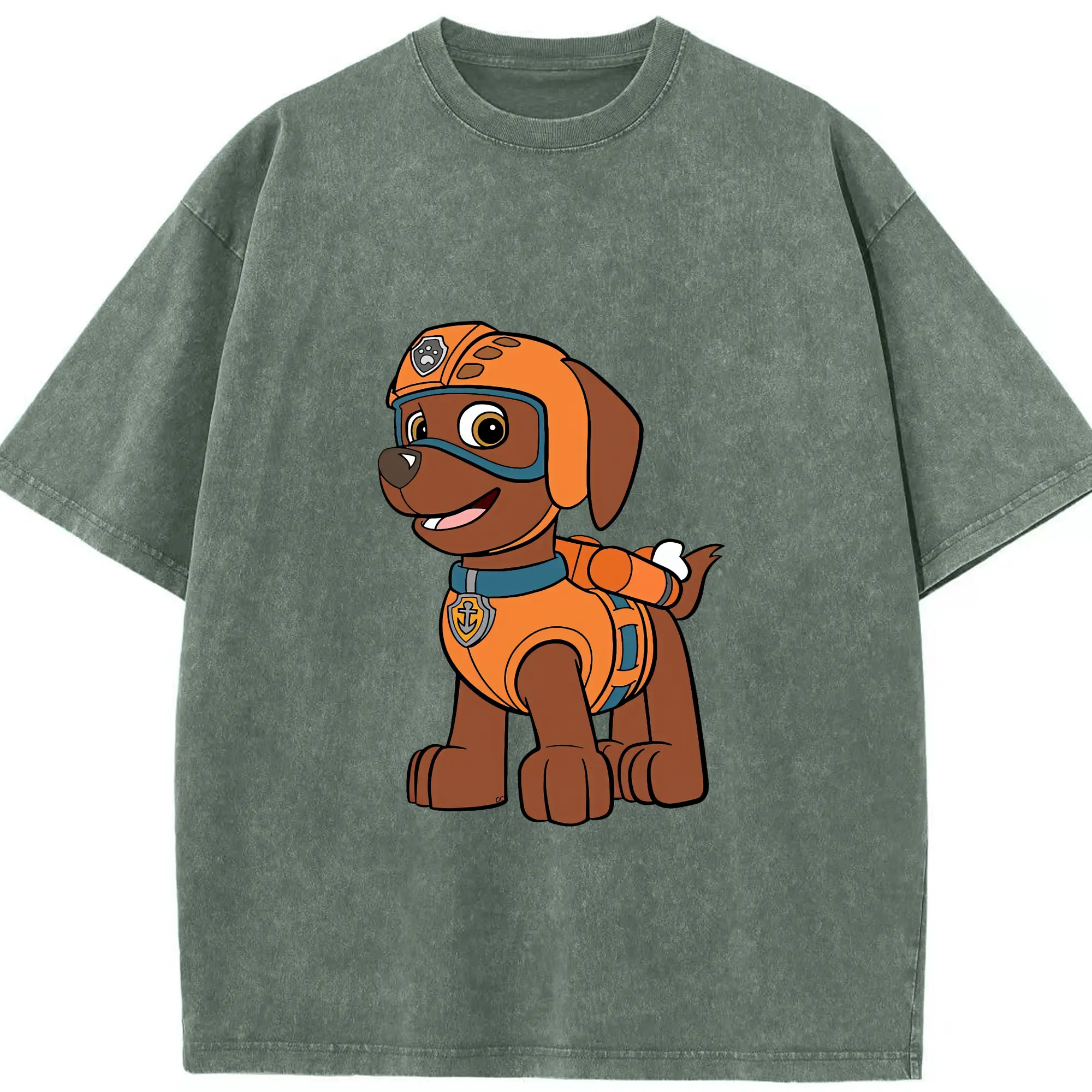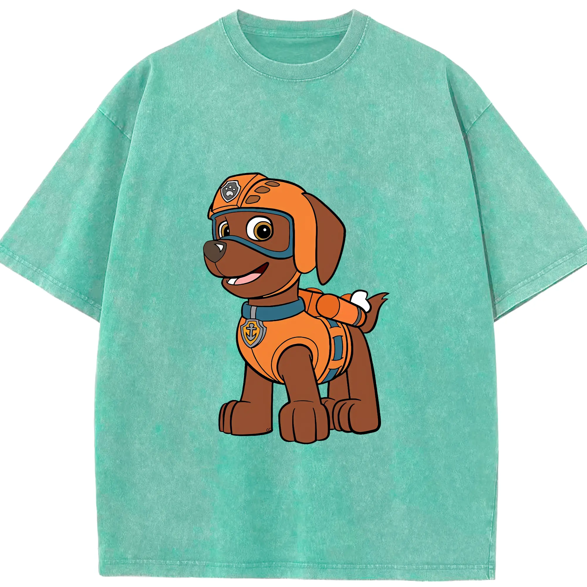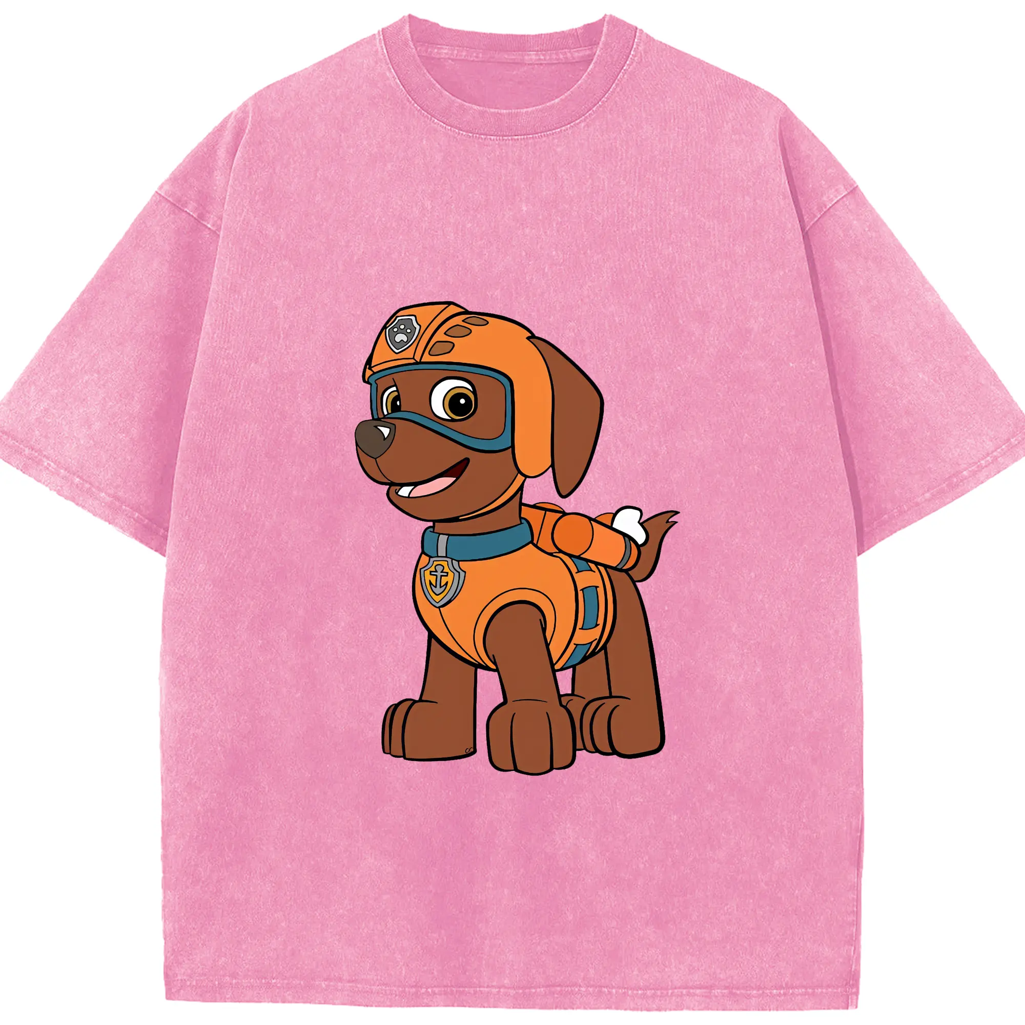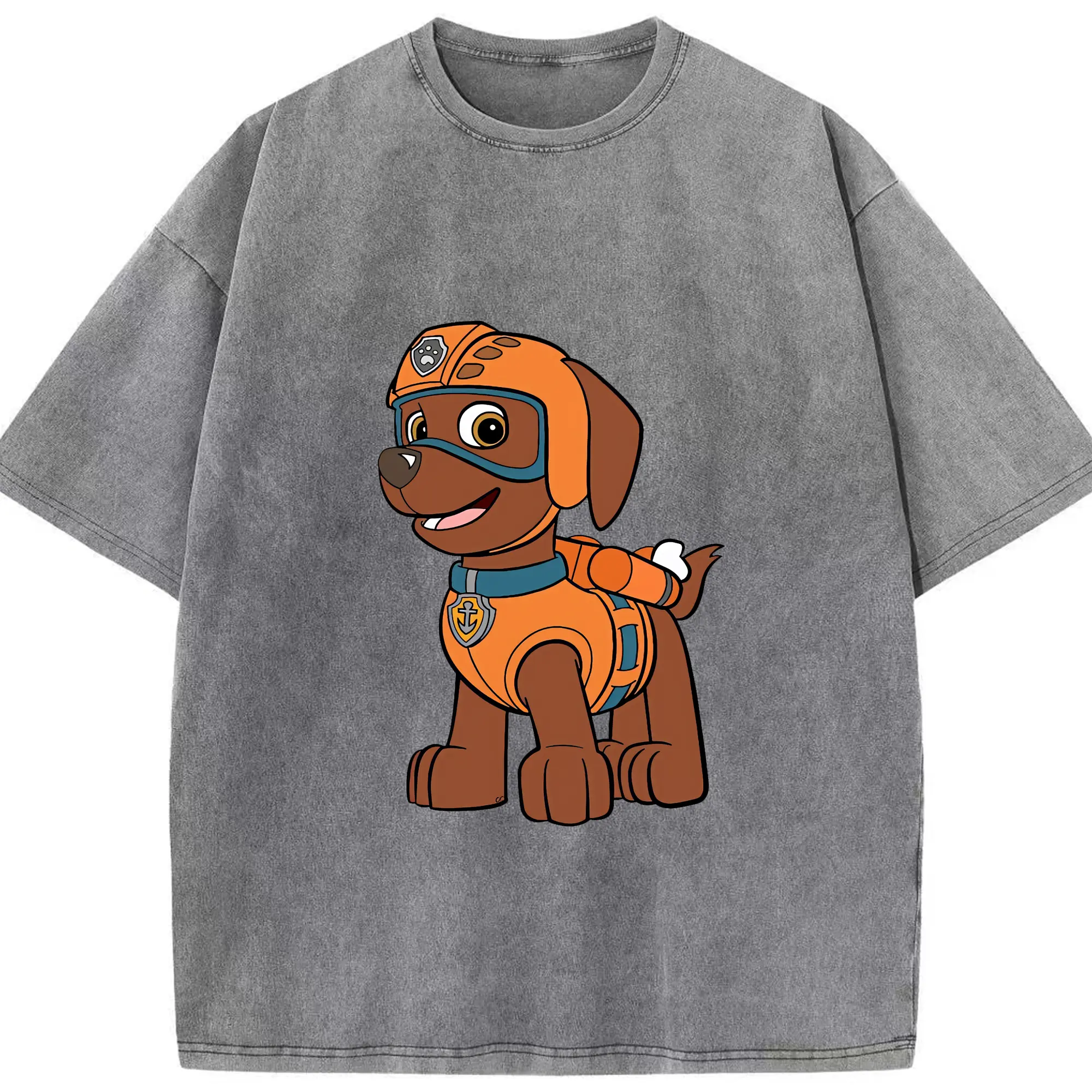 パウ・パトロール グッズ ズーマ - 綿100% ヴィンテージ風 半袖Tシャツ ・ 背面プリント ・ 柔らか肌触り ・ 通気性 快適 ・ スポーツ カジュアル 外出用