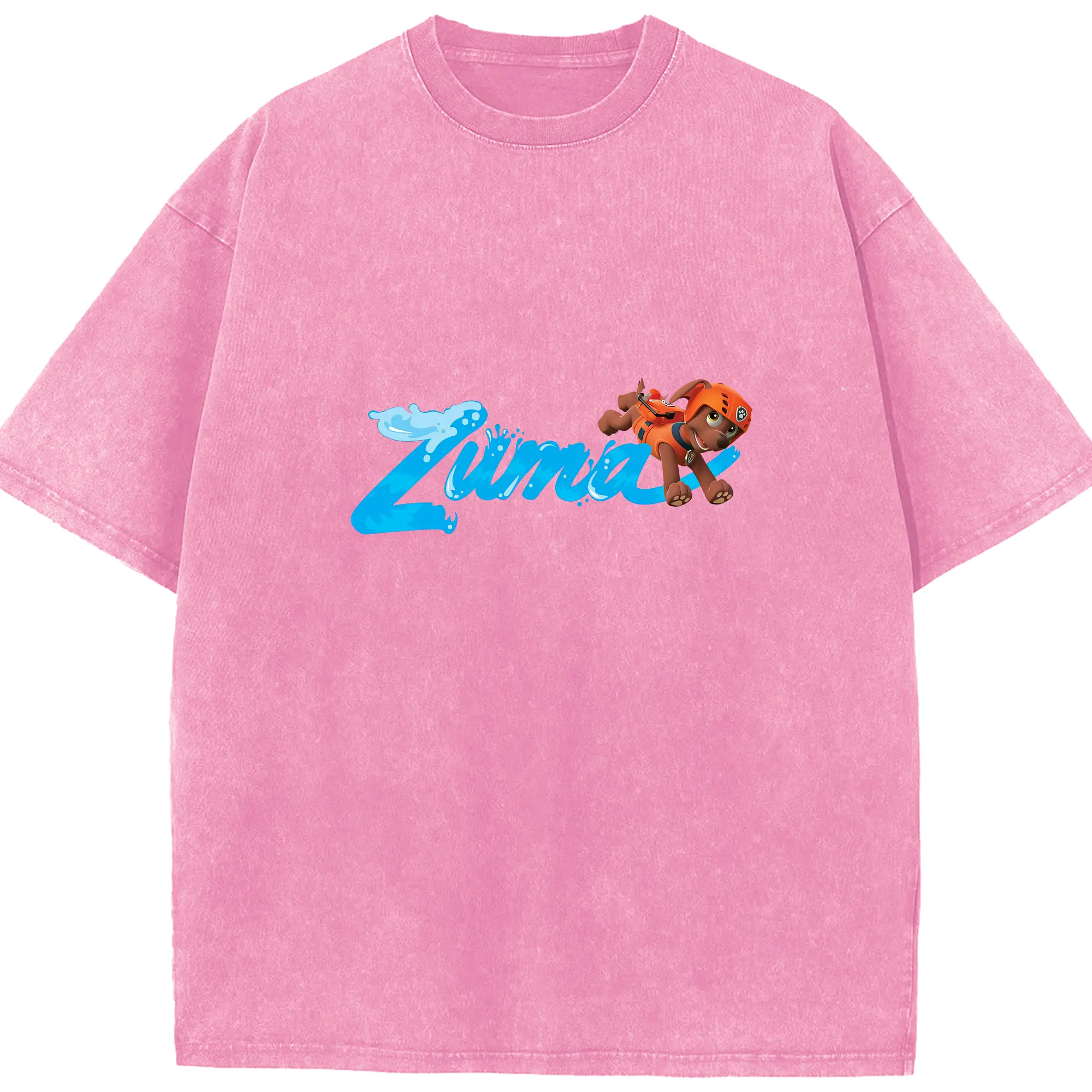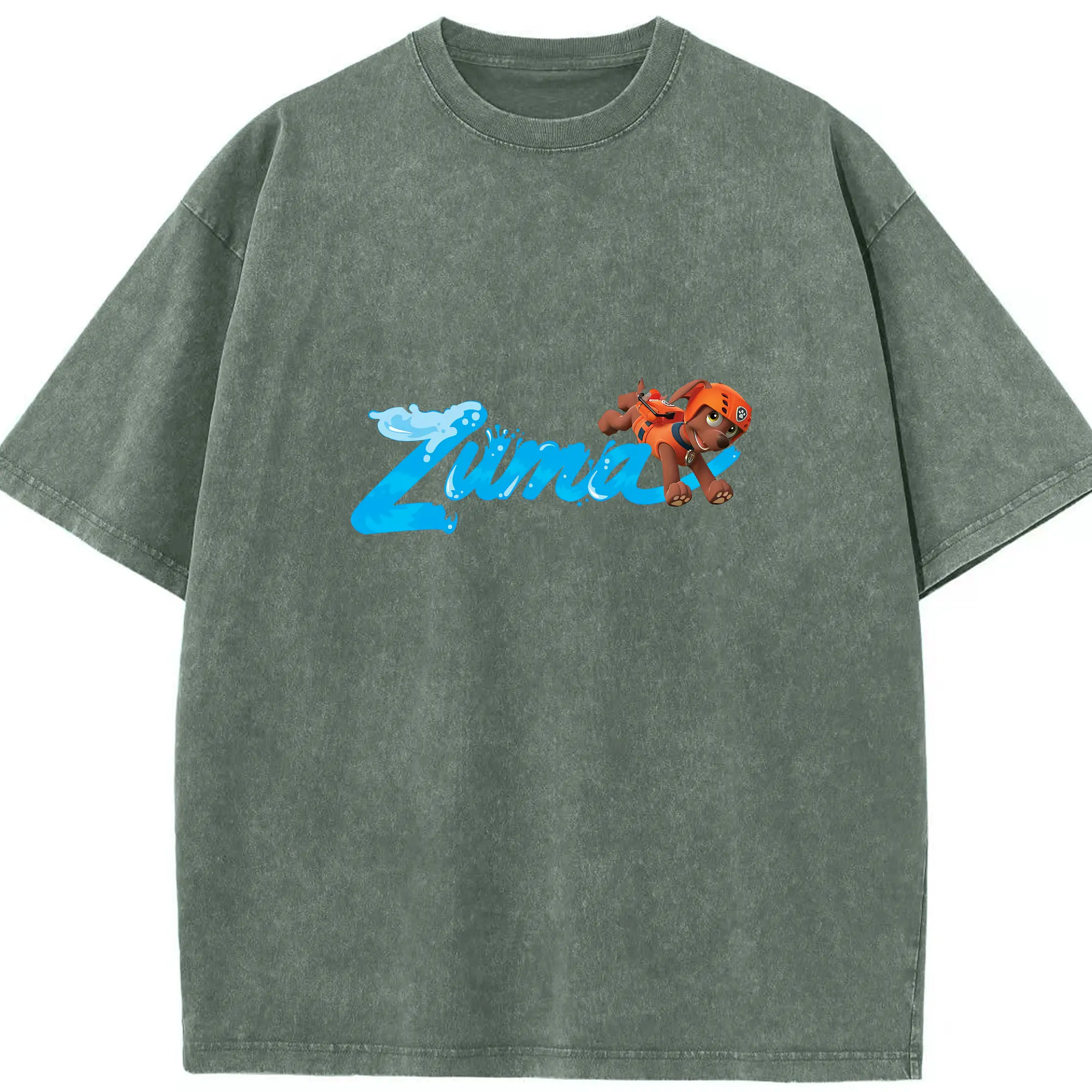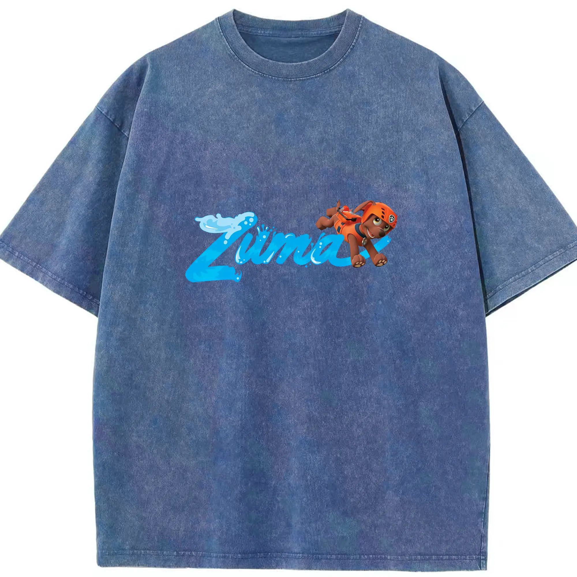 パウ・パトロール グッズ ズーマ - 綿100% ヴィンテージ風 半袖Tシャツ ・ 背面プリント ・ 柔らか肌触り ・ 通気性 快適 ・ スポーツ カジュアル 外出用