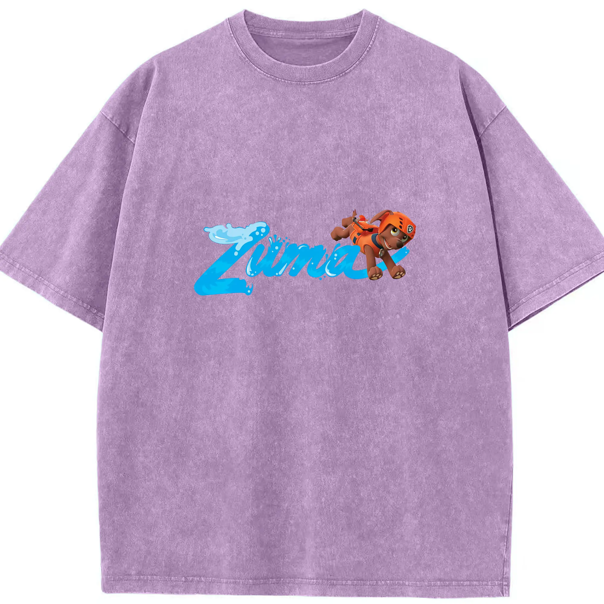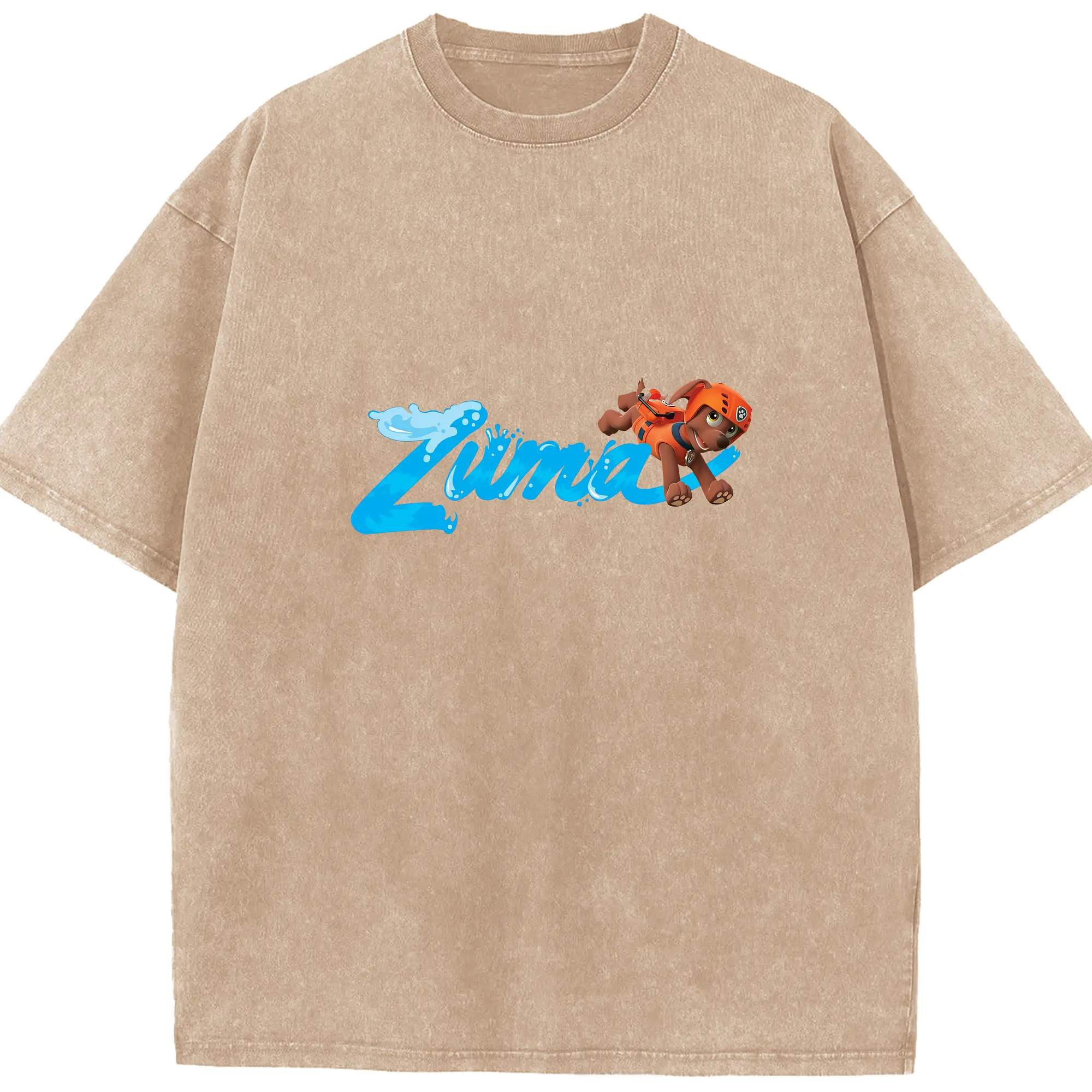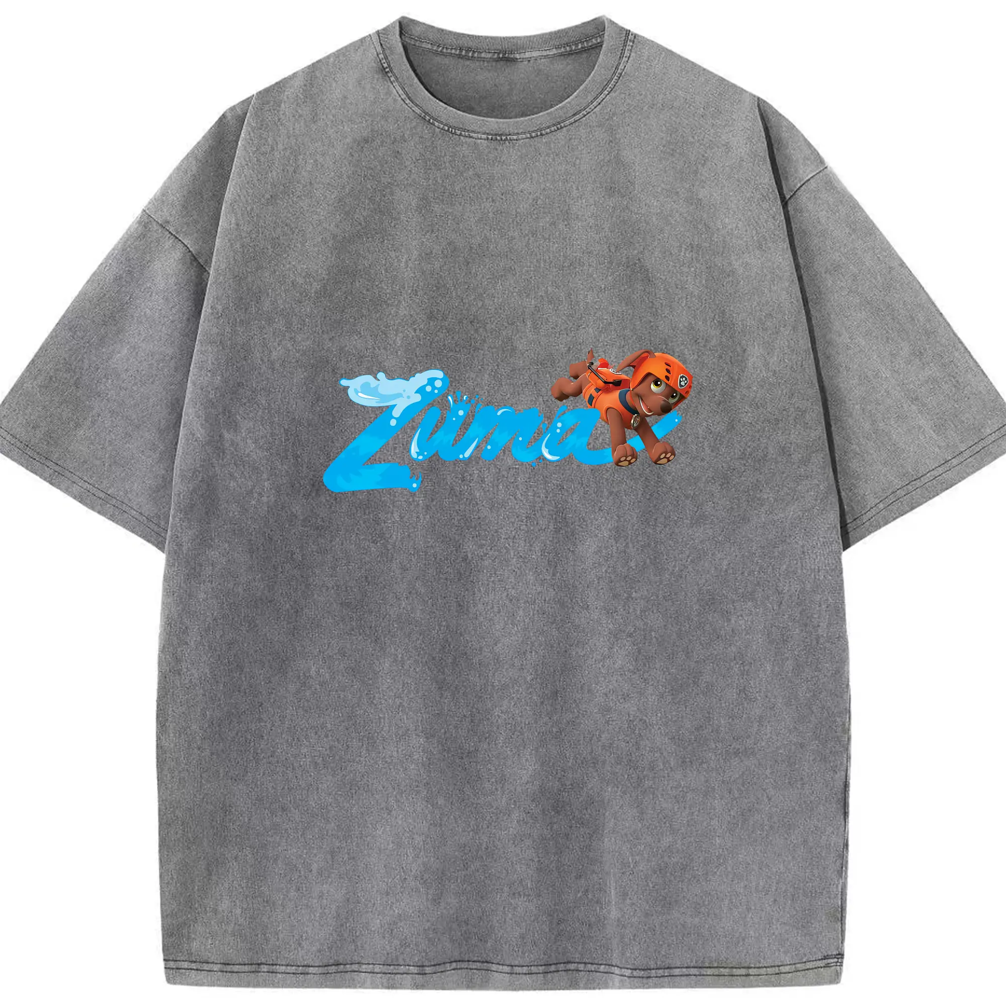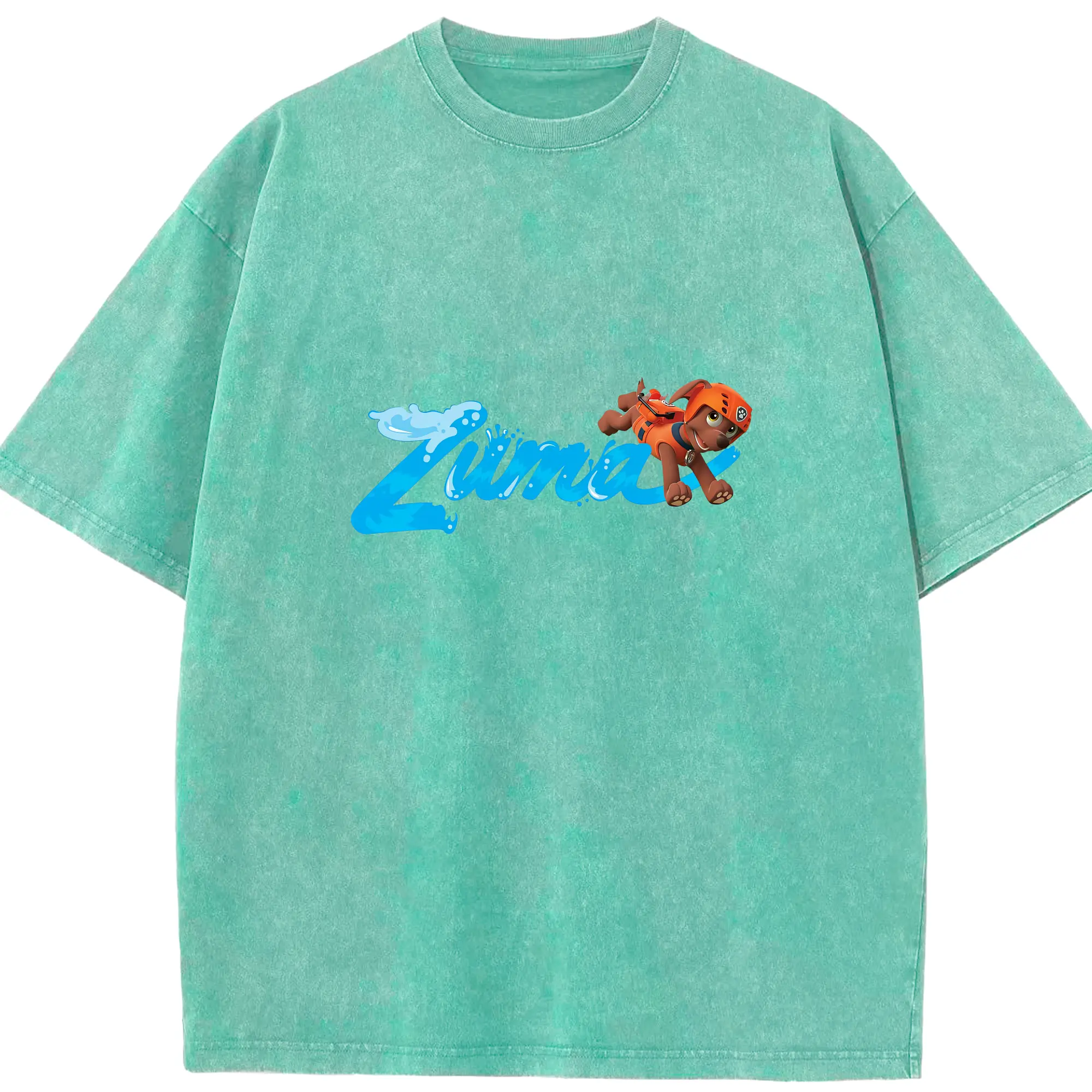 パウ・パトロール グッズ ズーマ - 綿100% ヴィンテージ風 半袖Tシャツ ・ 背面プリント ・ 柔らか肌触り ・ 通気性 快適 ・ スポーツ カジュアル 外出用