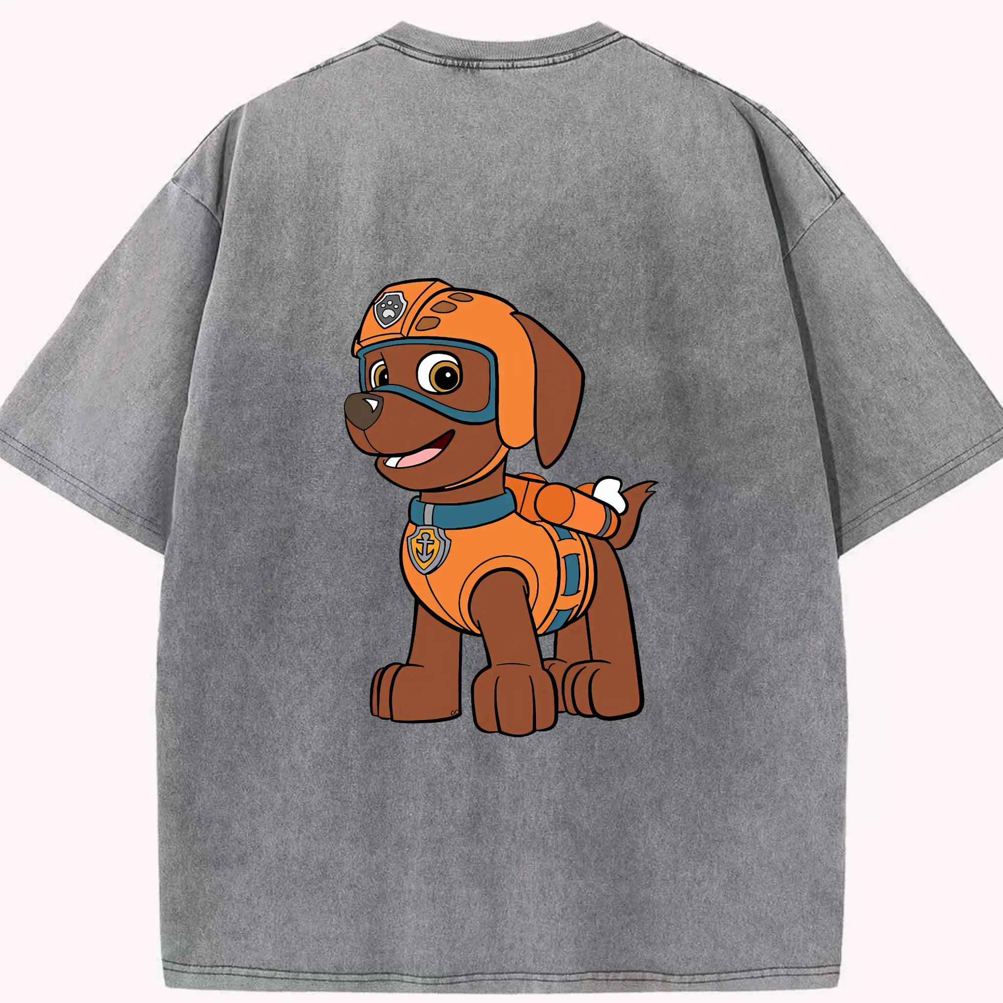 パウ・パトロール グッズ ズーマ - 綿100% ヴィンテージ風 半袖Tシャツ ・ フロントプリント ・ 柔らか肌触り ・ 通気性 快適 ・ スポーツ カジュアル 外出用