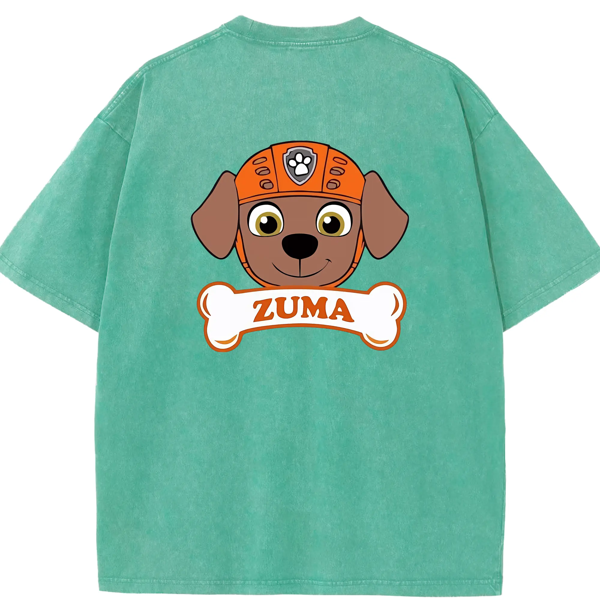 パウ・パトロール グッズ ズーマ - 綿100% ヴィンテージ風 半袖Tシャツ ・ フロントプリント ・ 柔らか肌触り ・ 通気性 快適 ・ スポーツ カジュアル 外出用