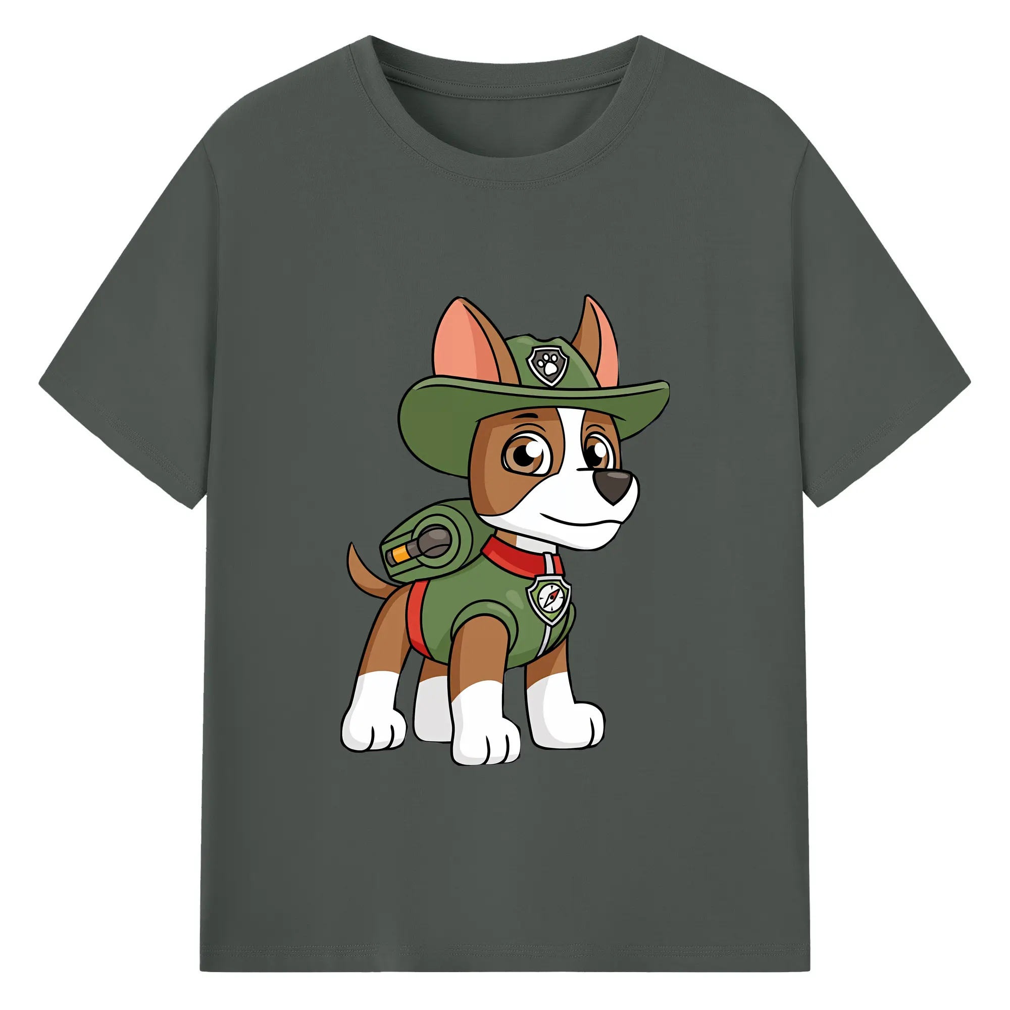 パウ・パトロール グッズ トラッカー - 綿100% ヴィンテージ風 半袖Tシャツ ・ フロントプリント ・ 柔らか肌触り ・ 通気性 快適 ・ スポーツ カジュアル 外出用