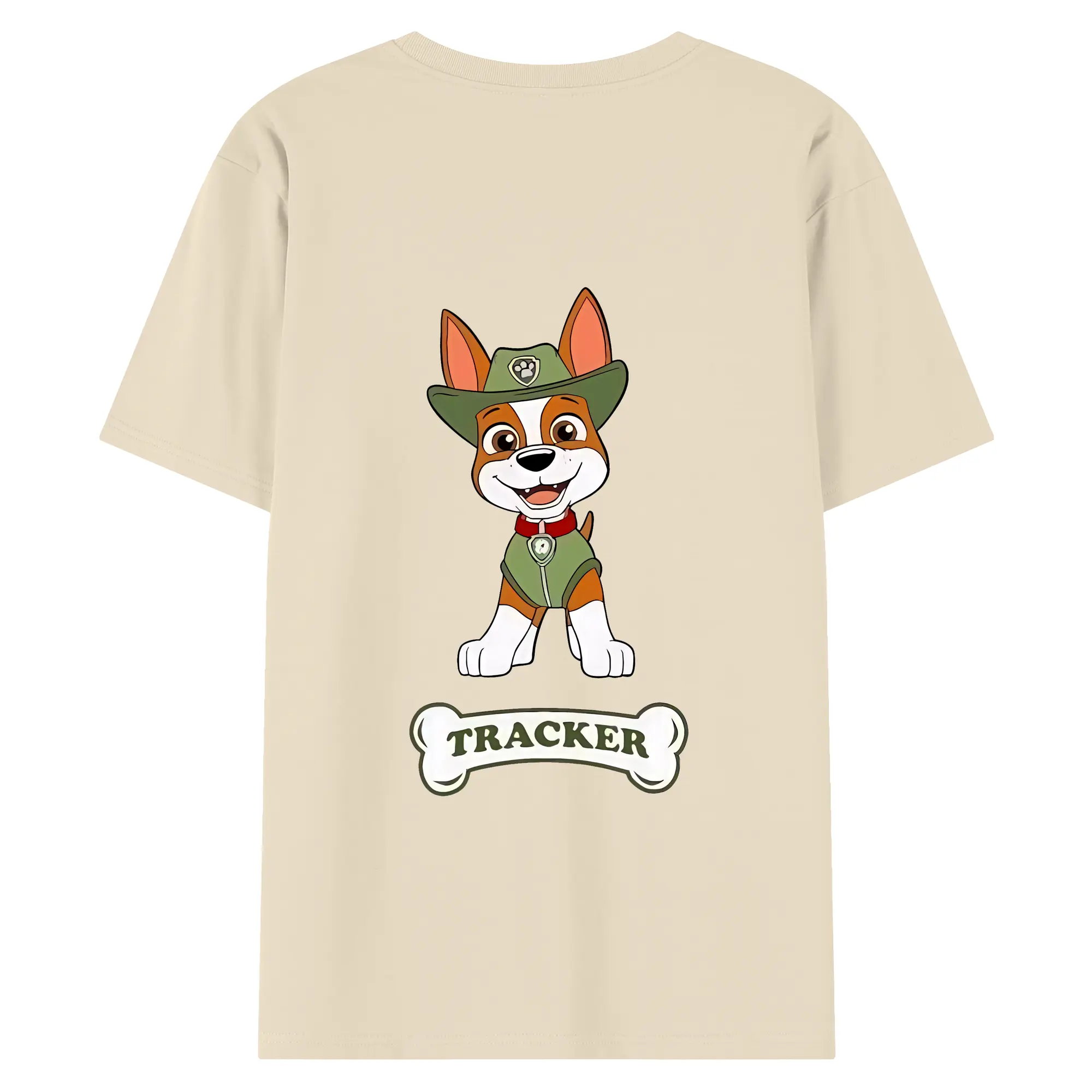 パウ・パトロール グッズ トラッカー - 綿100% ヴィンテージ風 半袖Tシャツ ・ 背面プリント ・ 柔らか肌触り ・ 通気性 快適 ・ スポーツ カジュアル 外出用