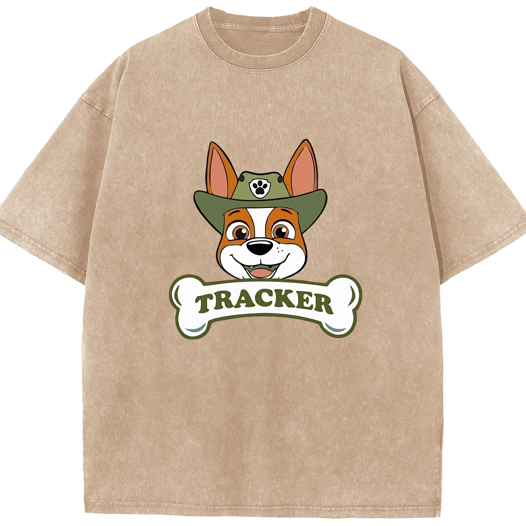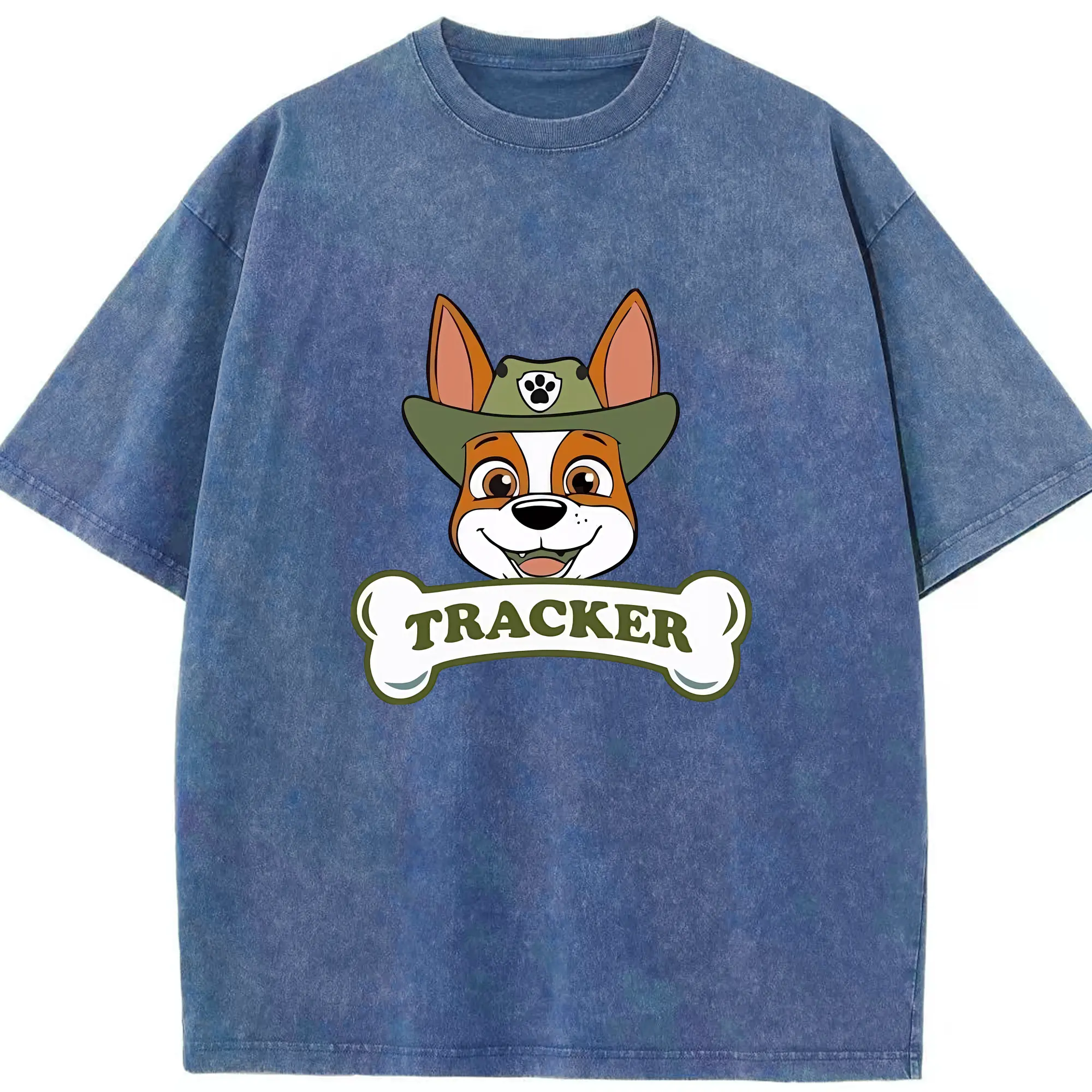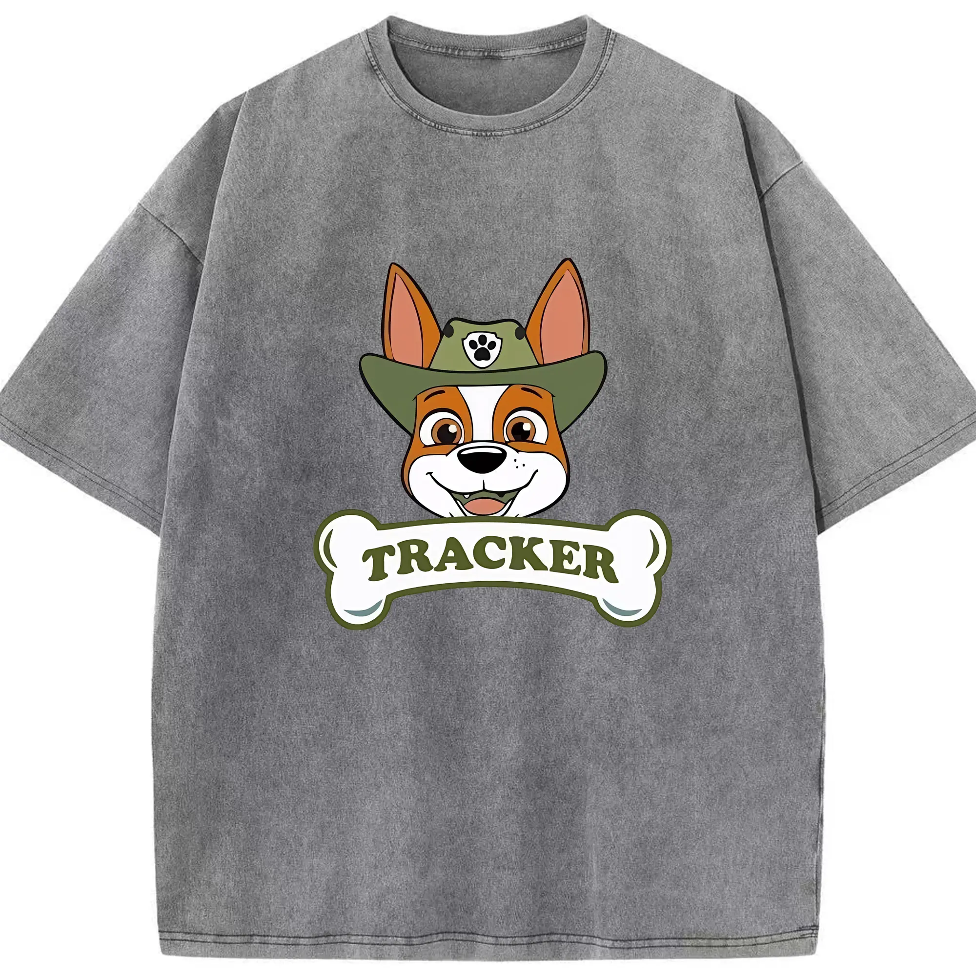 パウ・パトロール グッズ トラッカー - 綿100% ヴィンテージ風 半袖Tシャツ ・ 背面プリント ・ 柔らか肌触り ・ 通気性 快適 ・ スポーツ カジュアル 外出用