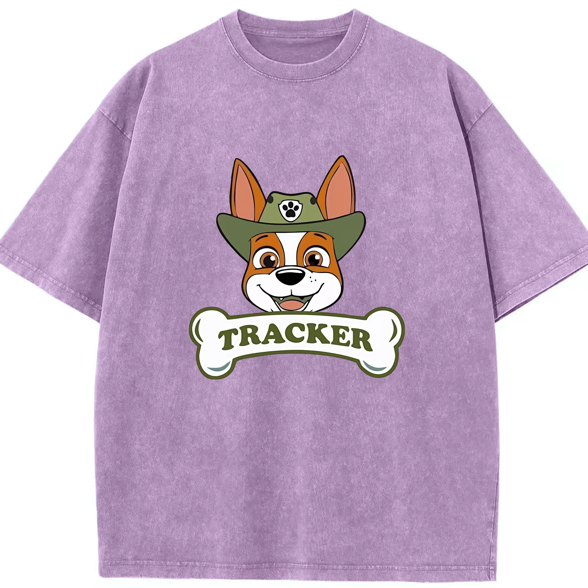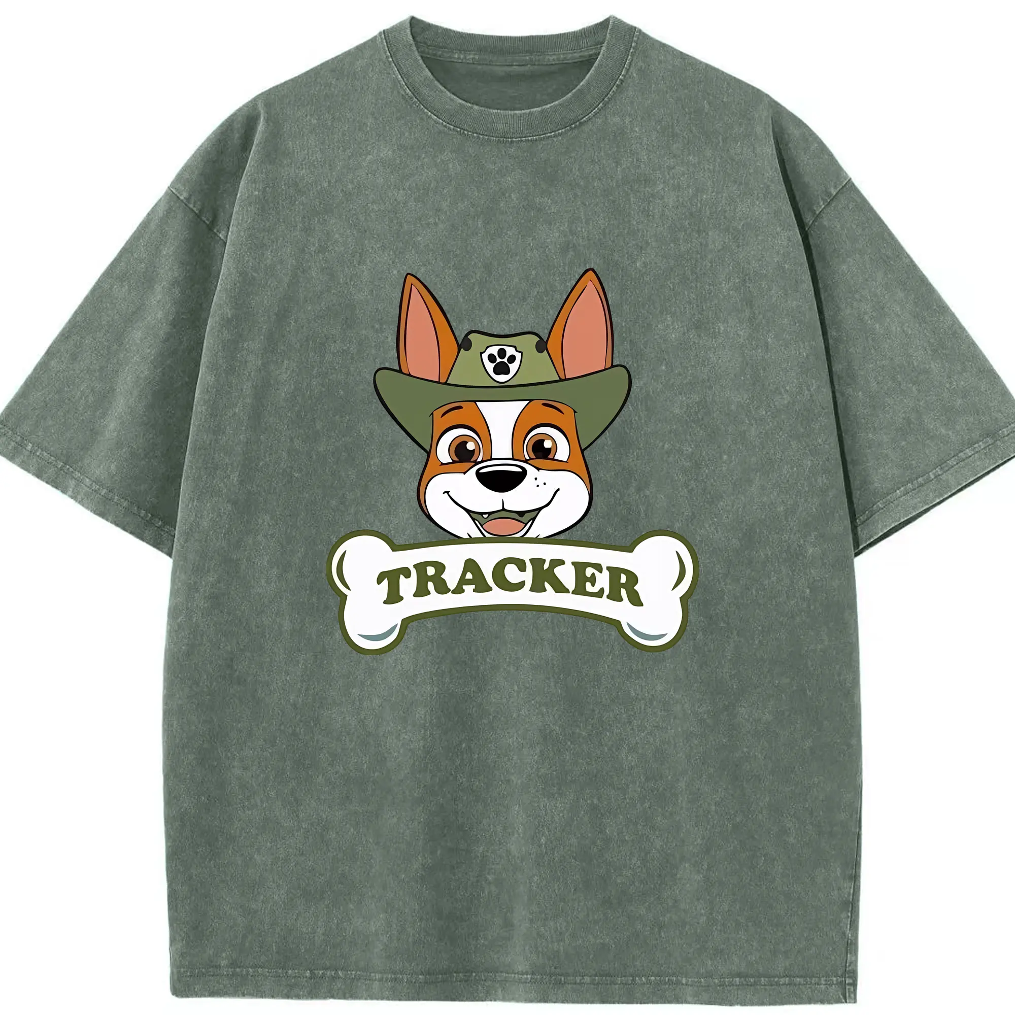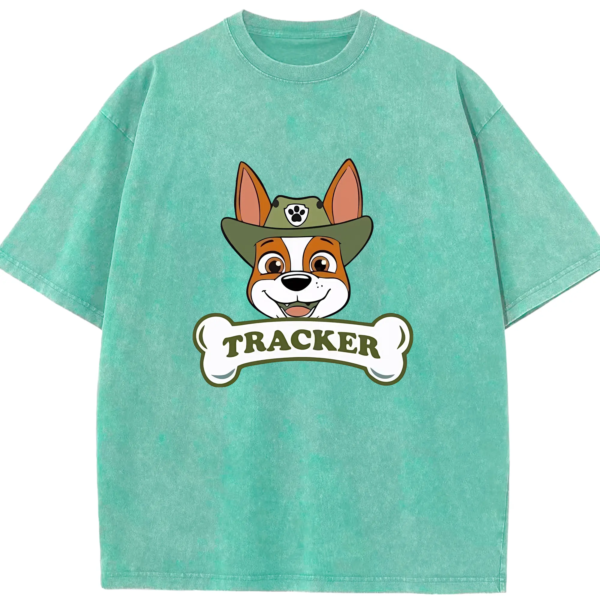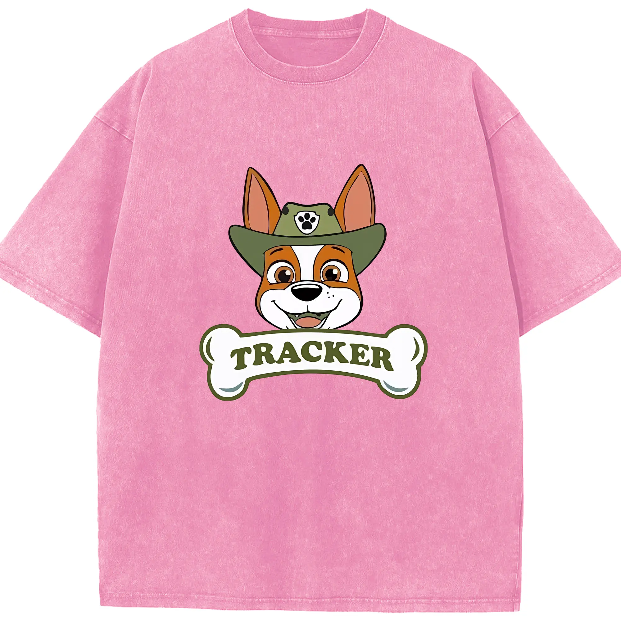 パウ・パトロール グッズ トラッカー - 綿100% ヴィンテージ風 半袖Tシャツ ・ 背面プリント ・ 柔らか肌触り ・ 通気性 快適 ・ スポーツ カジュアル 外出用