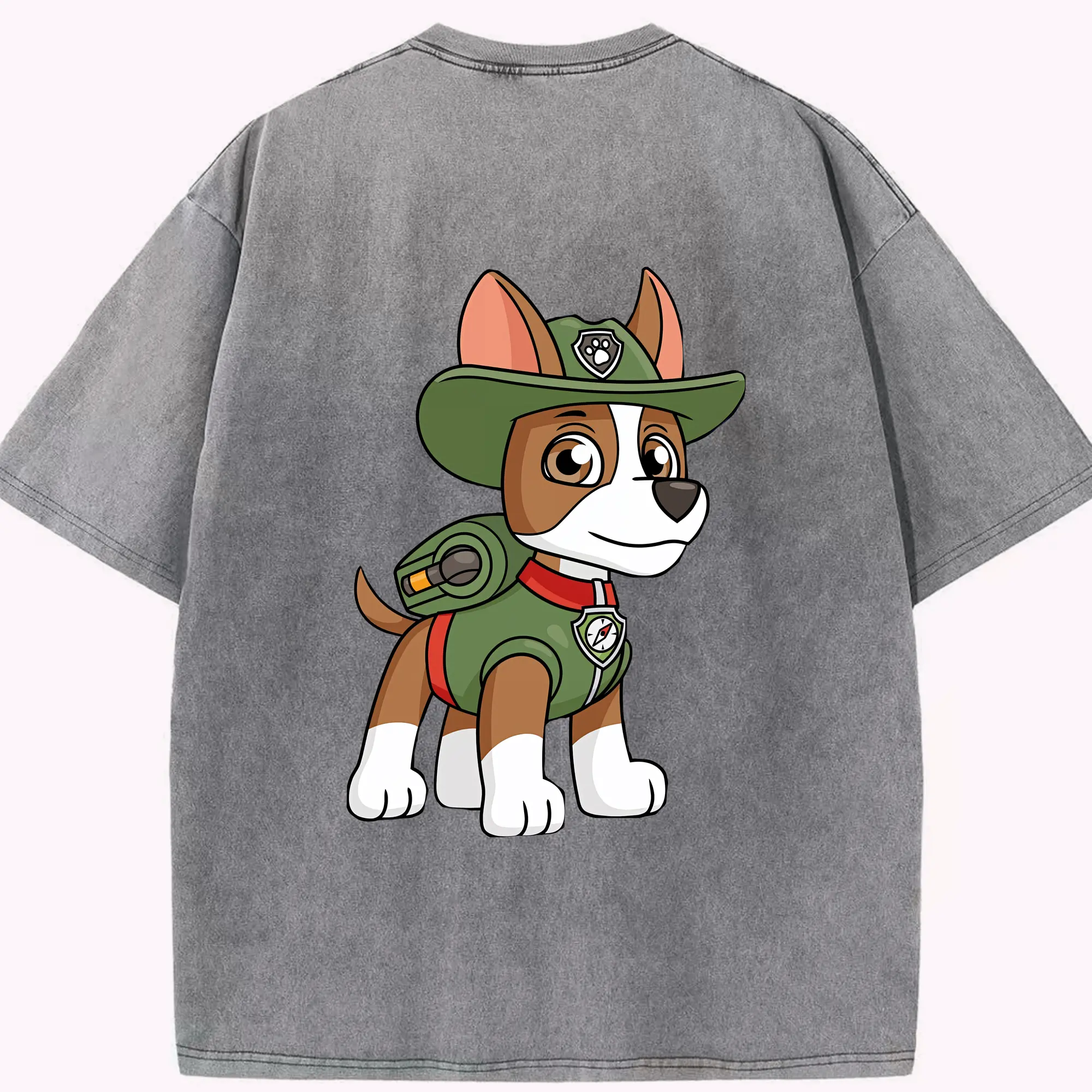 パウ・パトロール グッズ トラッカー - 綿100% ヴィンテージ風 半袖Tシャツ ・ フロントプリント ・ 柔らか肌触り ・ 通気性 快適 ・ スポーツ カジュアル 外出用