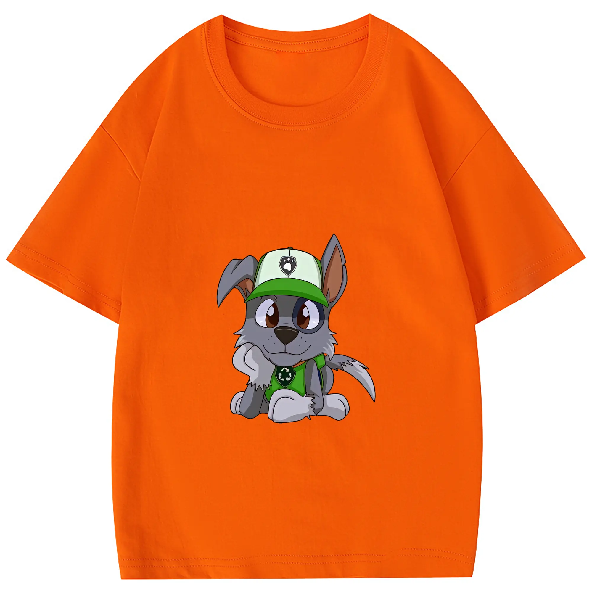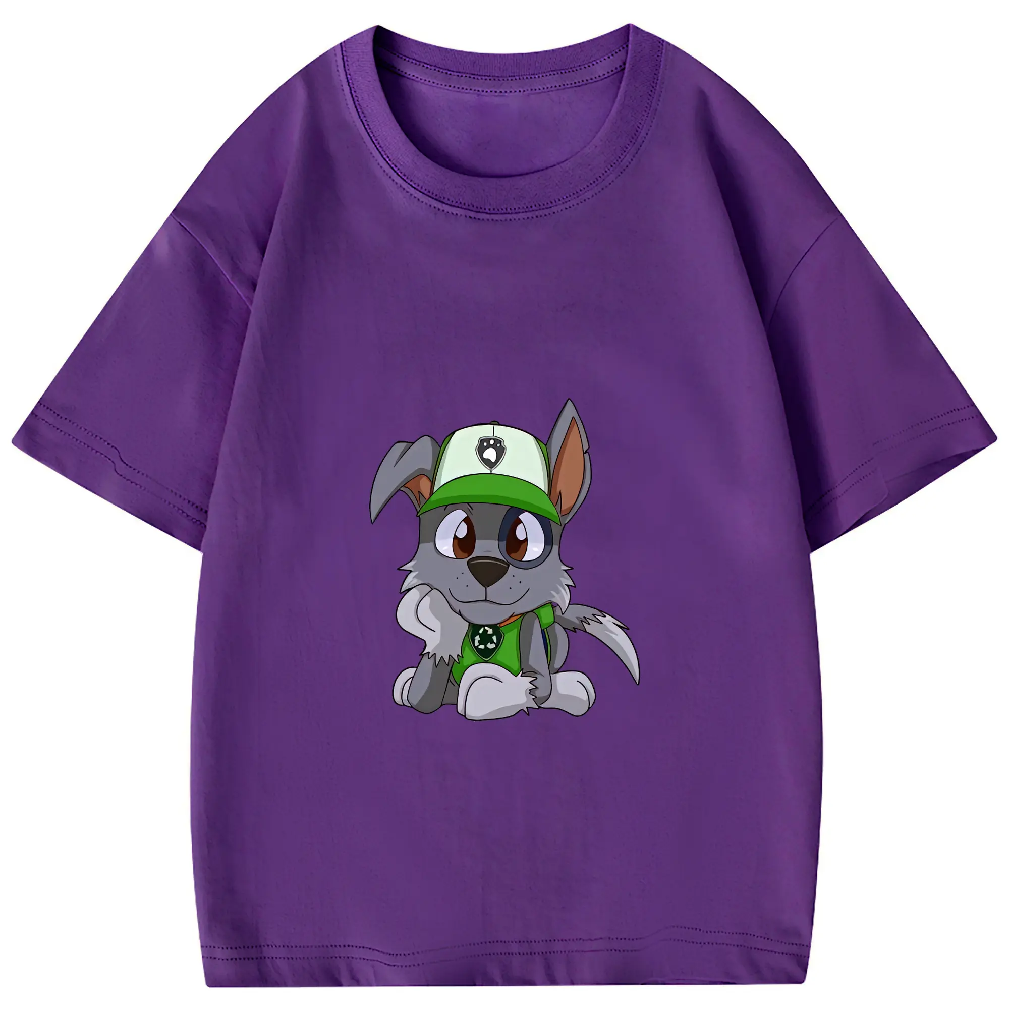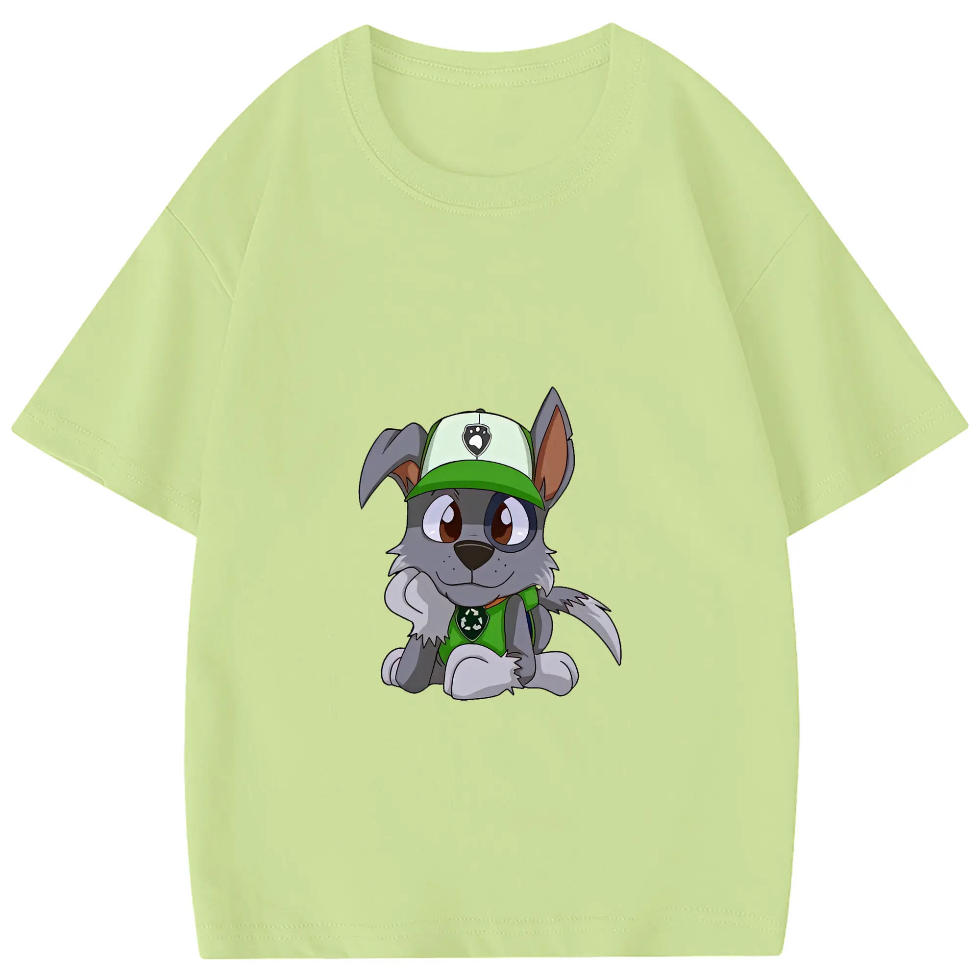 パウ・パトロール グッズ ロッキー - 綿100% 半袖Tシャツ ・ バックプリント ・ 快適 通気性 ・ 日常使い 散歩 スポーツ用