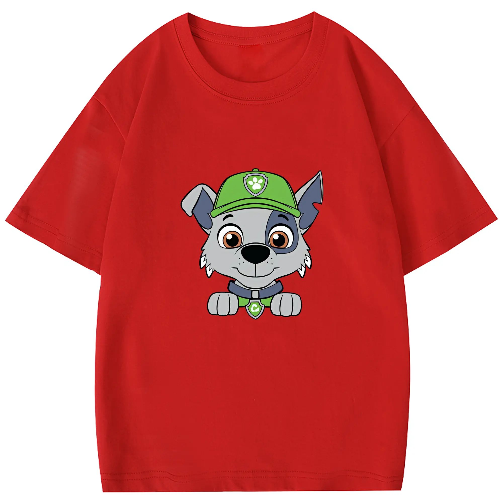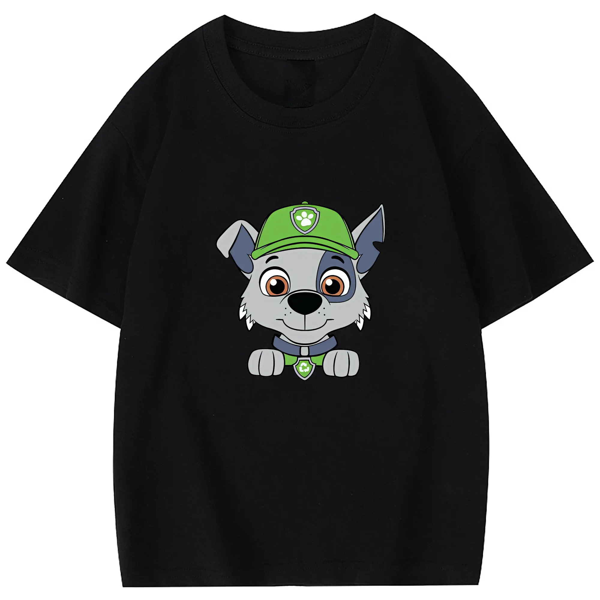 パウ・パトロール グッズ ロッキー - 綿100% 半袖Tシャツ ・ バックプリント ・ 快適 通気性 ・ 日常使い 散歩 スポーツ用