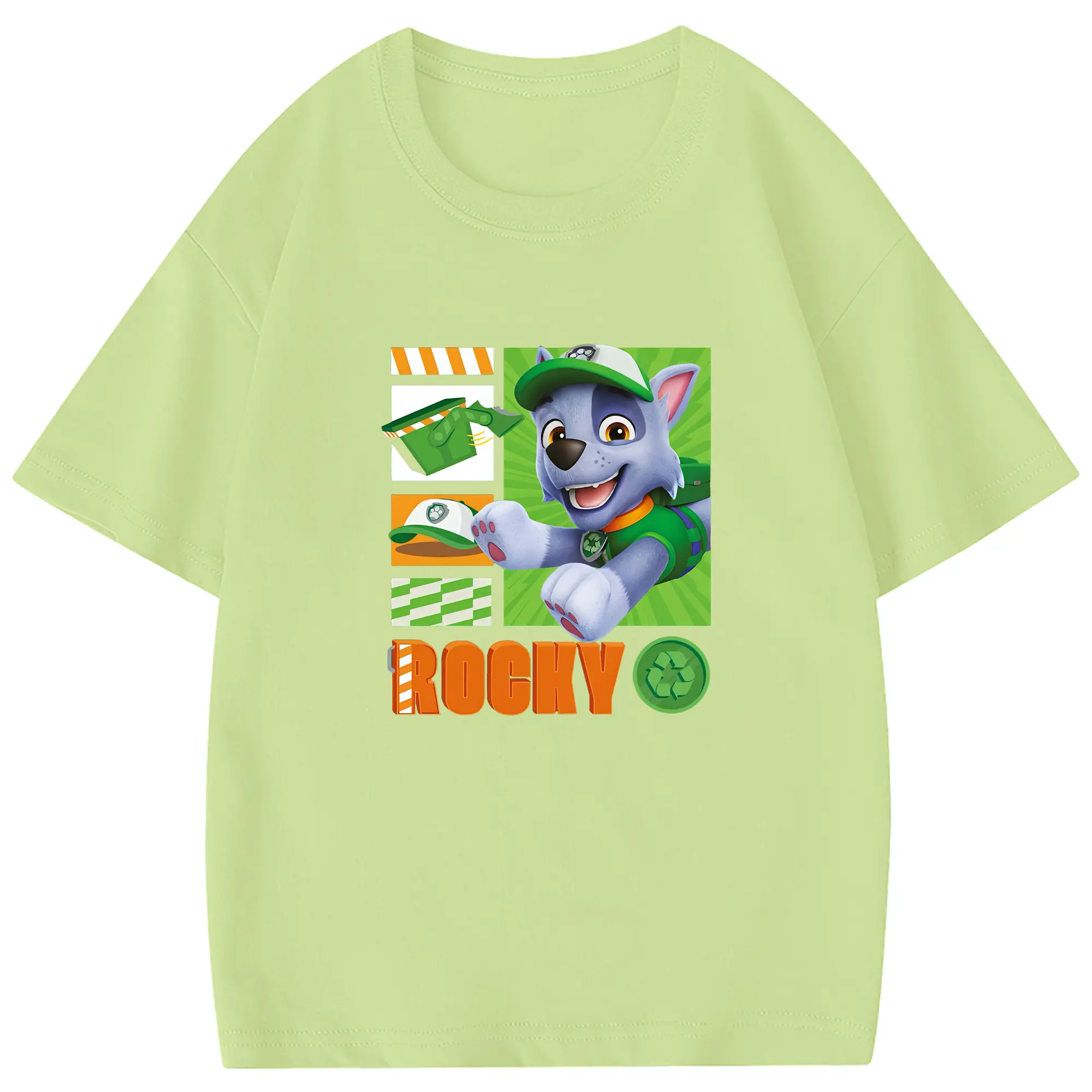 パウ・パトロール グッズ ロッキー - 綿100% 半袖Tシャツ ・ フロントプリント ・ 快適 通気性 ・ 日常使い 散歩 スポーツ用