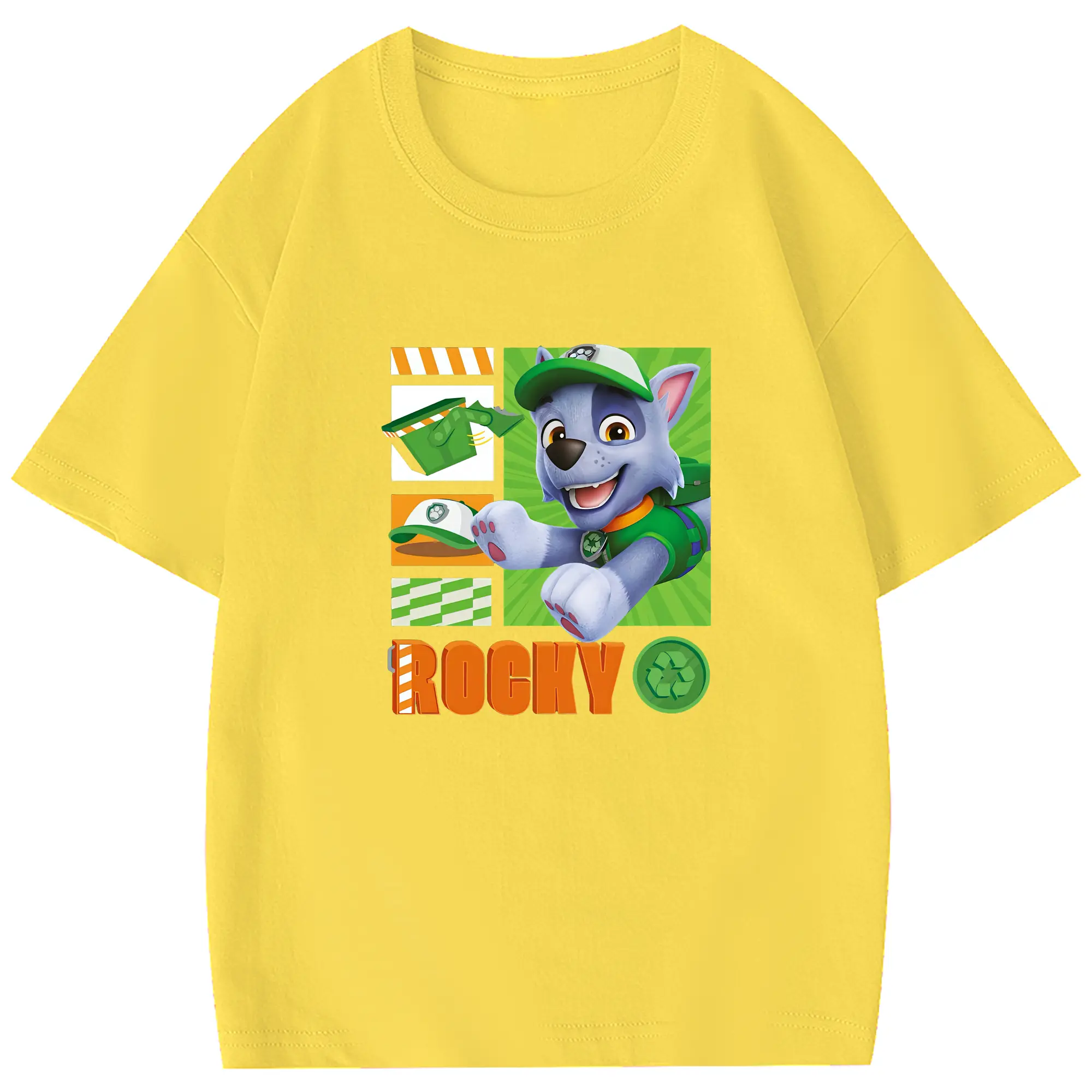 パウ・パトロール グッズ ロッキー - 綿100% 半袖Tシャツ ・ バックプリント ・ 快適 通気性 ・ 日常使い 散歩 スポーツ用