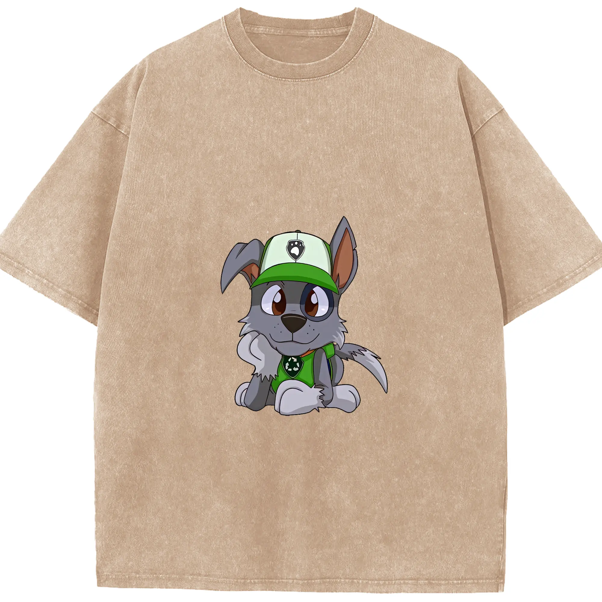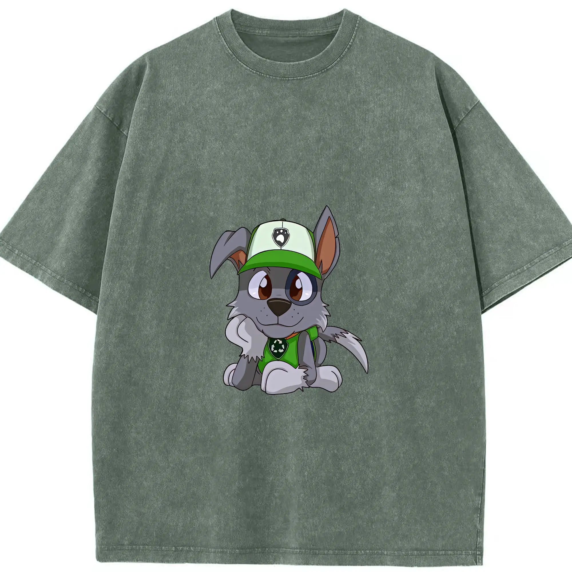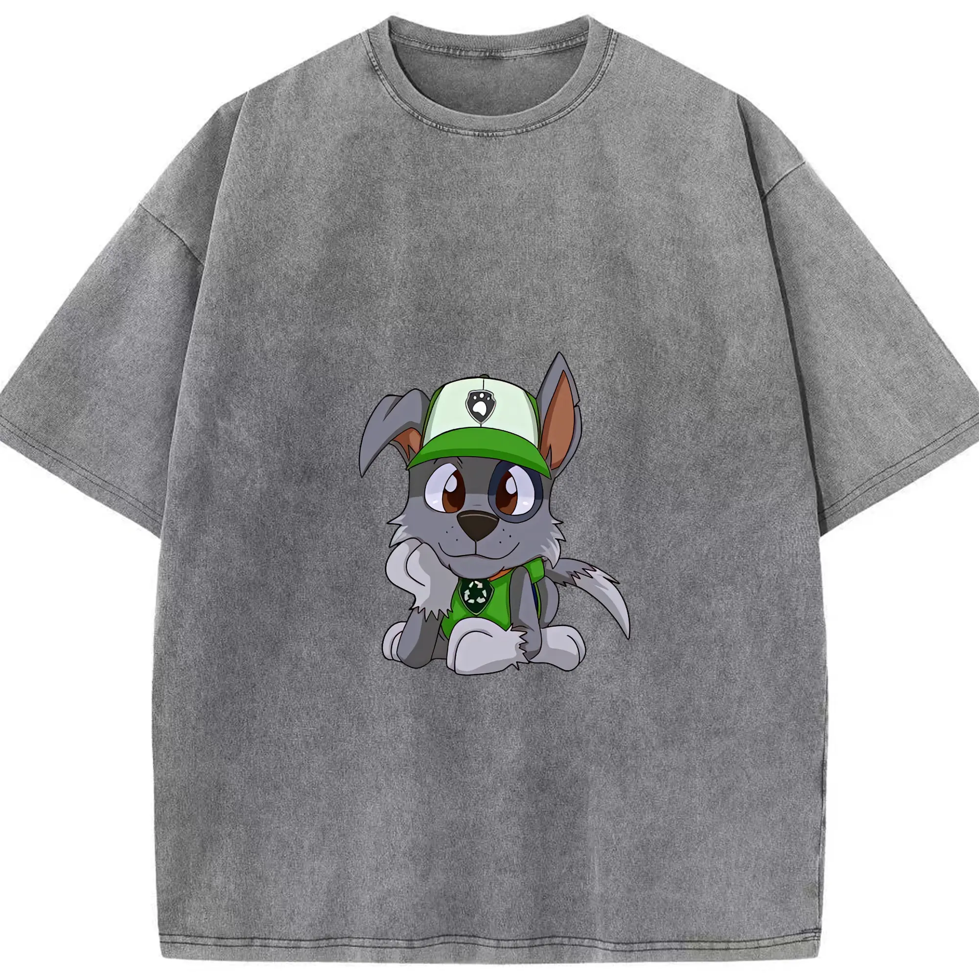 パウ・パトロール グッズ ロッキー - 綿100% ヴィンテージ風 半袖Tシャツ ・ 背面プリント ・ 柔らか肌触り ・ 通気性 快適 ・ スポーツ カジュアル 外出用