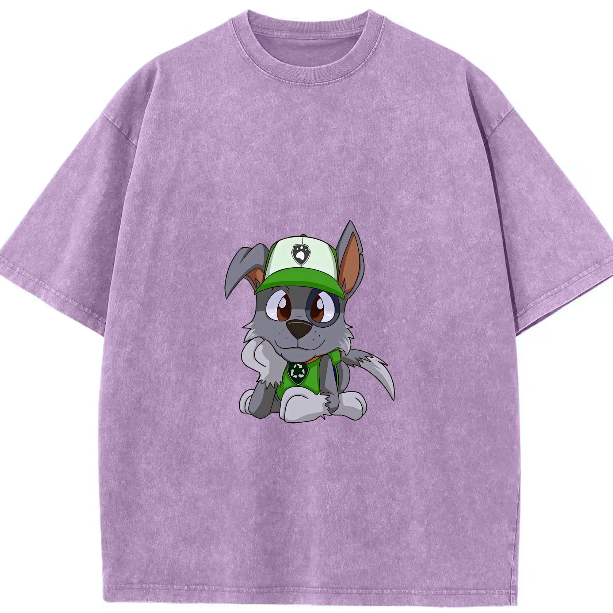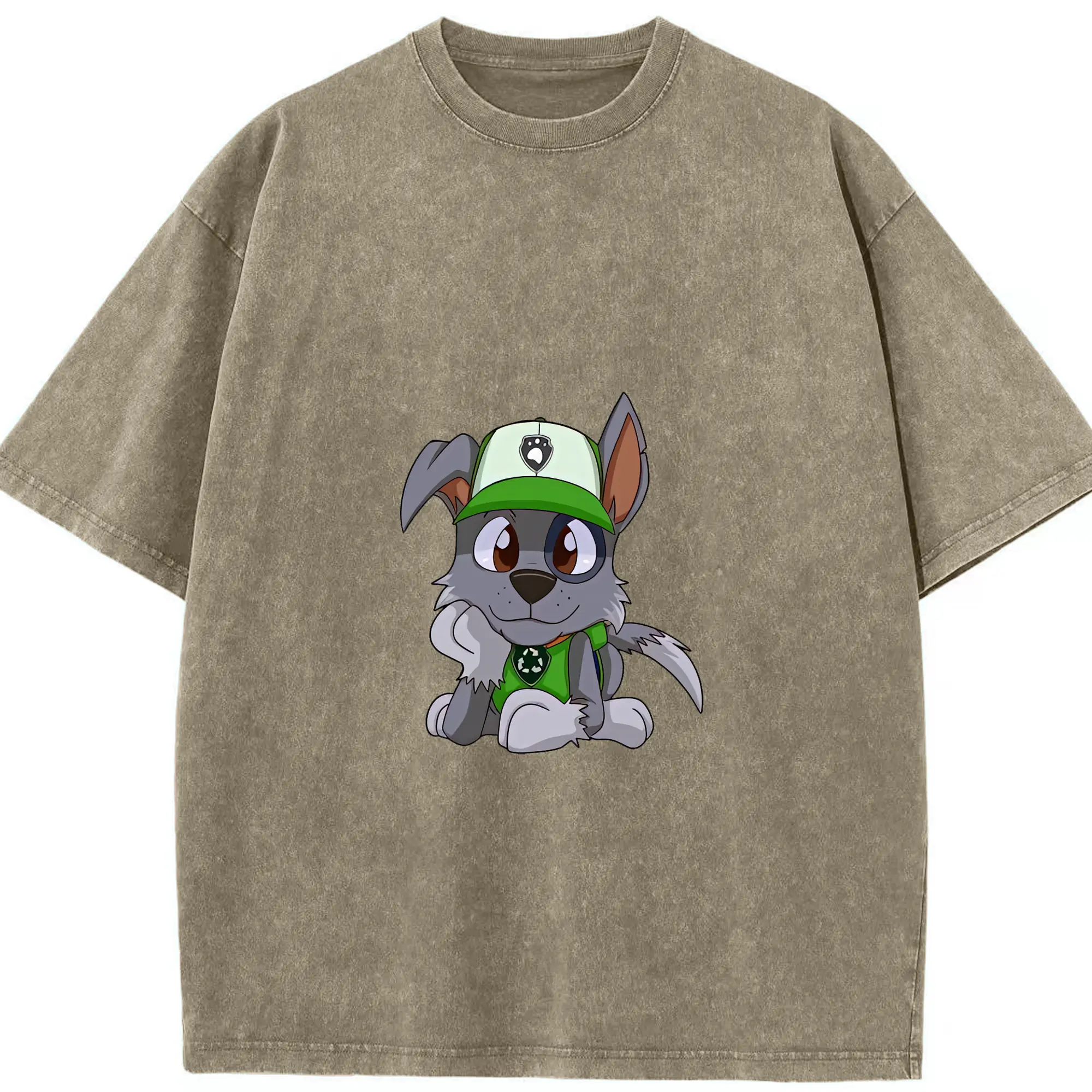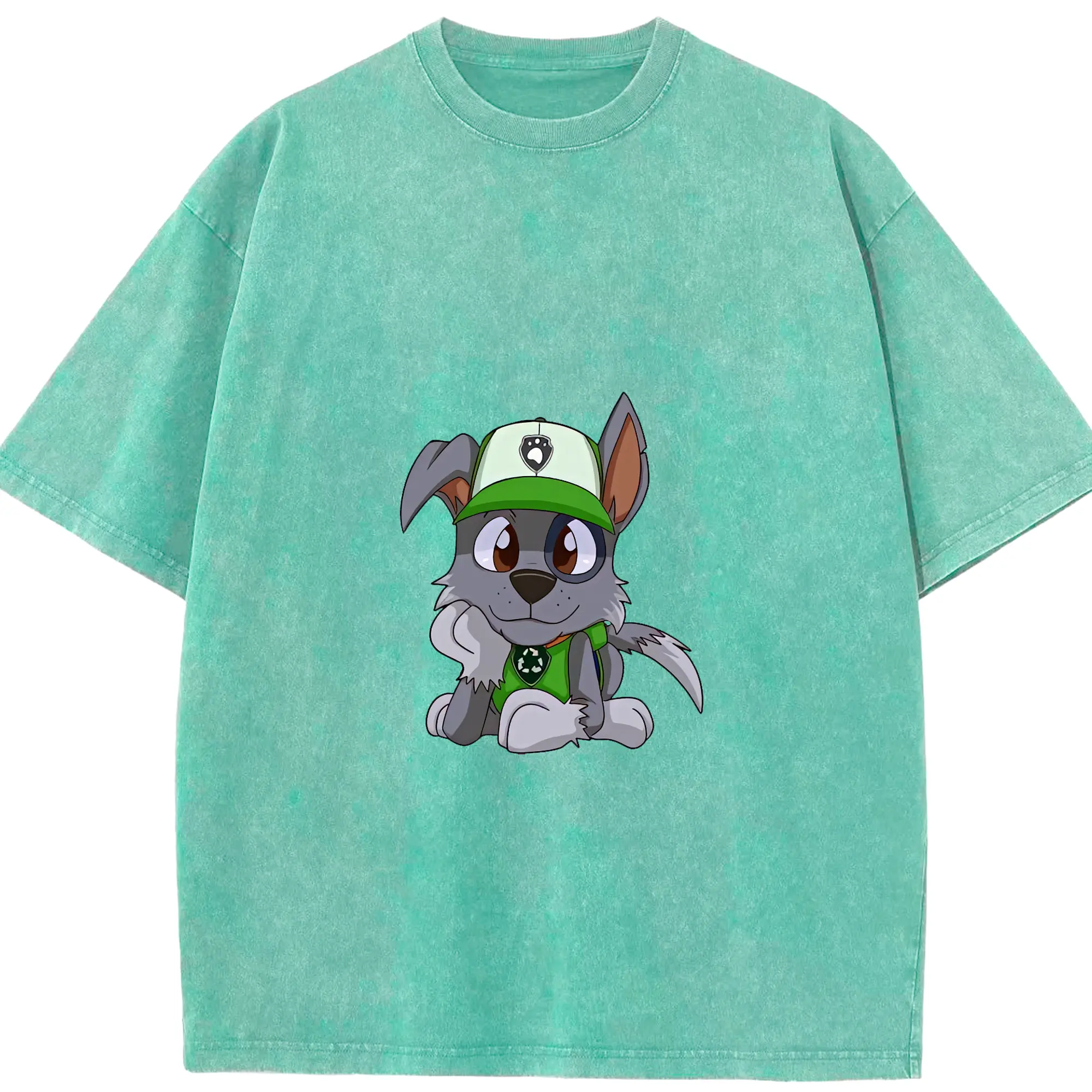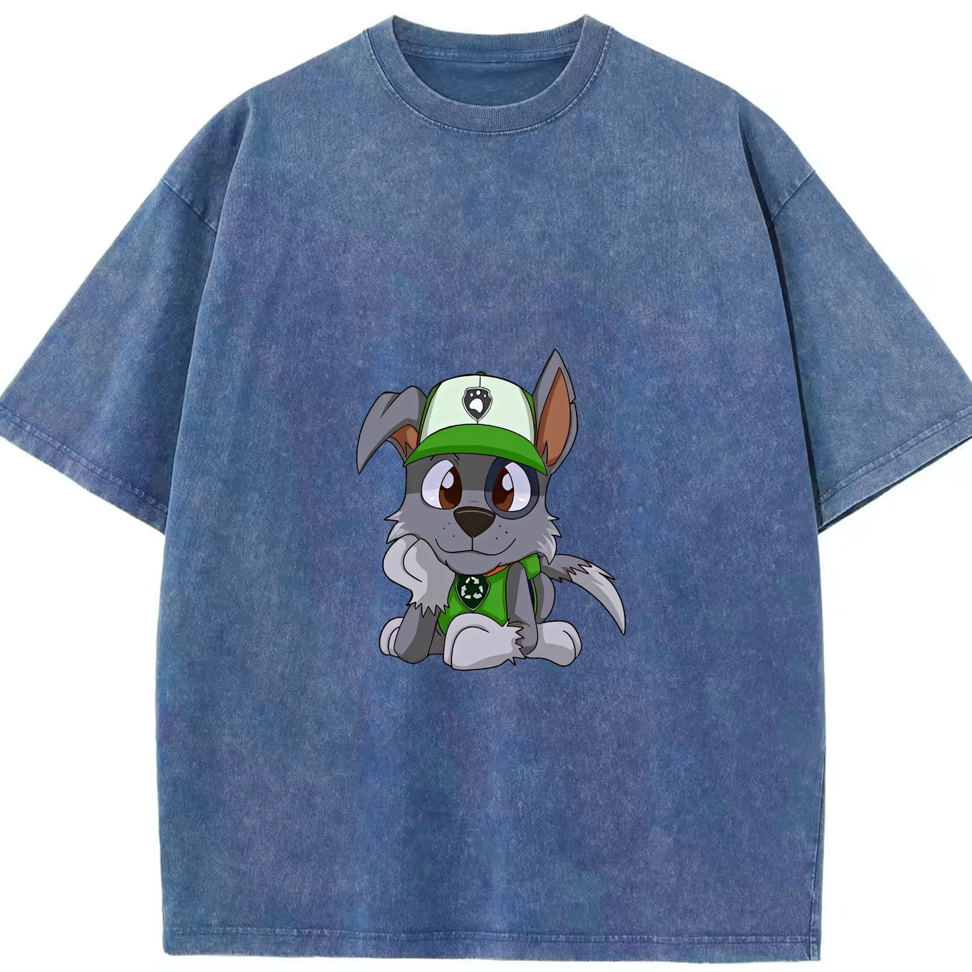 パウ・パトロール グッズ ロッキー - 綿100% ヴィンテージ風 半袖Tシャツ ・ 背面プリント ・ 柔らか肌触り ・ 通気性 快適 ・ スポーツ カジュアル 外出用