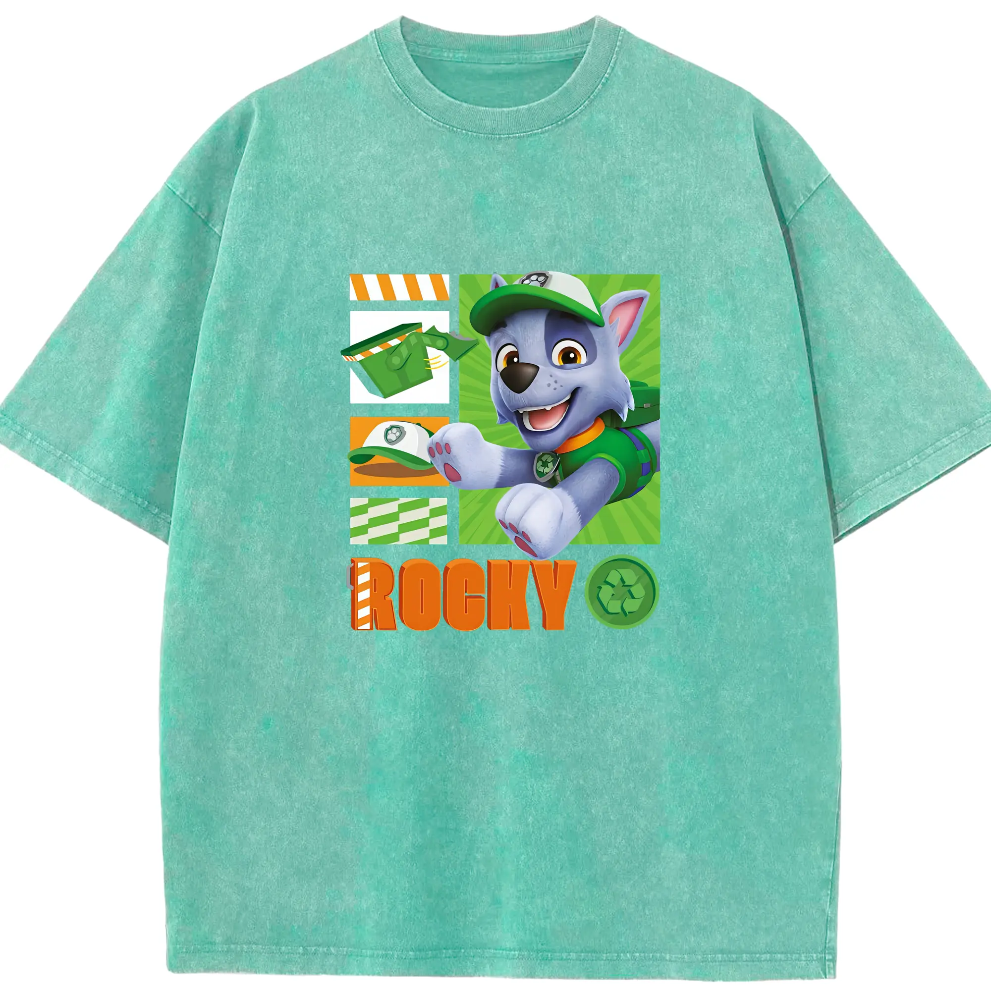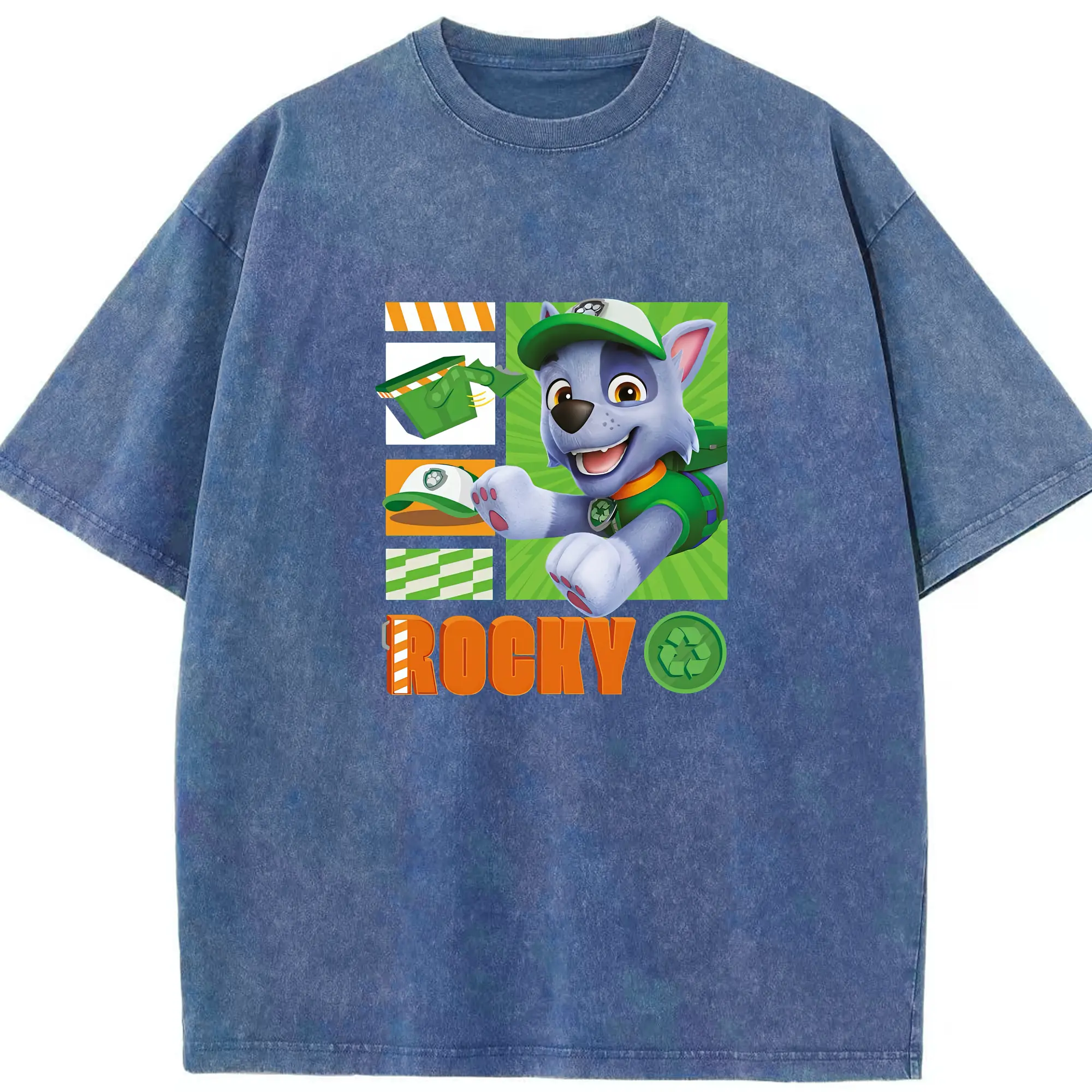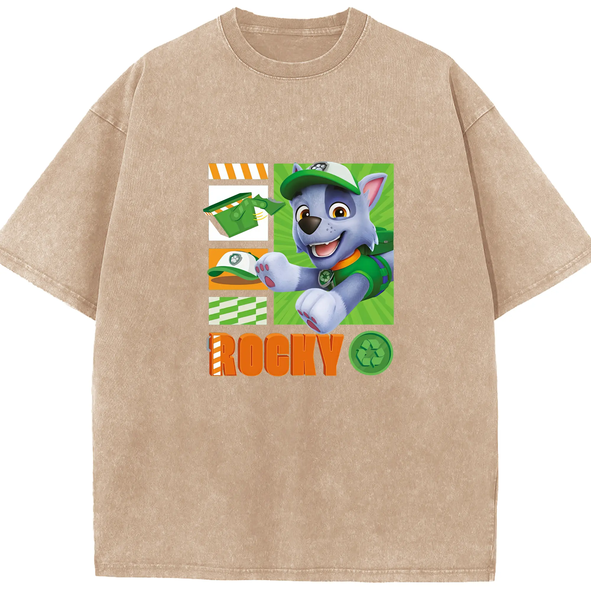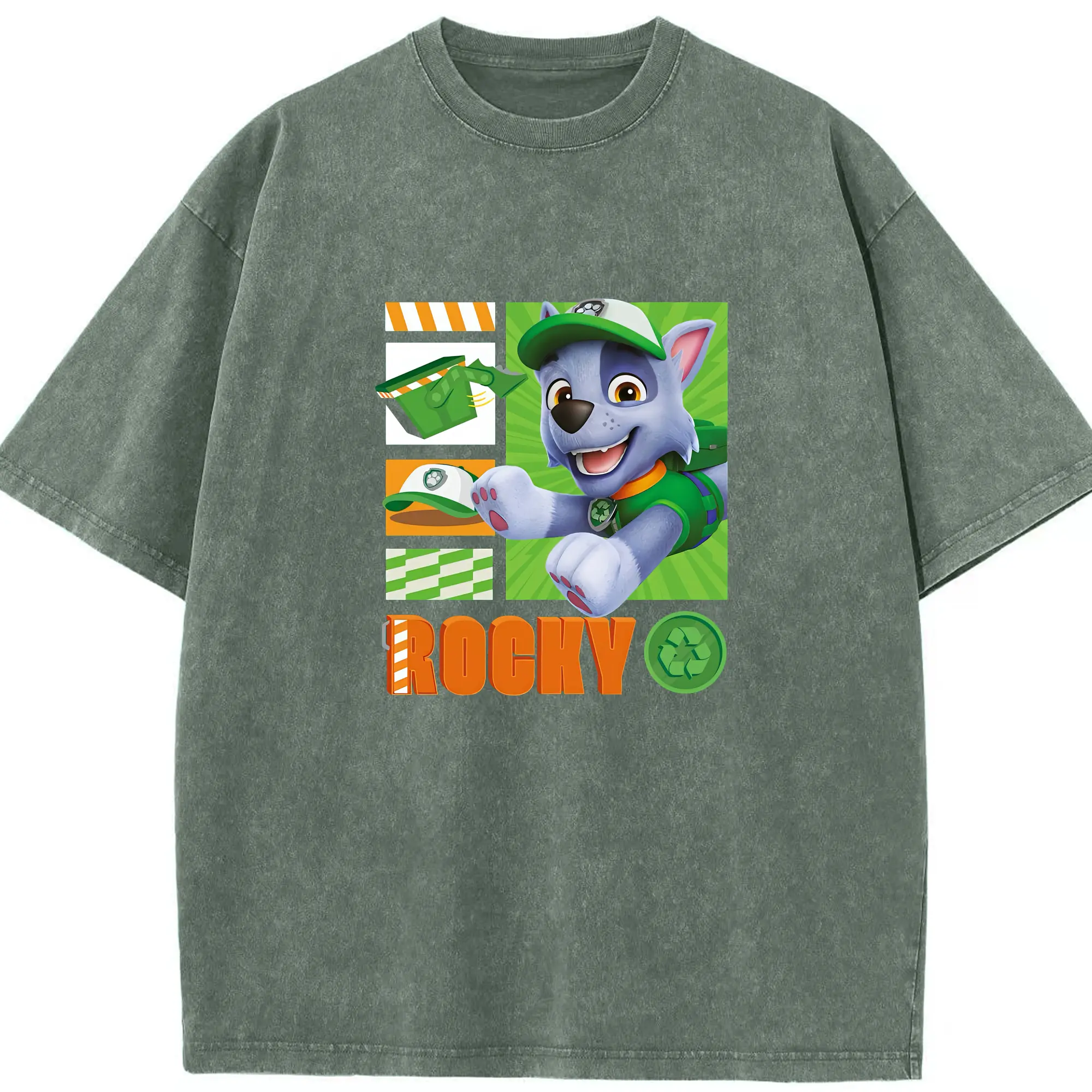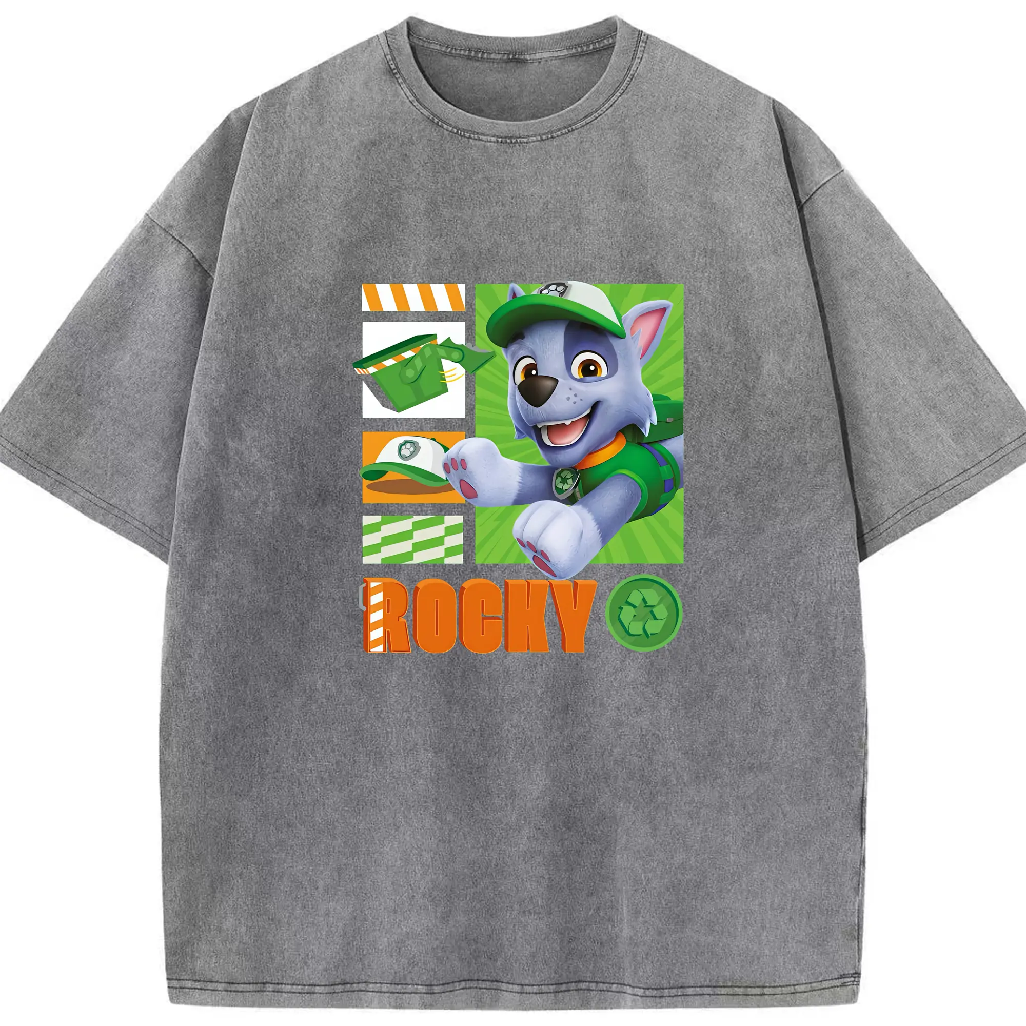パウ・パトロール グッズ ロッキー - 綿100% ヴィンテージ風 半袖Tシャツ ・ 背面プリント ・ 柔らか肌触り ・ 通気性 快適 ・ スポーツ カジュアル 外出用