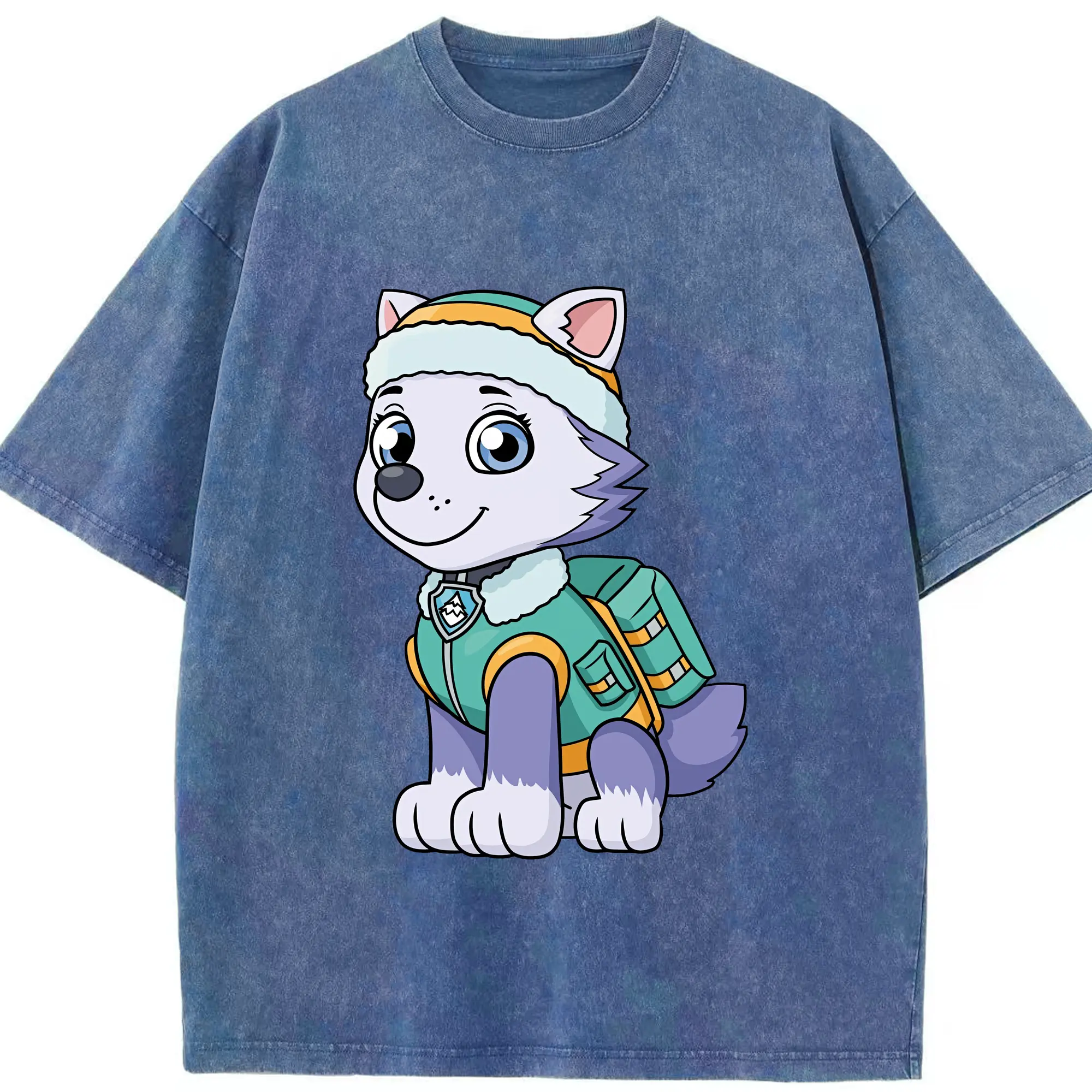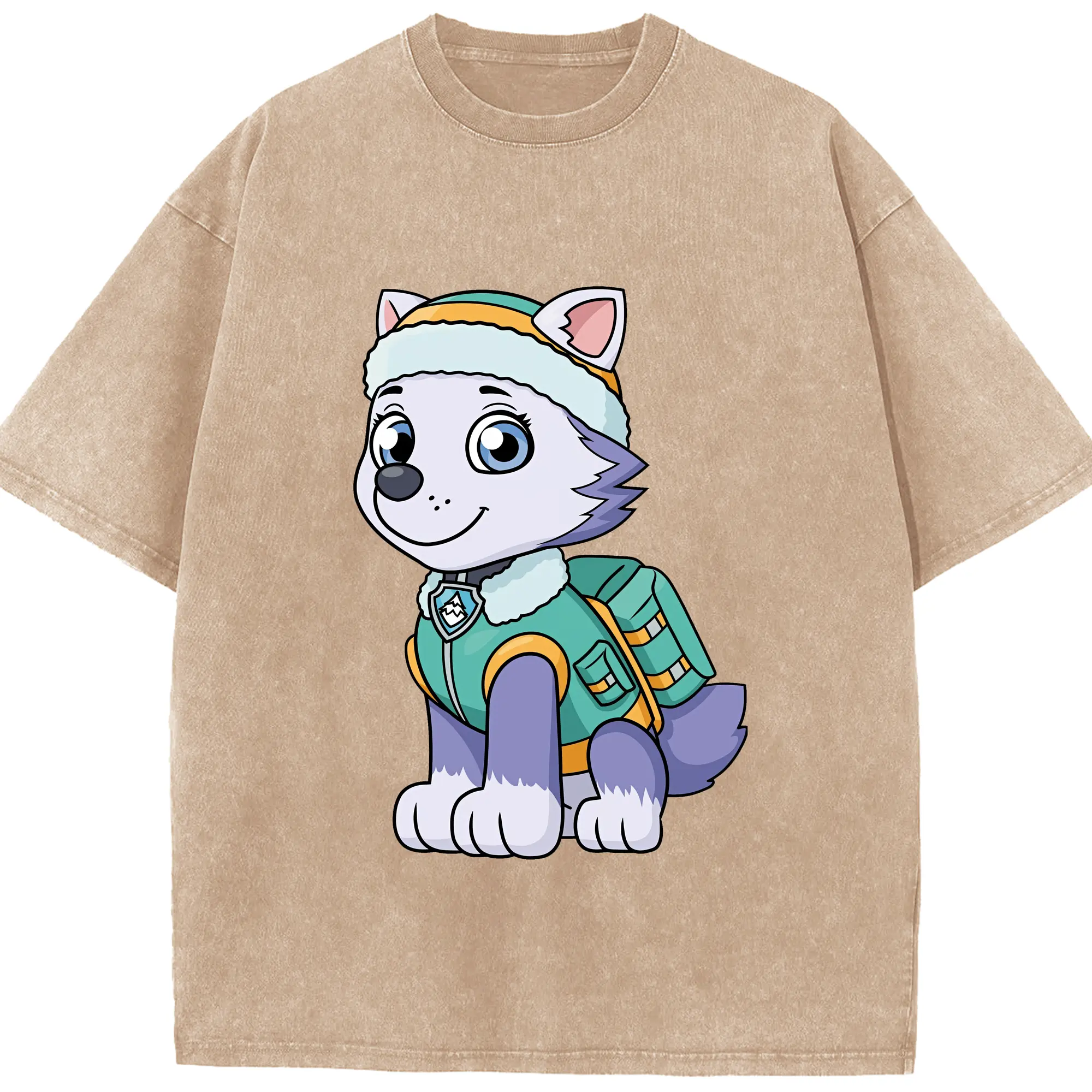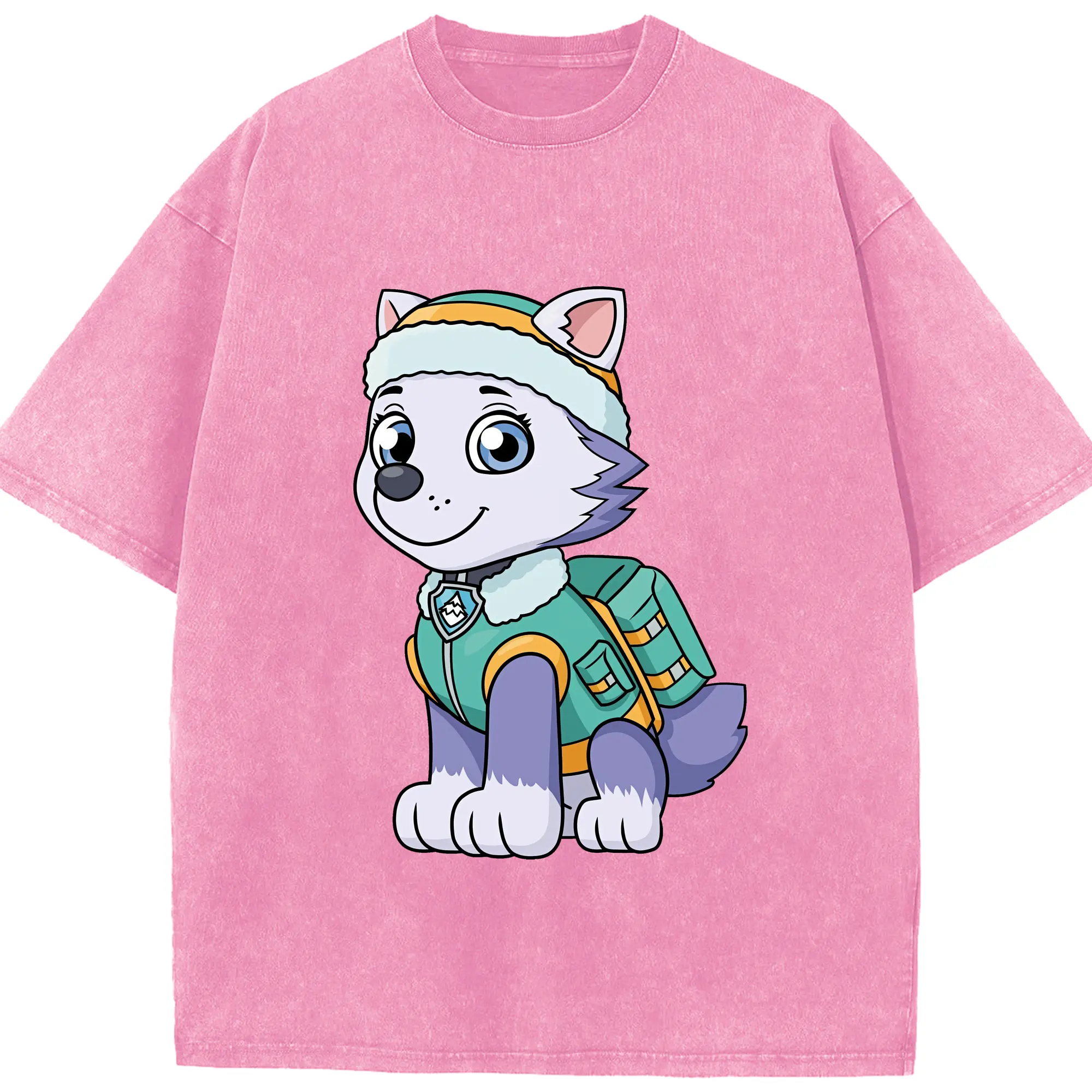 パウ・パトロール グッズ エベレスト - 綿100% ヴィンテージ風 半袖Tシャツ ・ 背面プリント ・ 柔らか肌触り ・ 通気性 快適 ・ スポーツ カジュアル 外出用