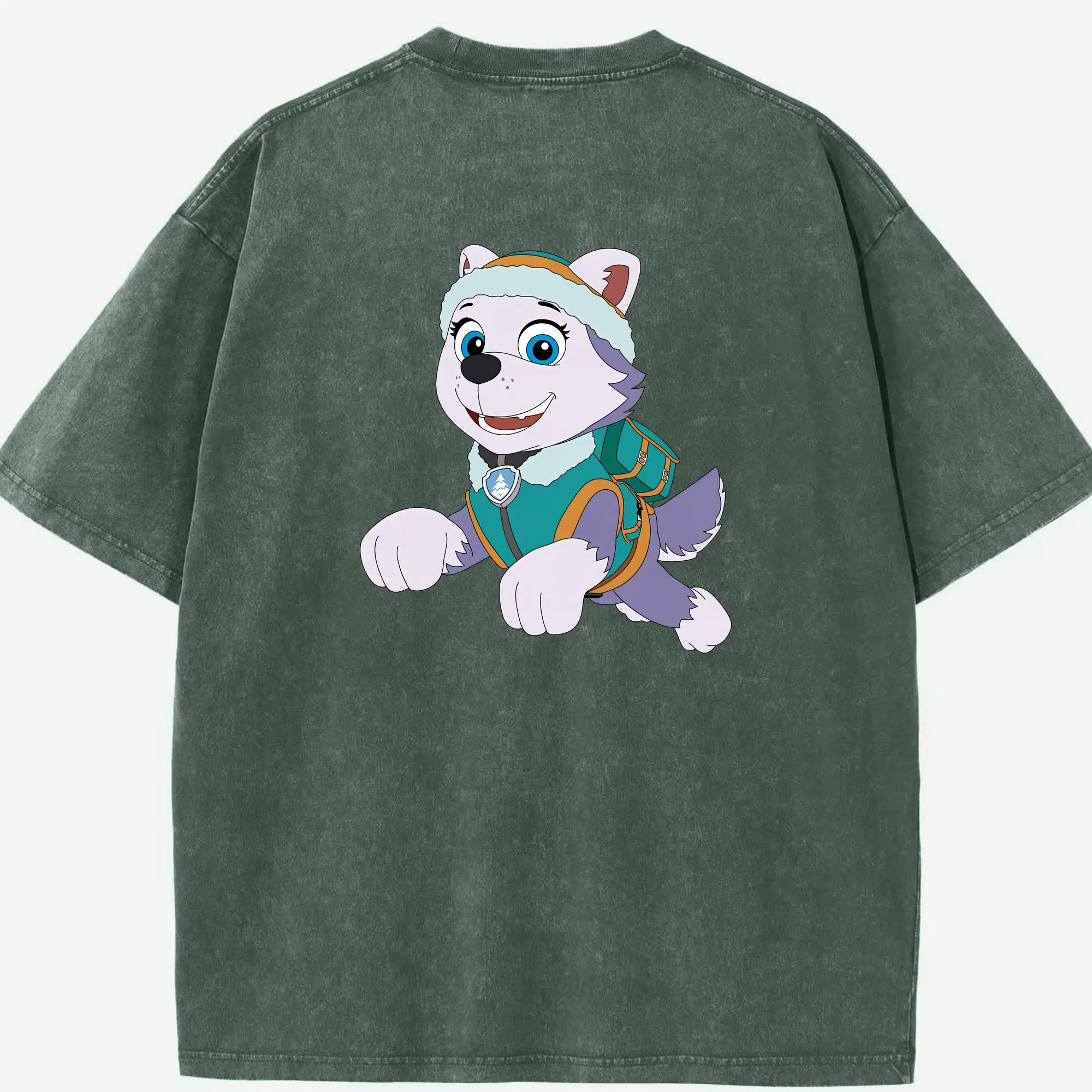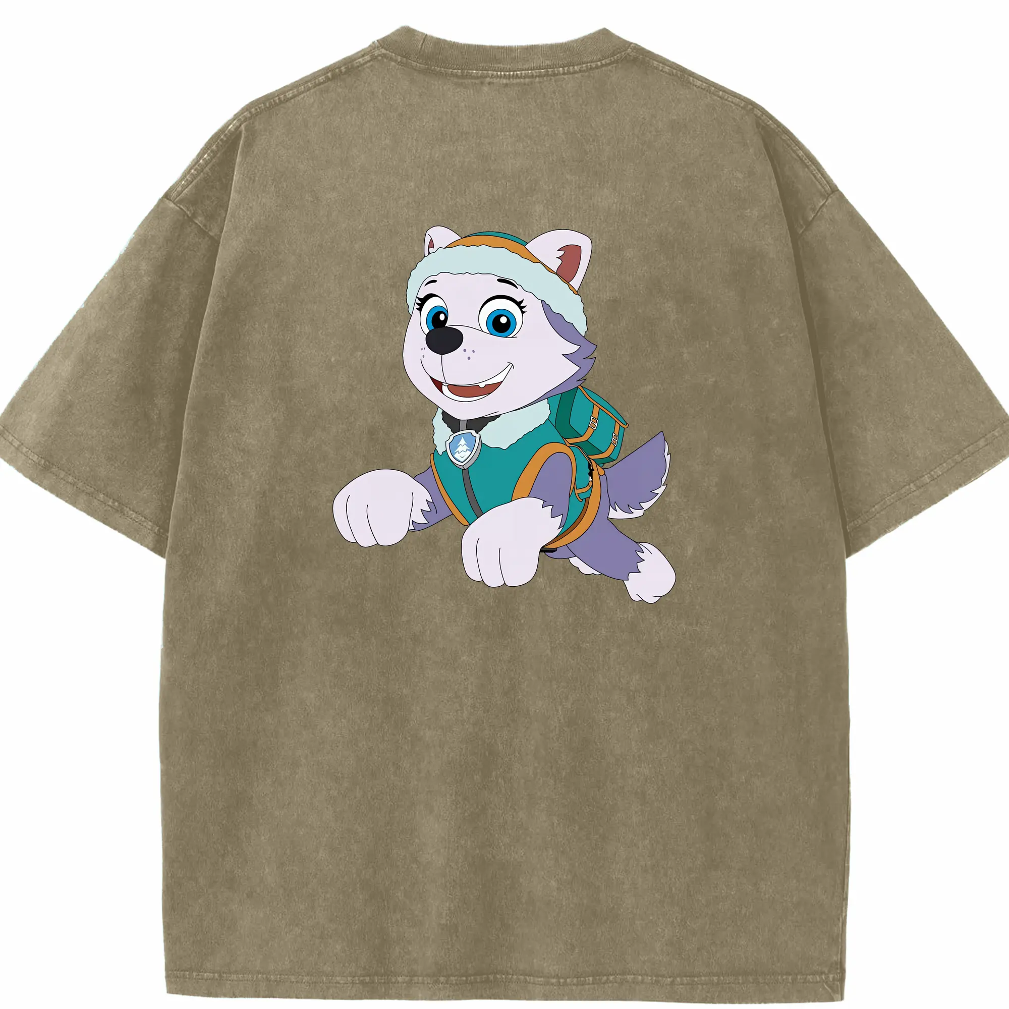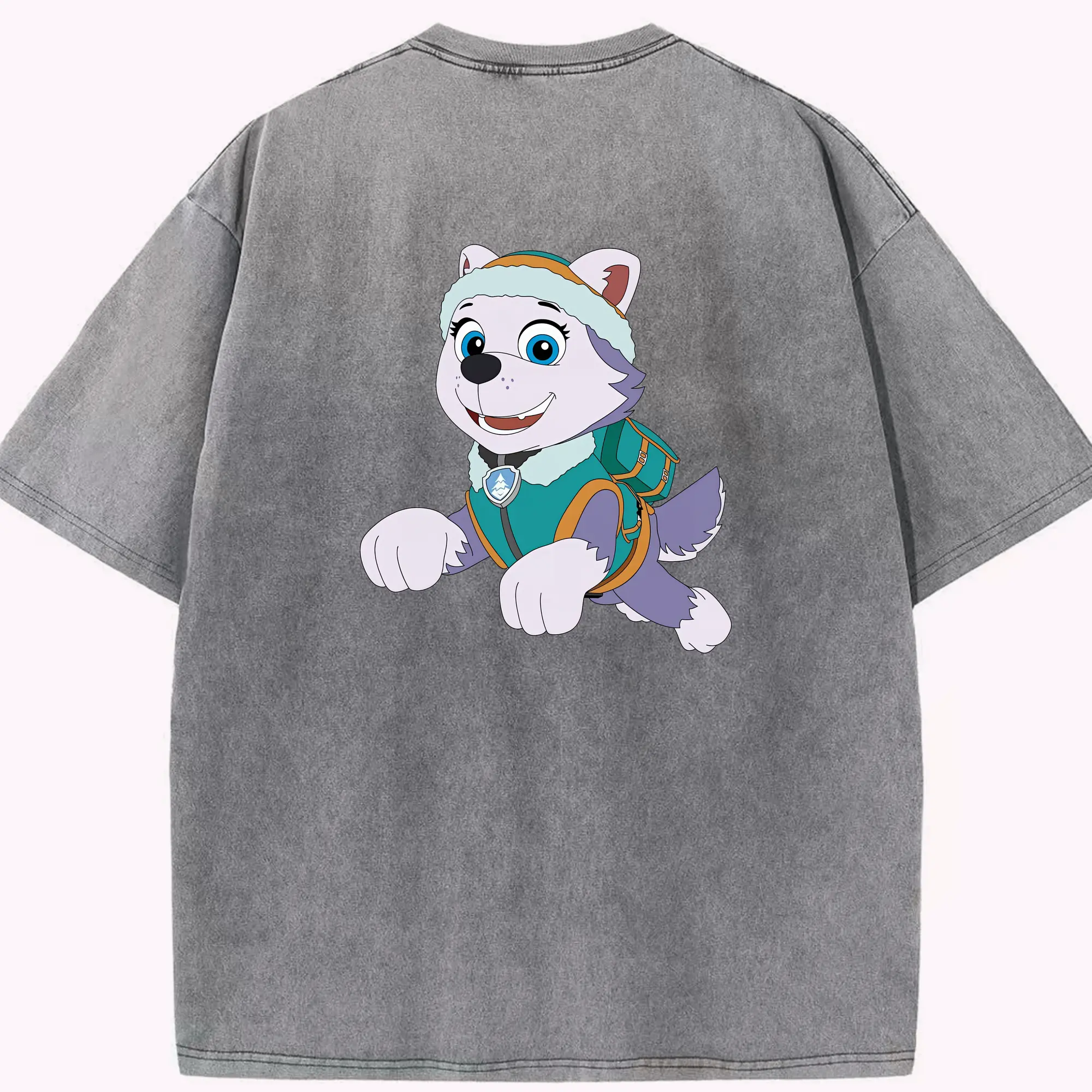 パウ・パトロール グッズ エベレスト - 綿100% ヴィンテージ風 半袖Tシャツ ・ フロントプリント ・ 柔らか肌触り ・ 通気性 快適 ・ スポーツ カジュアル 外出用