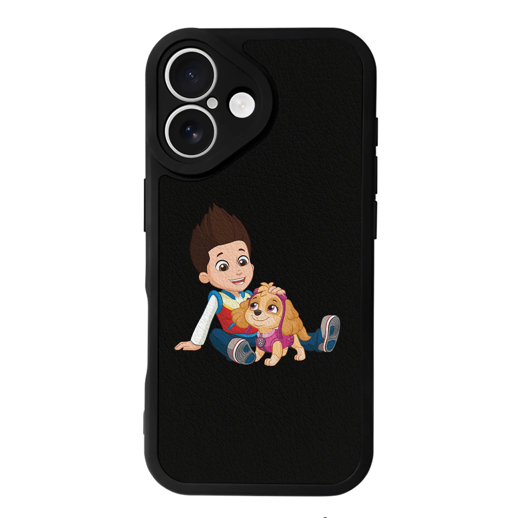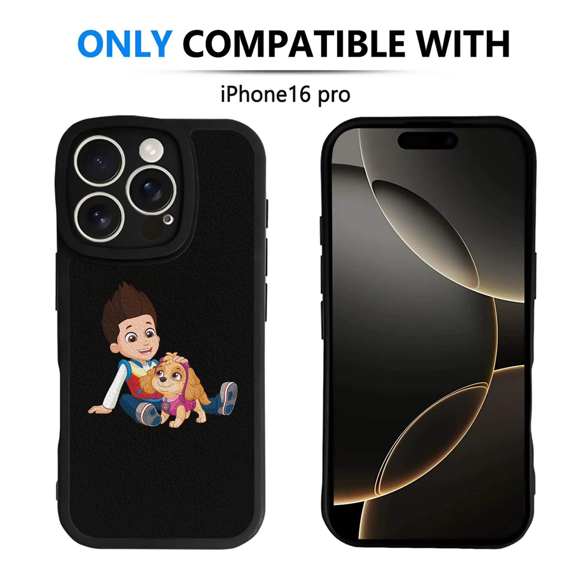 パウ・パトロール グッズ ライダー - IPhone 16シリーズ対応 ・ シリコンスマホケース ・ レザー調 ・ 高精度フィット ・ 耐衝撃 ・ ワイヤレス充電対応 ・ 精密カット