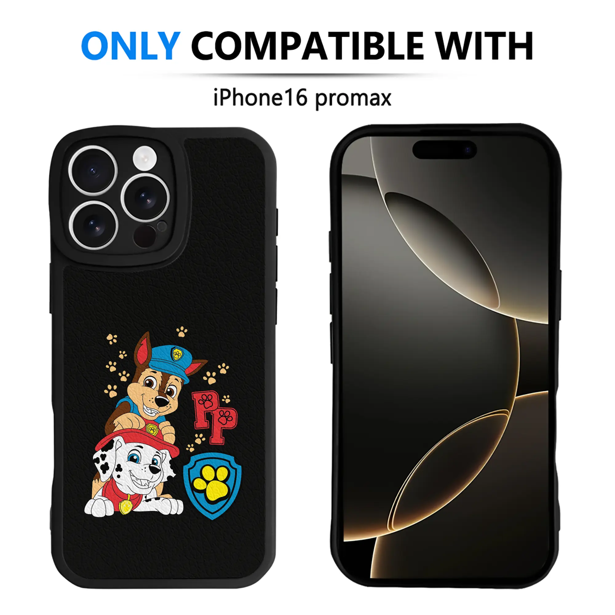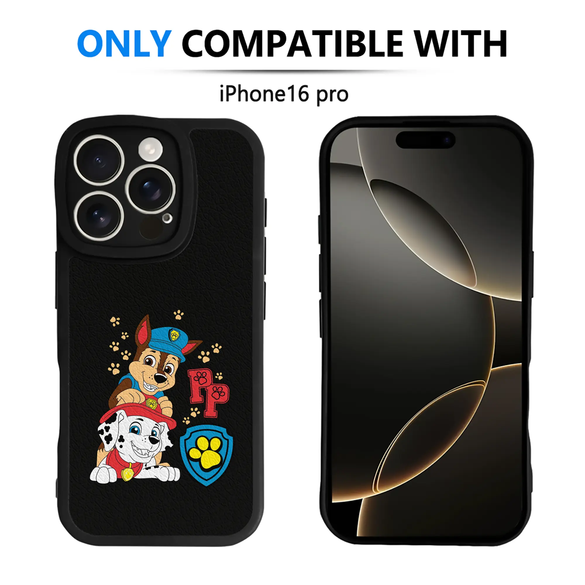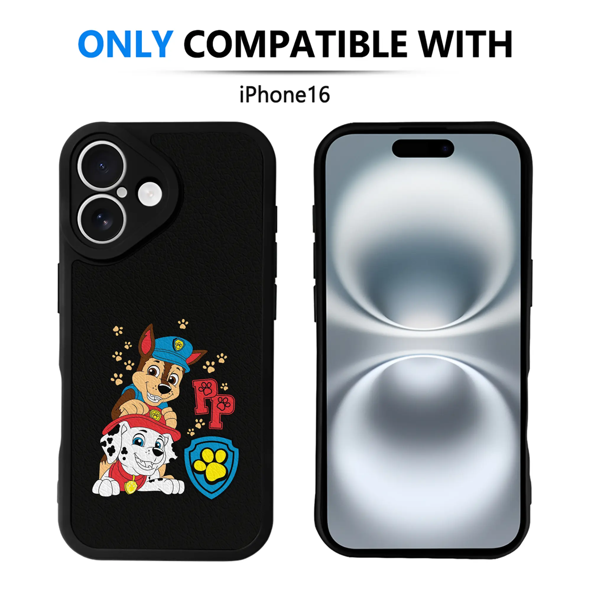 パウ・パトロール グッズ チェイス - IPhone 16シリーズ対応 ・ シリコンスマホケース ・ レザー調 ・ 高精度フィット ・ 耐衝撃 ・ ワイヤレス充電対応 ・ 精密カット