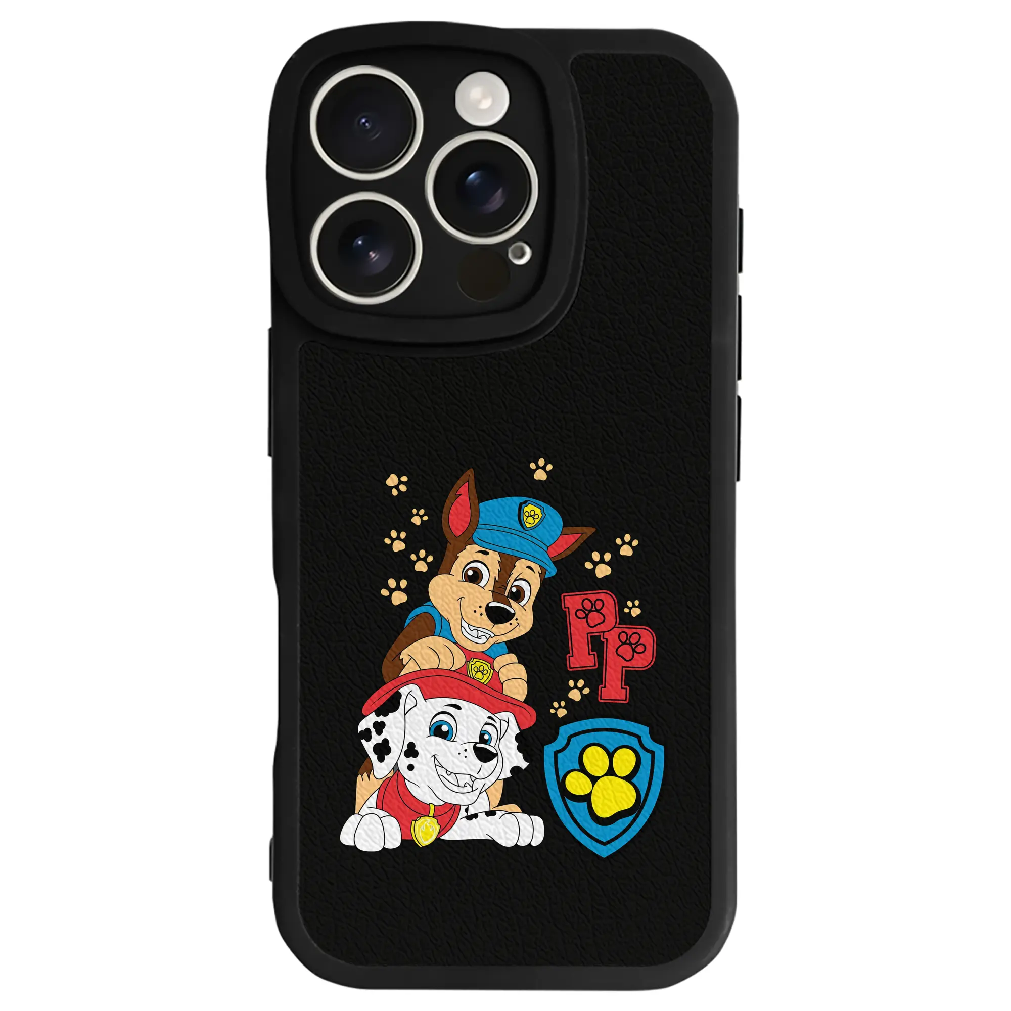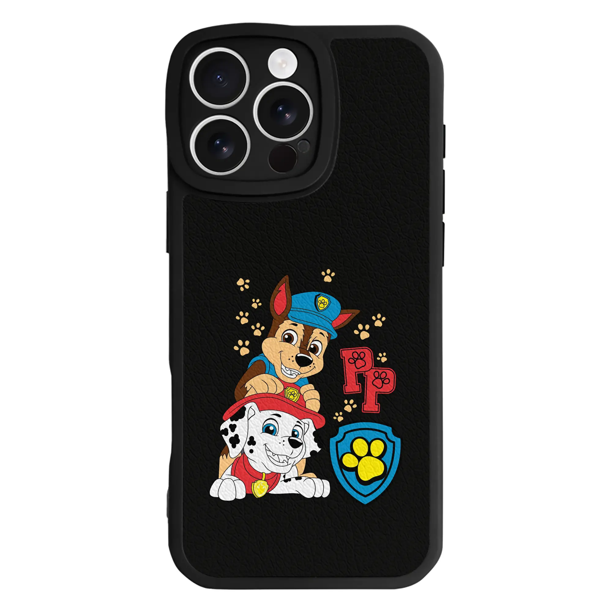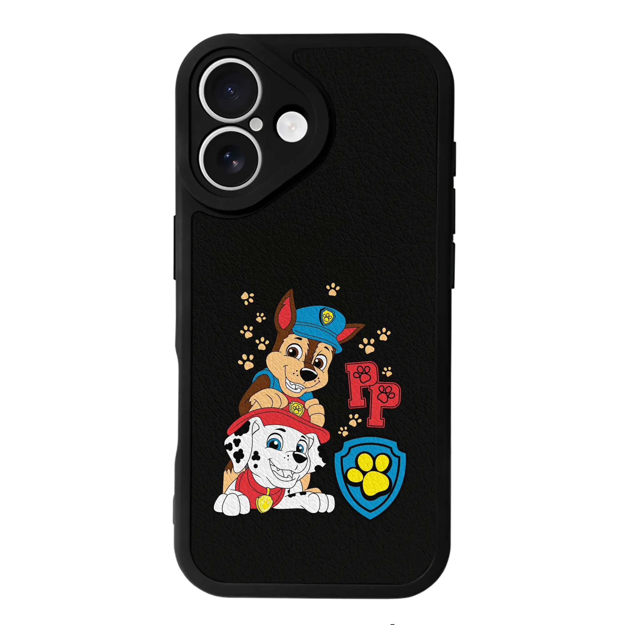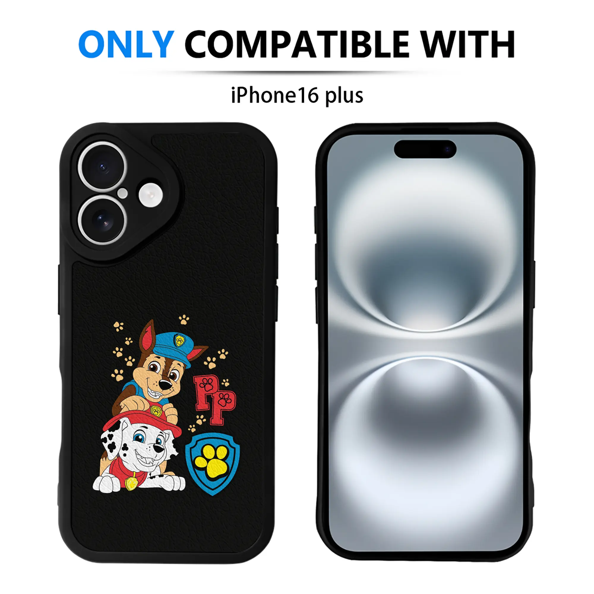 パウ・パトロール グッズ チェイス - IPhone 16シリーズ対応 ・ シリコンスマホケース ・ レザー調 ・ 高精度フィット ・ 耐衝撃 ・ ワイヤレス充電対応 ・ 精密カット