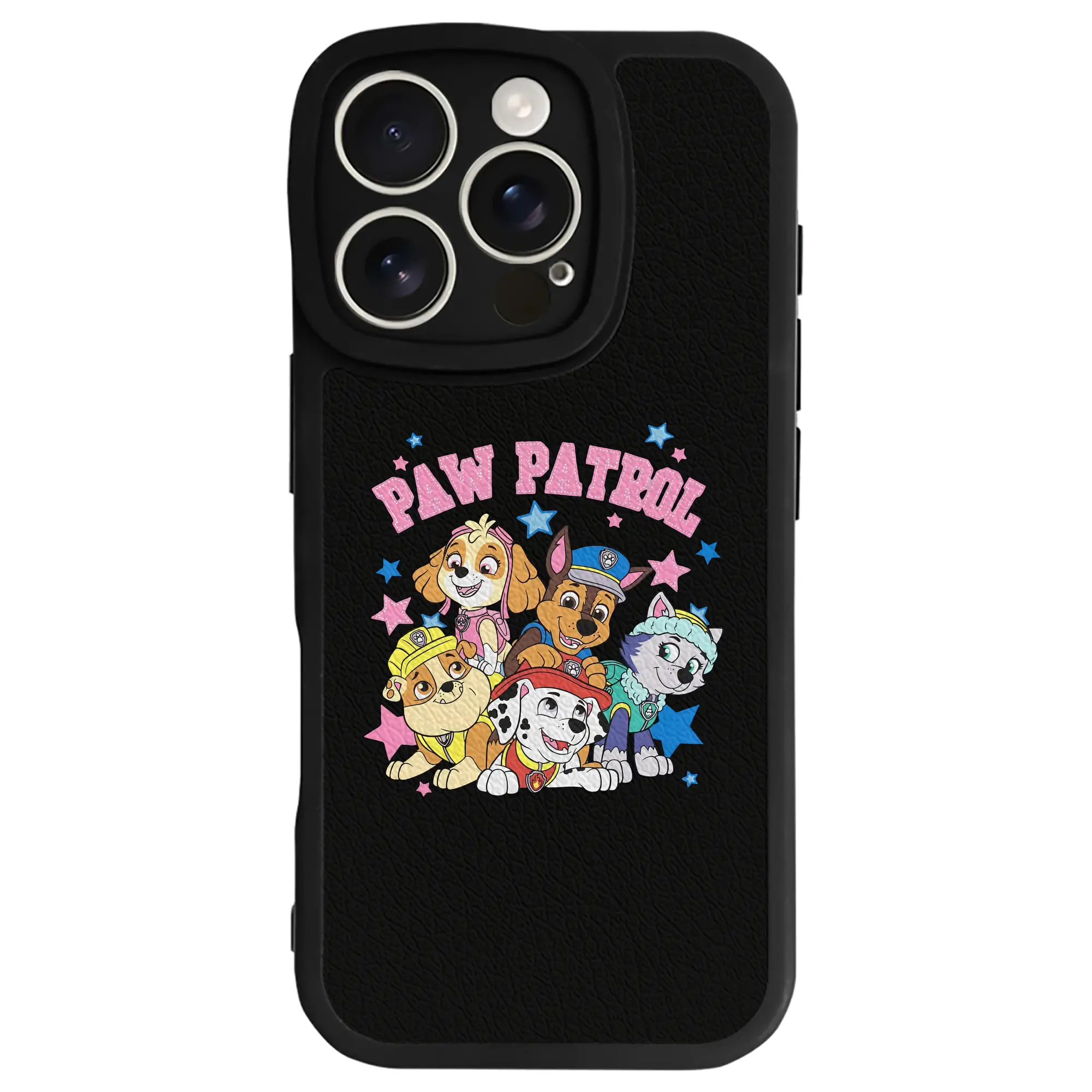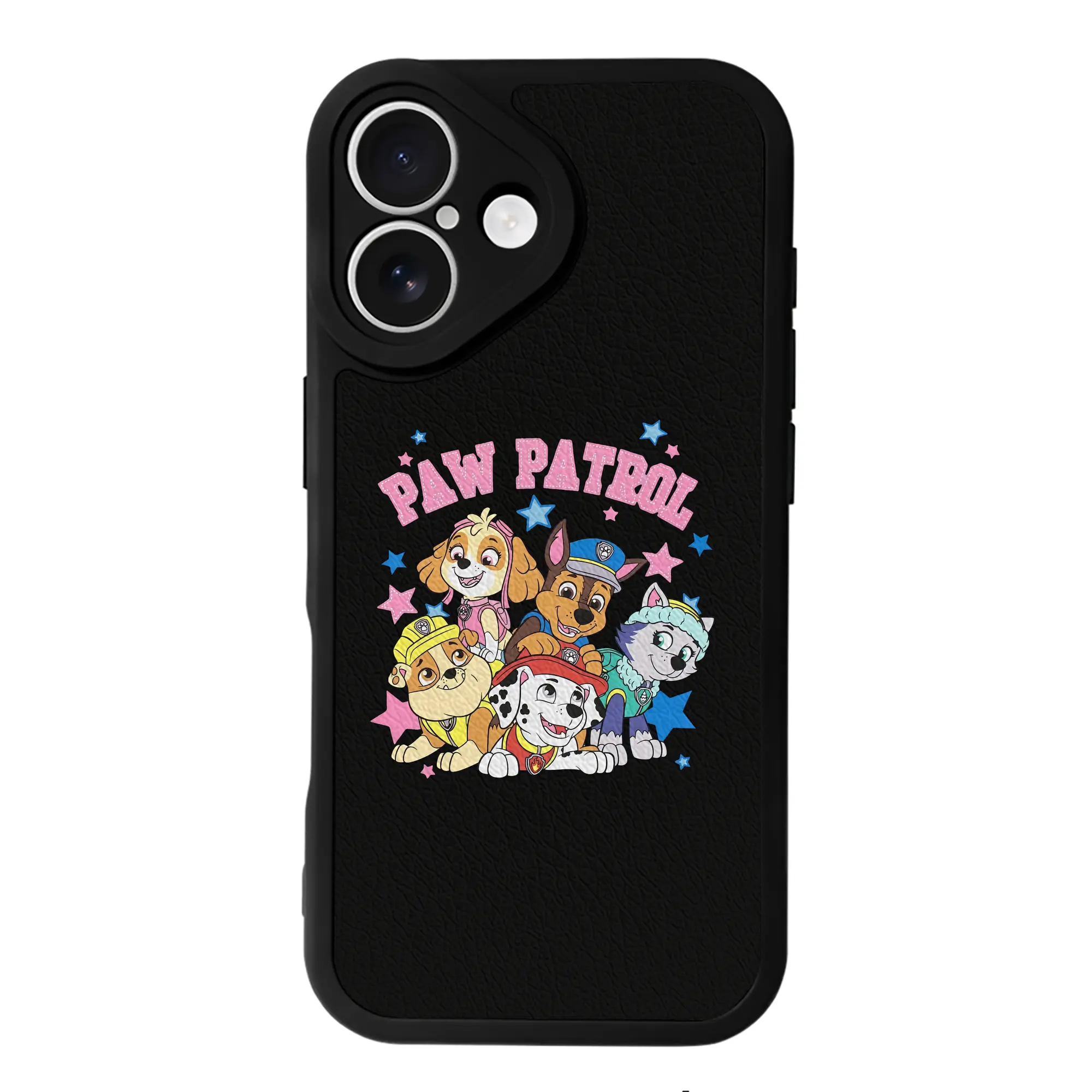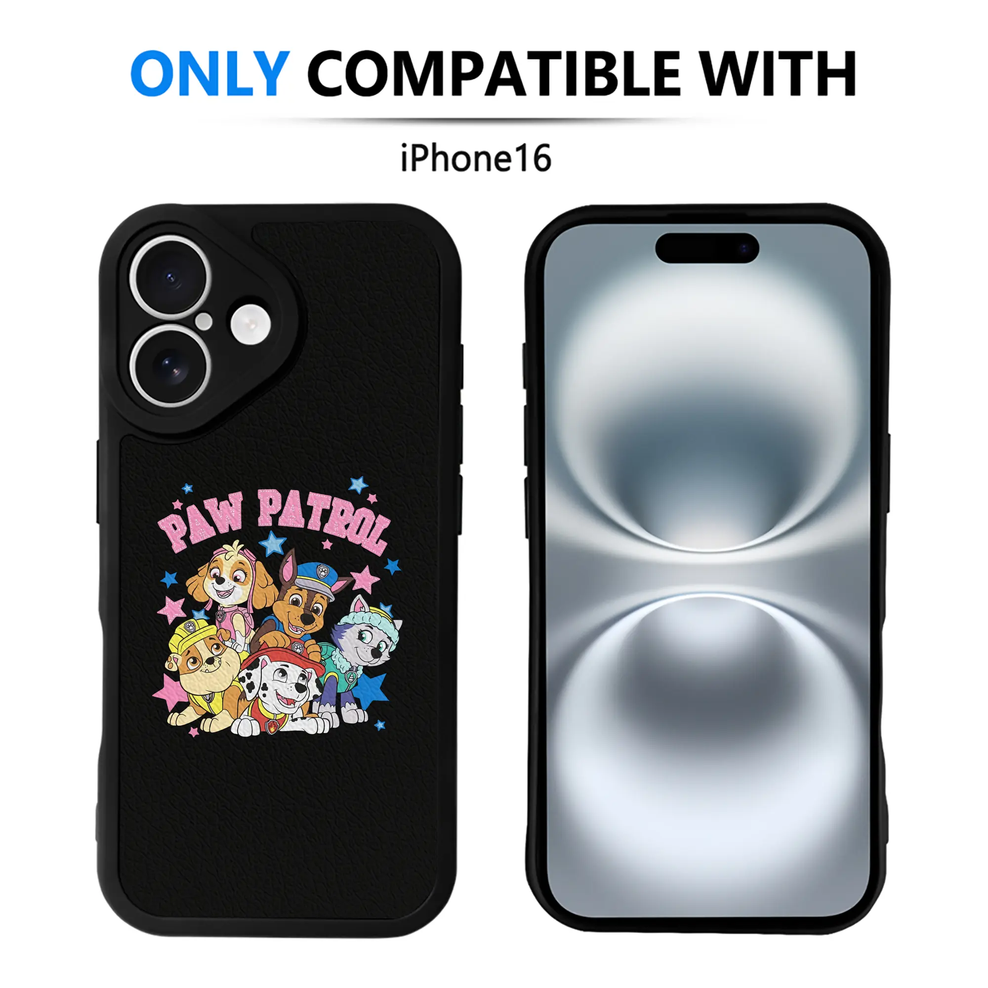 パウ・パトロール グッズ チェイス - IPhone 16シリーズ対応 ・ シリコンスマホケース ・ レザー調 ・ 高精度フィット ・ 耐衝撃 ・ ワイヤレス充電対応 ・ 精密カット