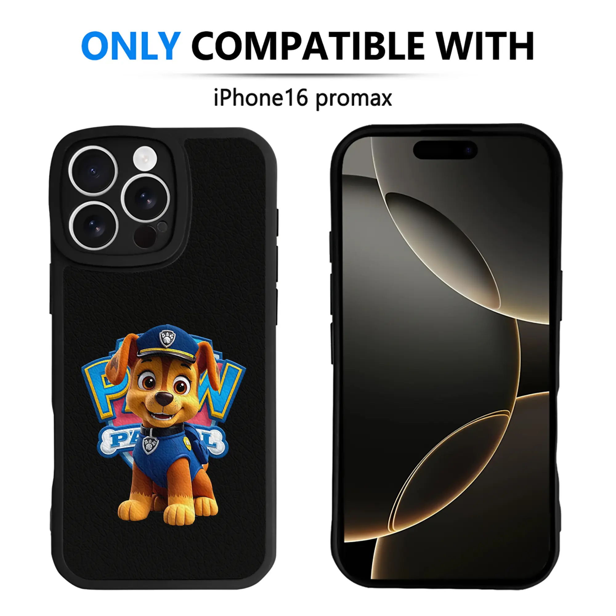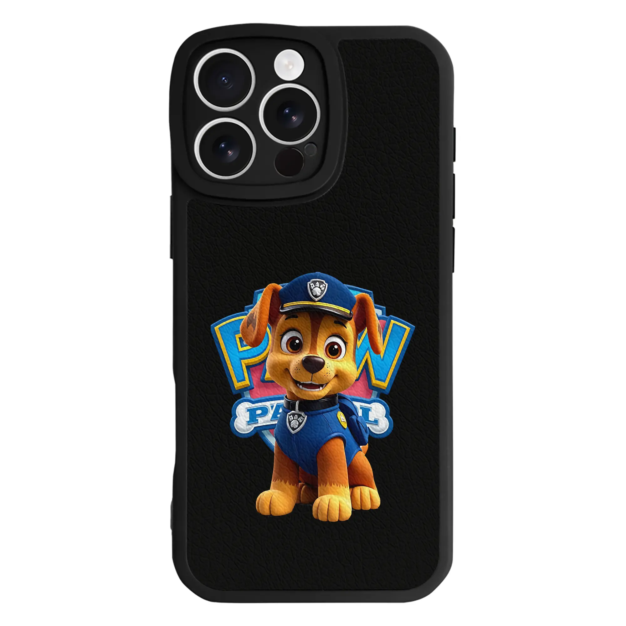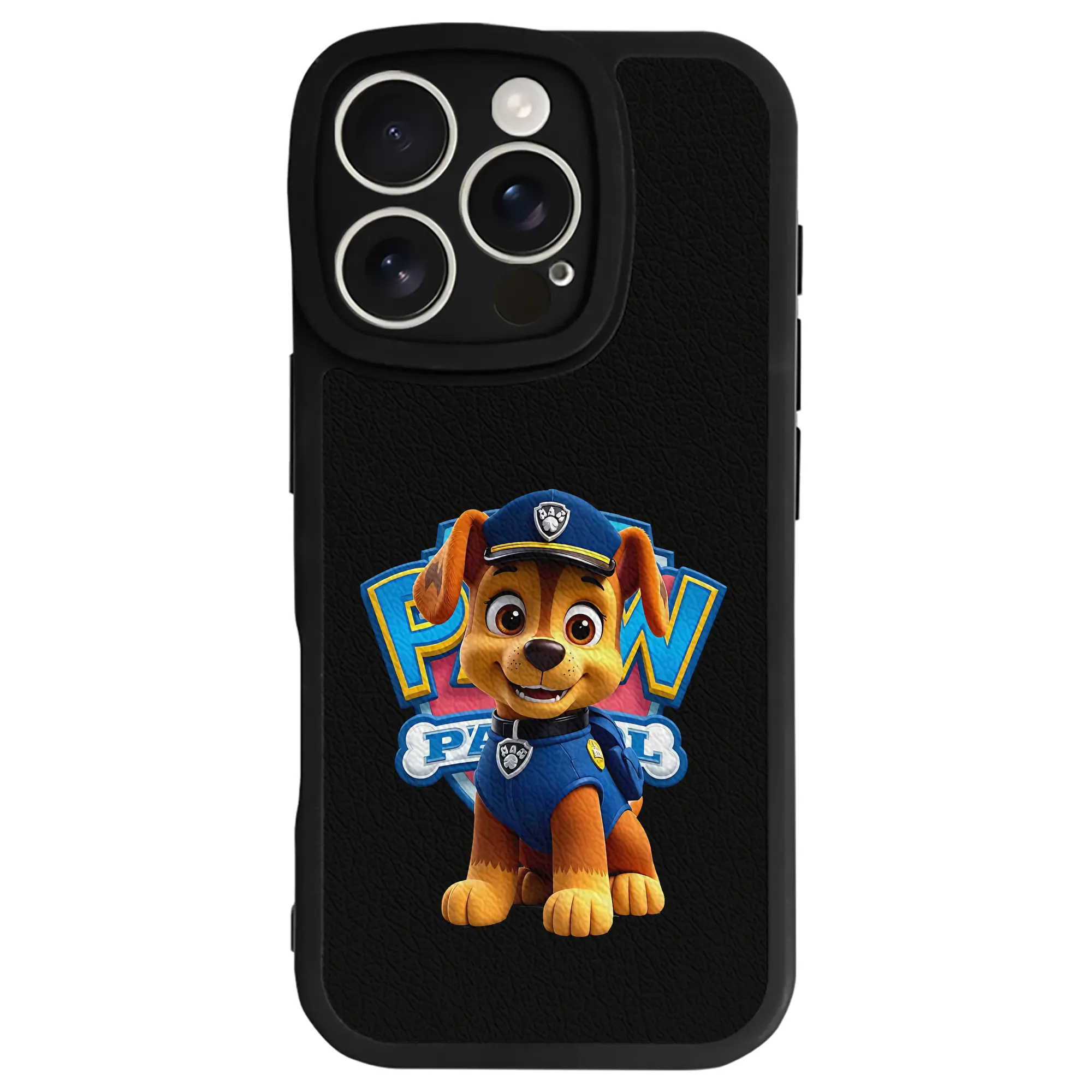 パウ・パトロール グッズ チェイス - IPhone 16シリーズ対応 ・ シリコンスマホケース ・ レザー調 ・ 高精度フィット ・ 耐衝撃 ・ ワイヤレス充電対応 ・ 精密カット